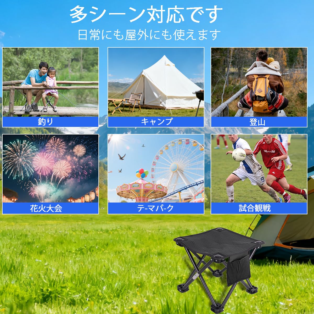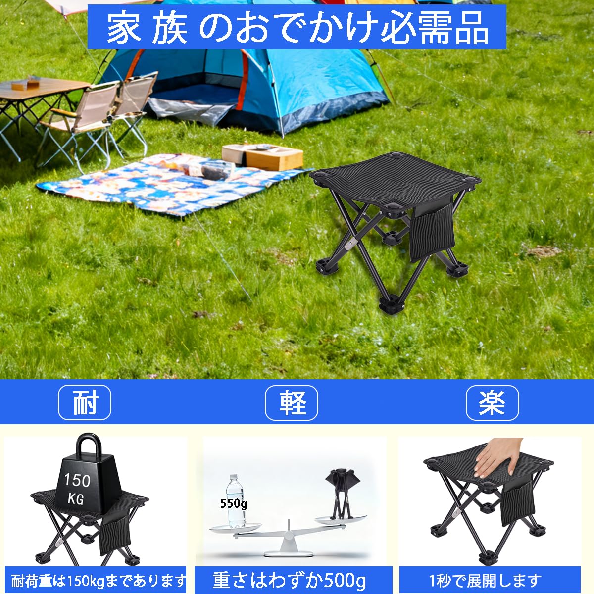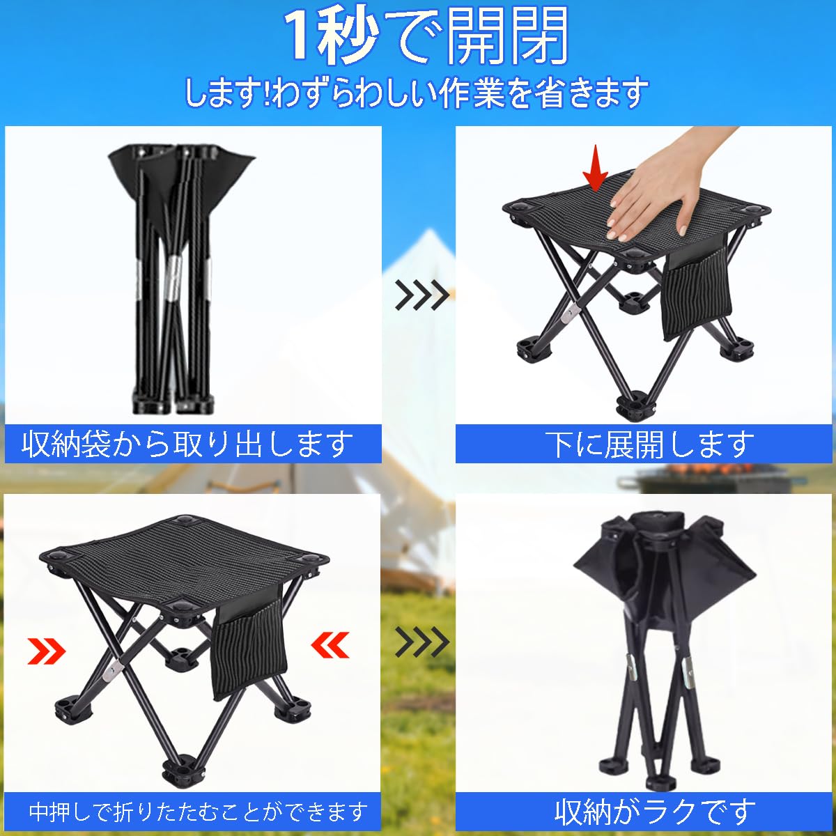 折り畳み椅子 軽量 折りたたみ椅子 ポータブルな伸縮式折りたたみスツール、耐荷重200KG 一秒開閉のアウトドア釣り、ハイキング、ガーデニング、旅行、バーベキューに便利な折りたたみ式キャンプ用スツール屋内/屋外用 (ブラック)