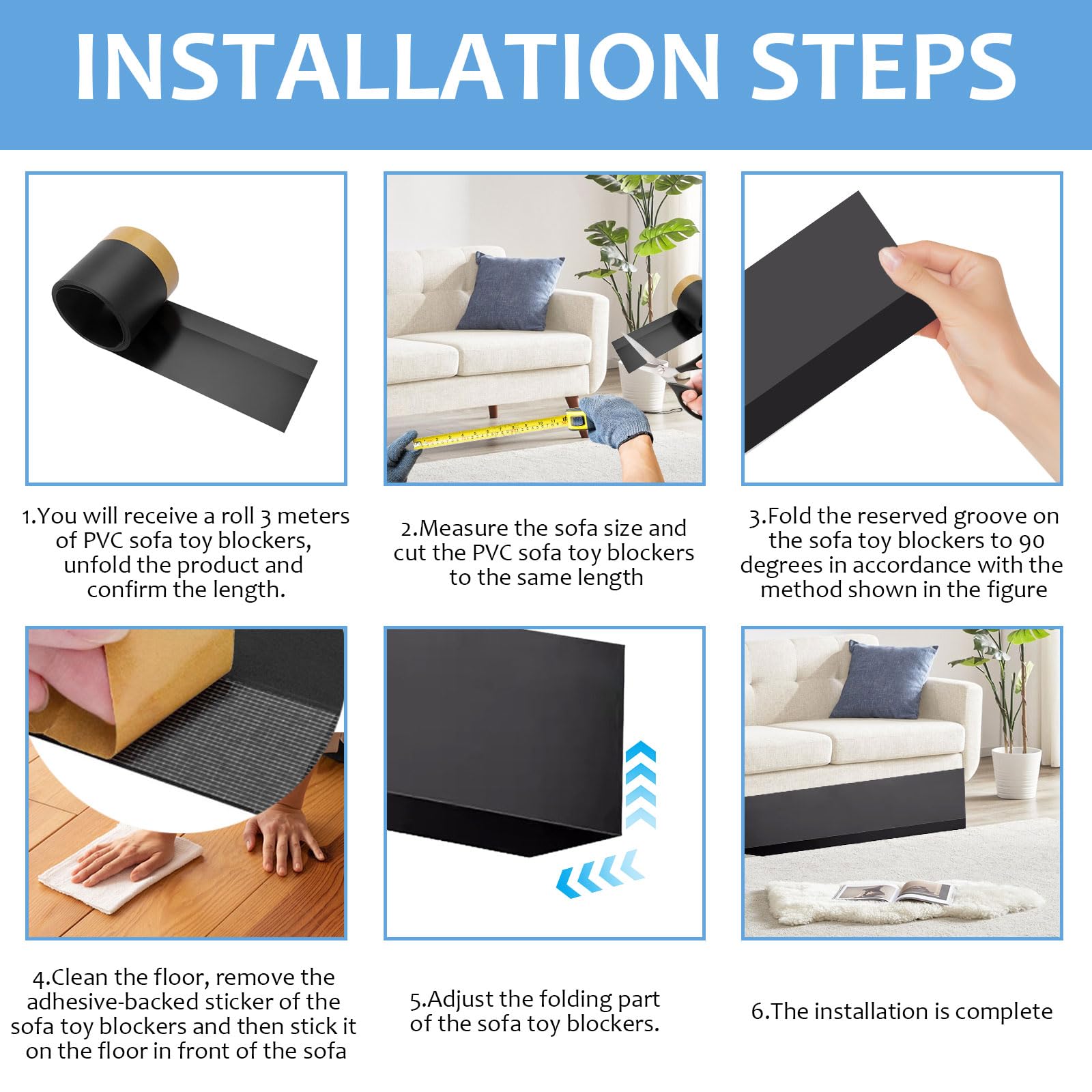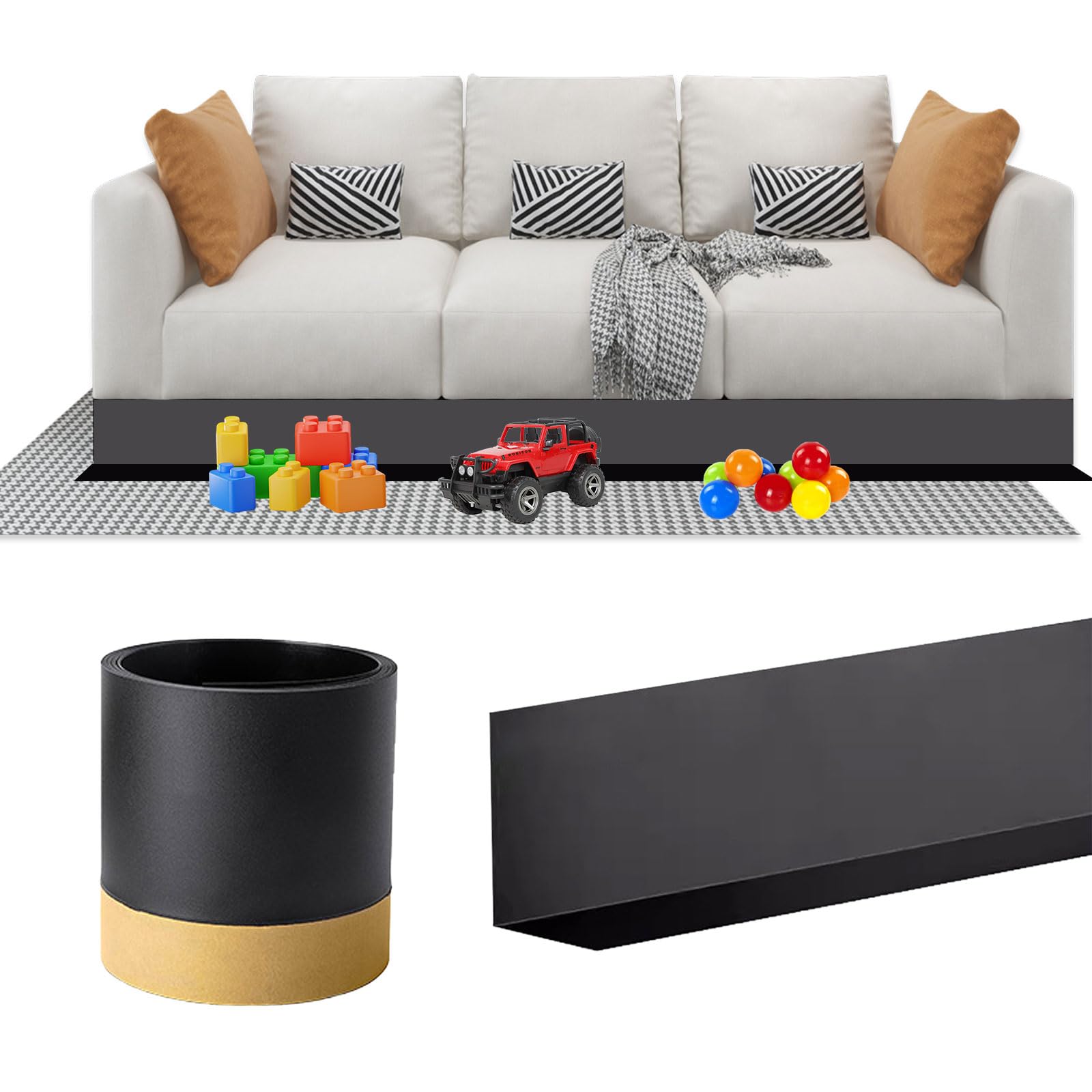 ソファー下ブロッカー PVC 隙間ガード 幅8cmx長さ3m ベット下ブロッカー ソファ下ガード 透明 隙間テープ ベッド下 おもちゃブロッカー ペット 侵入防止 犬 猫 ブロック ガード 家具下 ブロック 侵入防止 ストッパー 取り付け簡単 (ブラック)