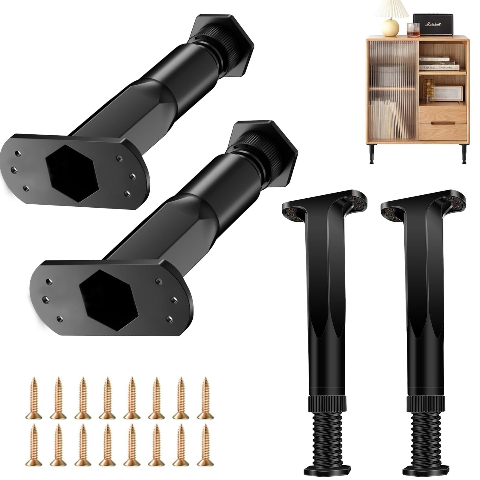 LOYELEY 伸縮式 レベリングフット 4個セット 家具アジャスター 金属製 高耐久 高さ 調節可能 レベリング足 家具移動パッド 水平調整パット Diy 置き換え足 ベッド/テーブル/ソファー 用 (ブラック, 18-30CM)