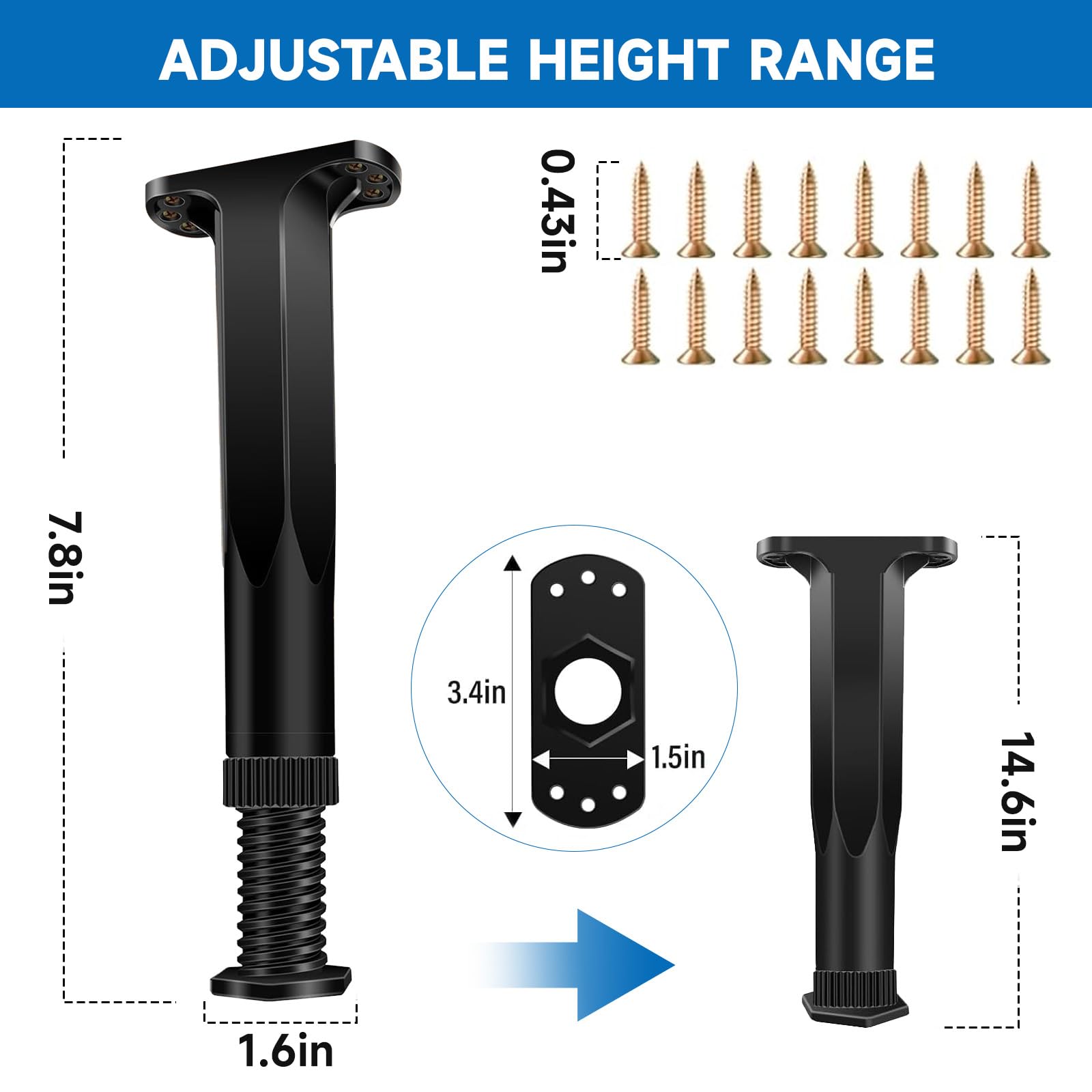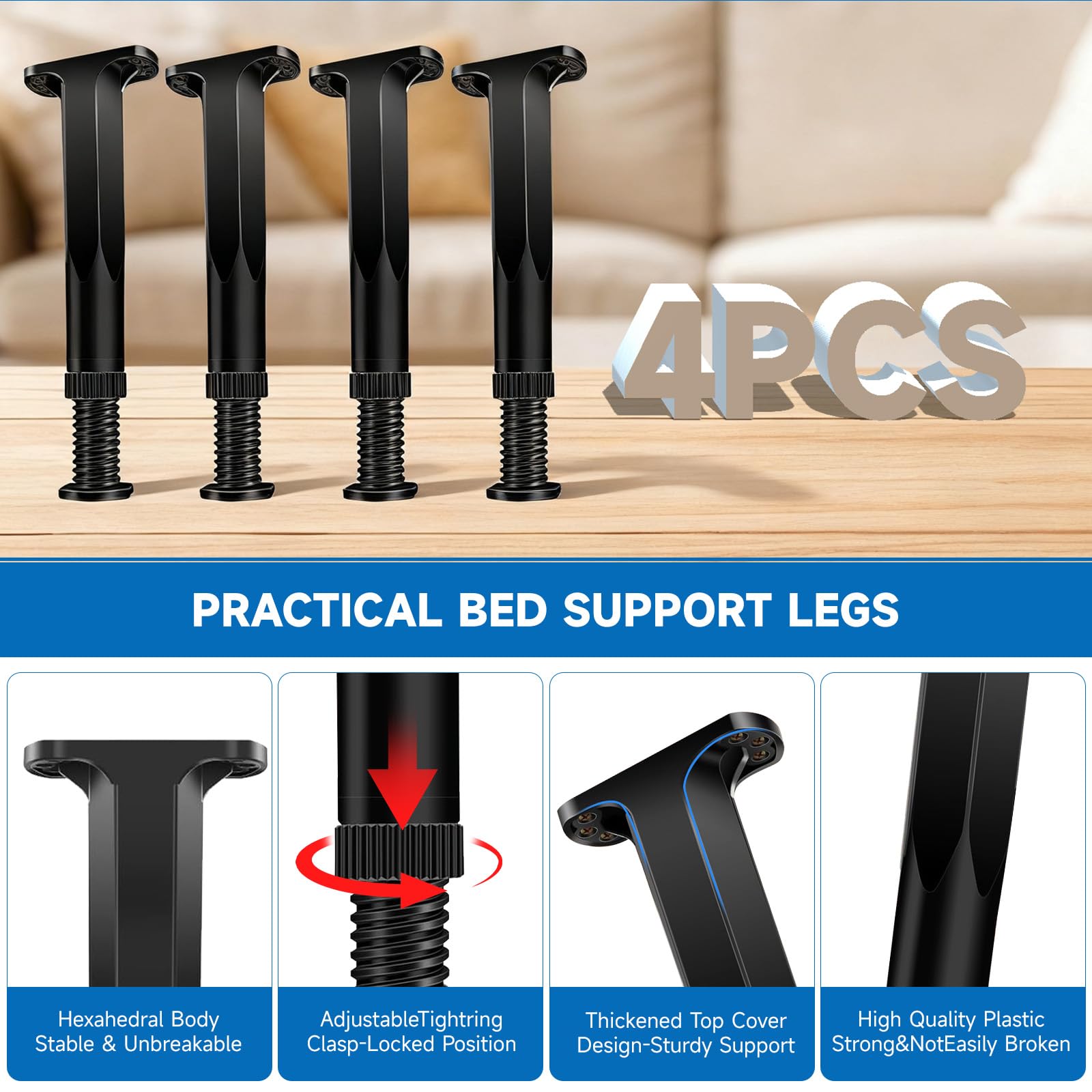 Ezprotekt 高さ調整 継ぎ脚 ベッド・テーブルの高さ調節 テーブル 脚 継ぎ足 こたつ 継足し テーブル脚台 50mm高さを上げる 4個セット 幅を調節できる・0mm~37mm (ブラック)