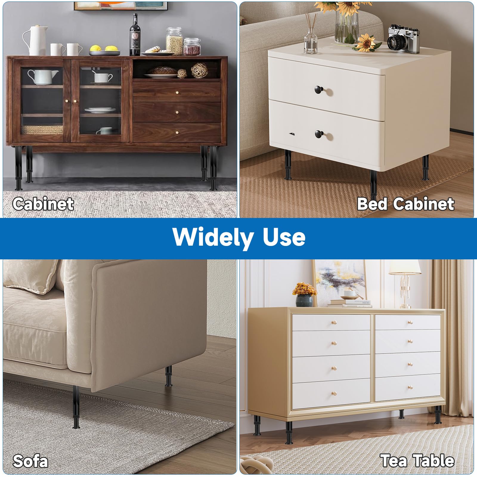 LOYELEY 伸縮式 レベリングフット 4個セット 家具アジャスター 金属製 高耐久 高さ 調節可能 レベリング足 家具移動パッド 水平調整パット Diy 置き換え足 ベッド/テーブル/ソファー 用 (ホワイト, 8-12cn)
