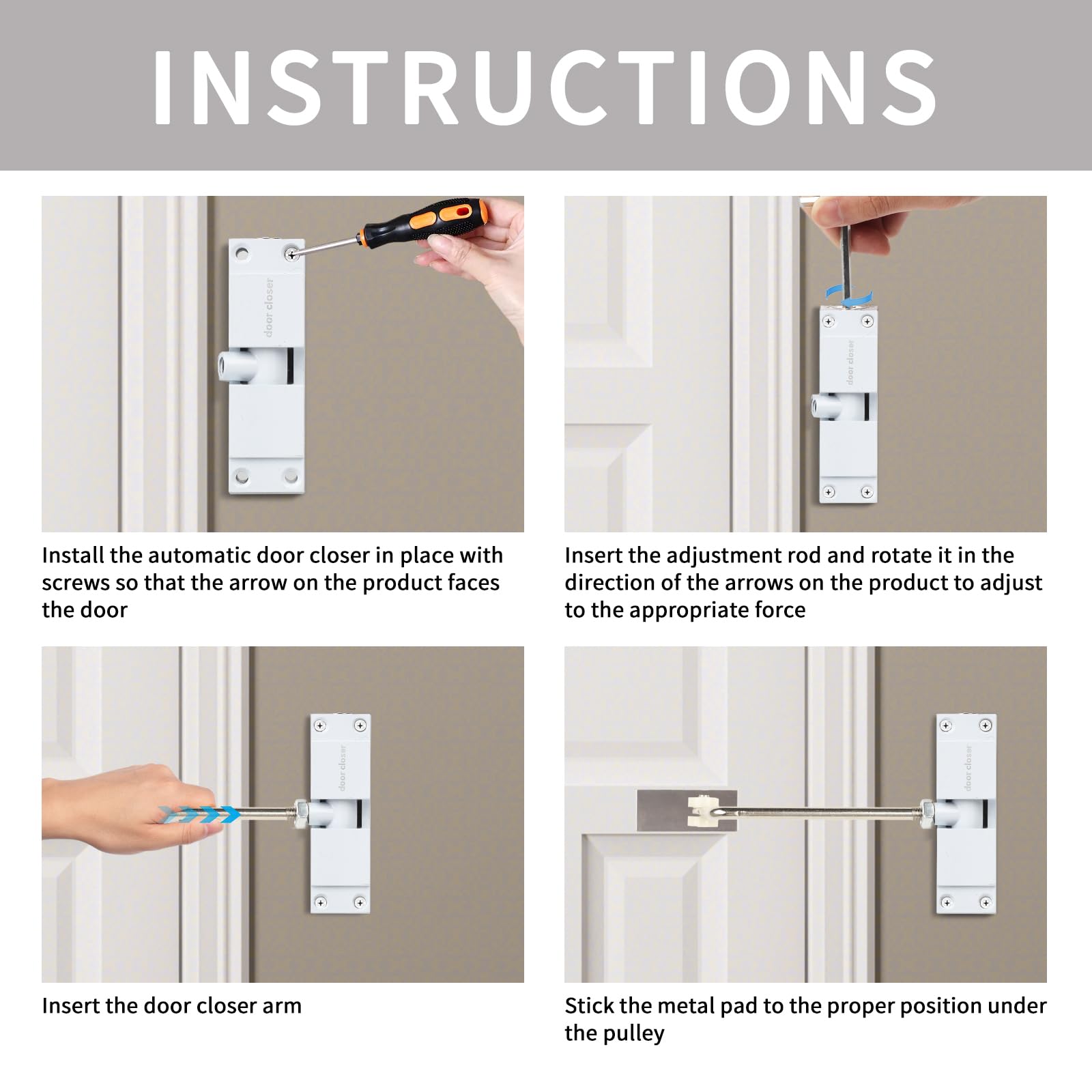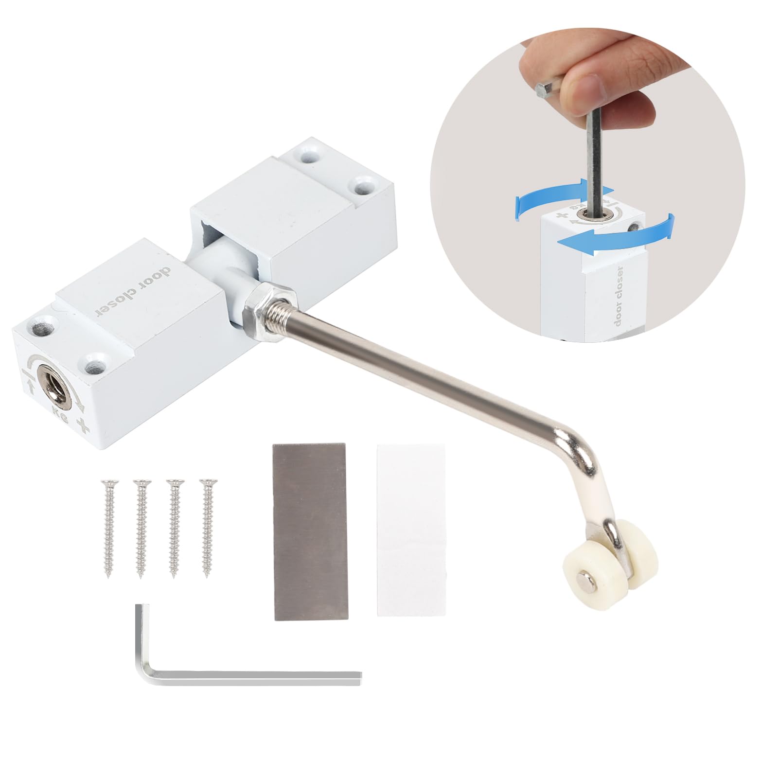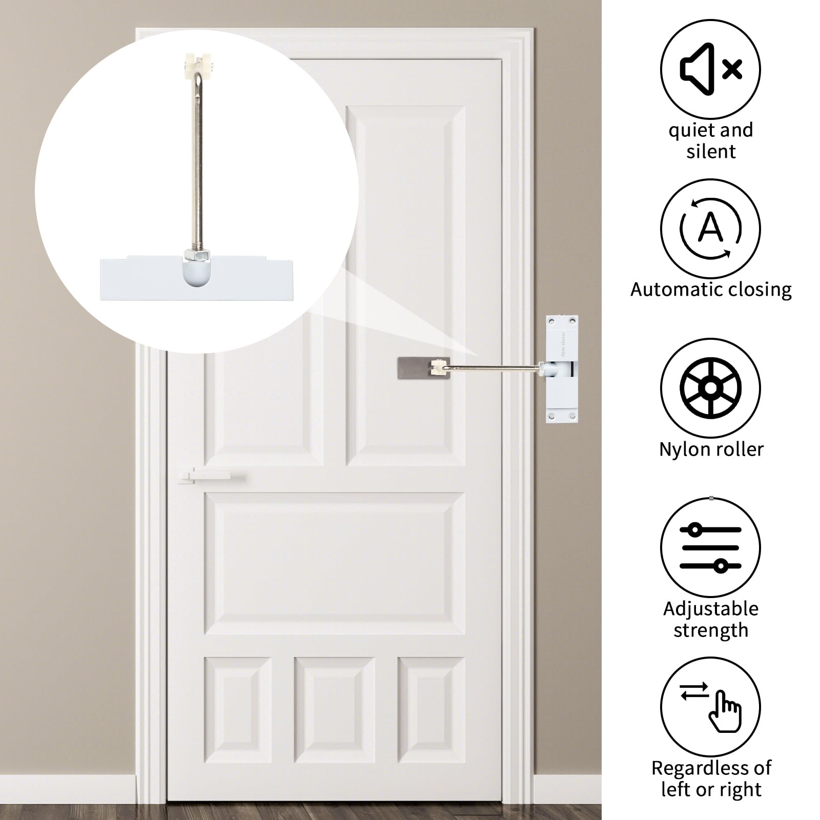 ドアクローザー 室内用 - 自動ドアクローザー, 取り付け簡単, 調整可能な閉鎖速度, オフィスの自宅駐在用 (ホワイト)