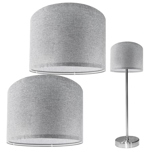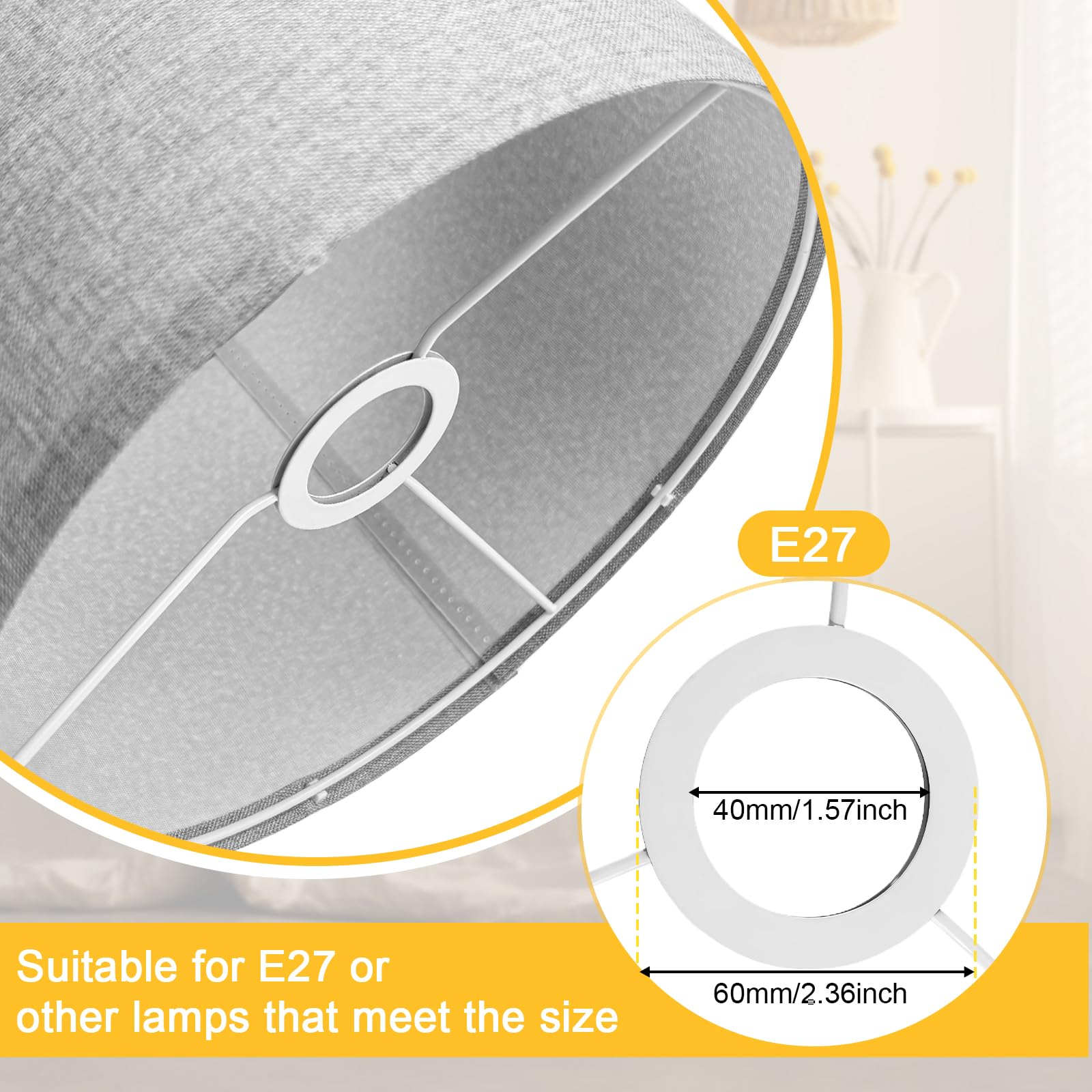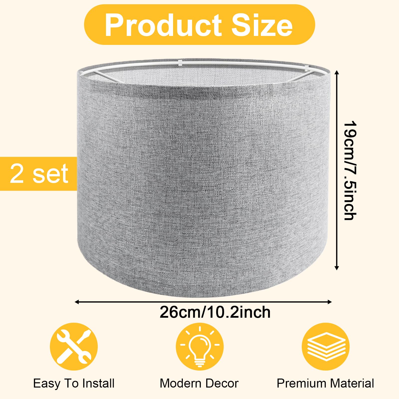 2個セット ランプシェード リネン ラウンド テーブルランプシェード 家庭用 電気スタンドの傘 直径26cm 高さ16cm 雰囲気 シンプルなデザイン グレー E27ラ ンプシェードアダプターリング