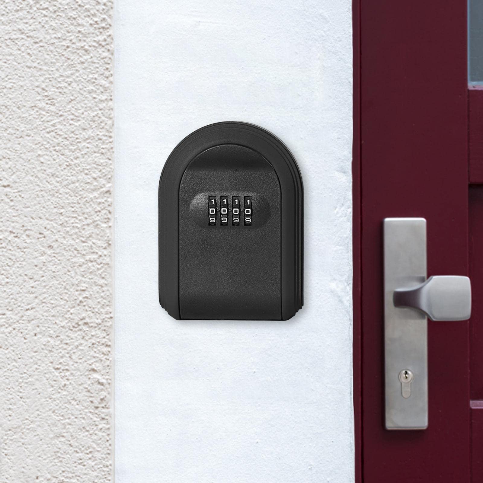 キーロックボックス 壁取り付け ポータブルロックボックス 家の鍵用 5つのキー容量 耐候性 リセット可能 コードハウス キー 安全 セキュリティロックボックス 屋内/屋外/ガレージ/庭/店舗用 (Black)