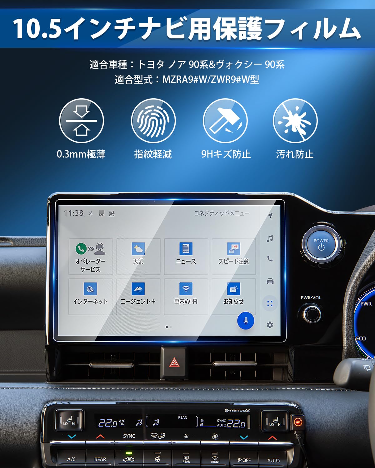 WEIPIN 2022 新型ノア ヴォクシー 90系 ナビ 強化ガラス保護フィルム 10.5インチ トヨタ ノア ヴォクシー R90W 4代目 カーナビ 保護フィルム T-Connect ディスプレイオーディオ 9H キズ防止 汚れ防止 低反射 HD 高感度タッチ 自己吸着タイプ 新型ノア ヴォクシー90系 アクセサリー