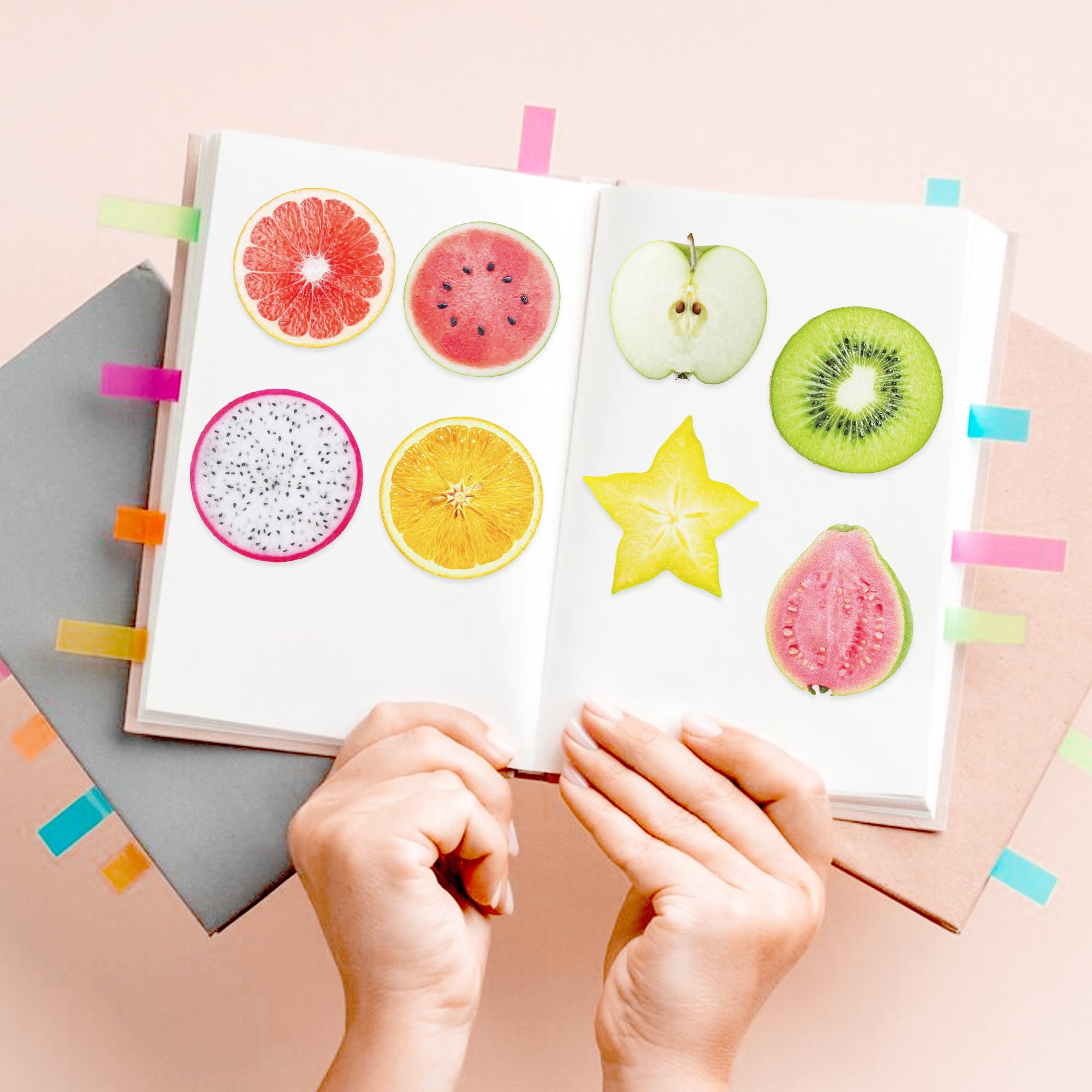 フルーツ&柄付箋12枚入り、フルーツテーマ付箋帳240枚入り、学生/家庭オフィス/ルームメイト向けギフト専用ラベルシール