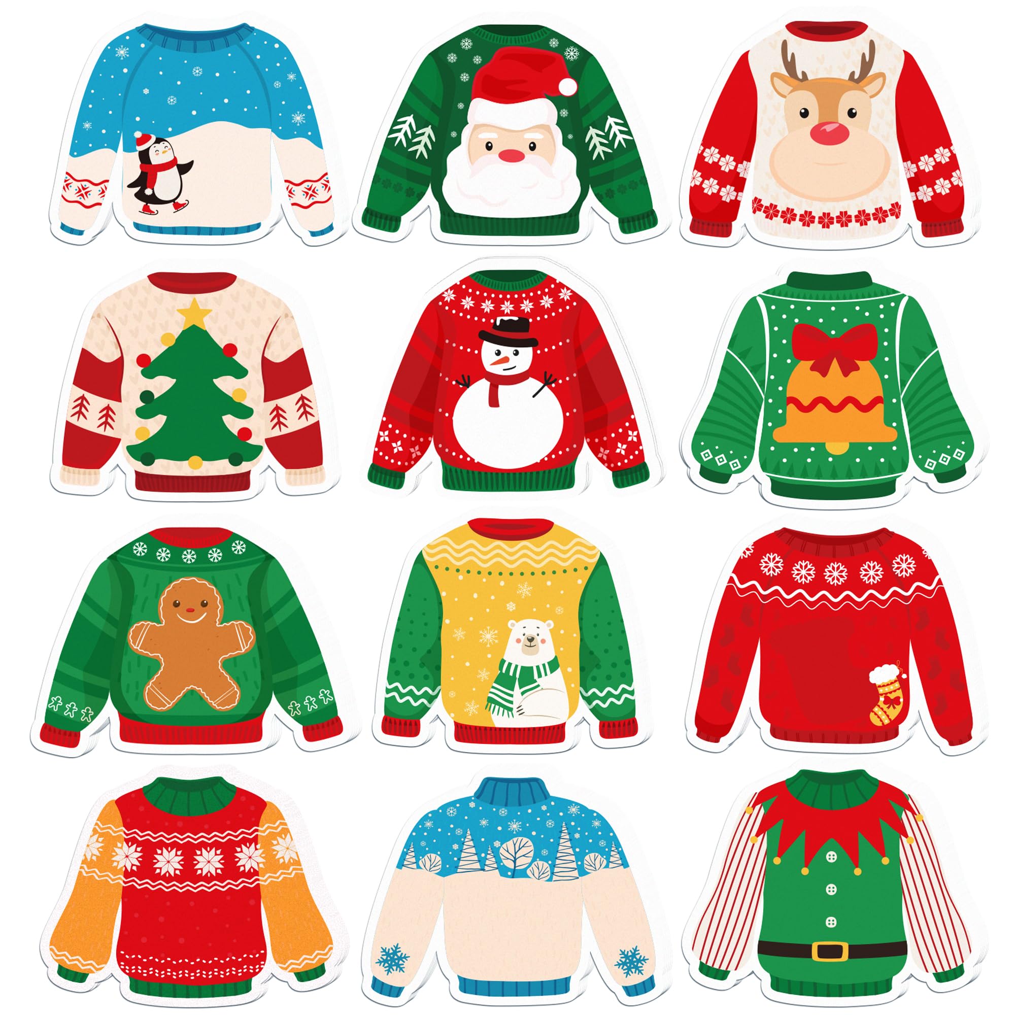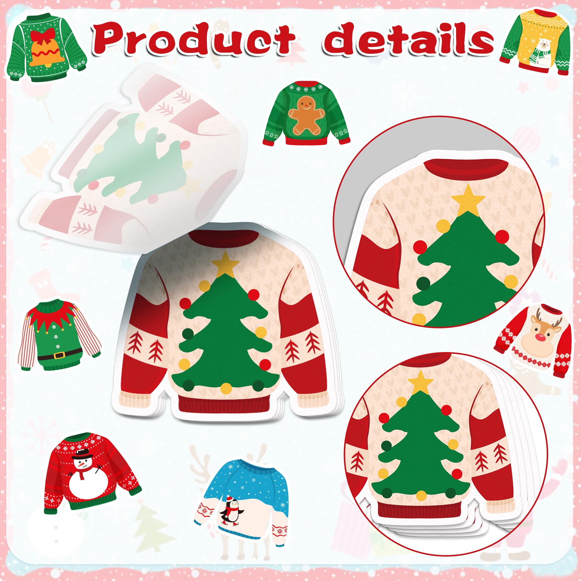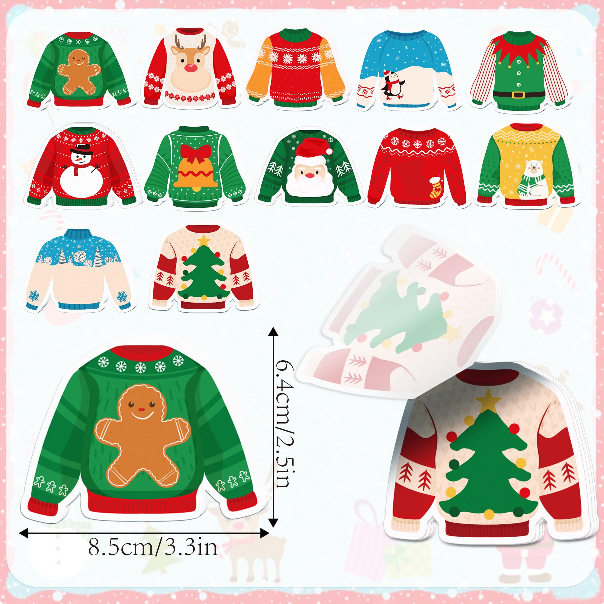クリスマス用ステッカーノート12パック、ダサいセーターデザイン自己粘着式ステッカーノート240枚、学生用、在宅オフィス用、ルームメイト用ギフトタグ用品