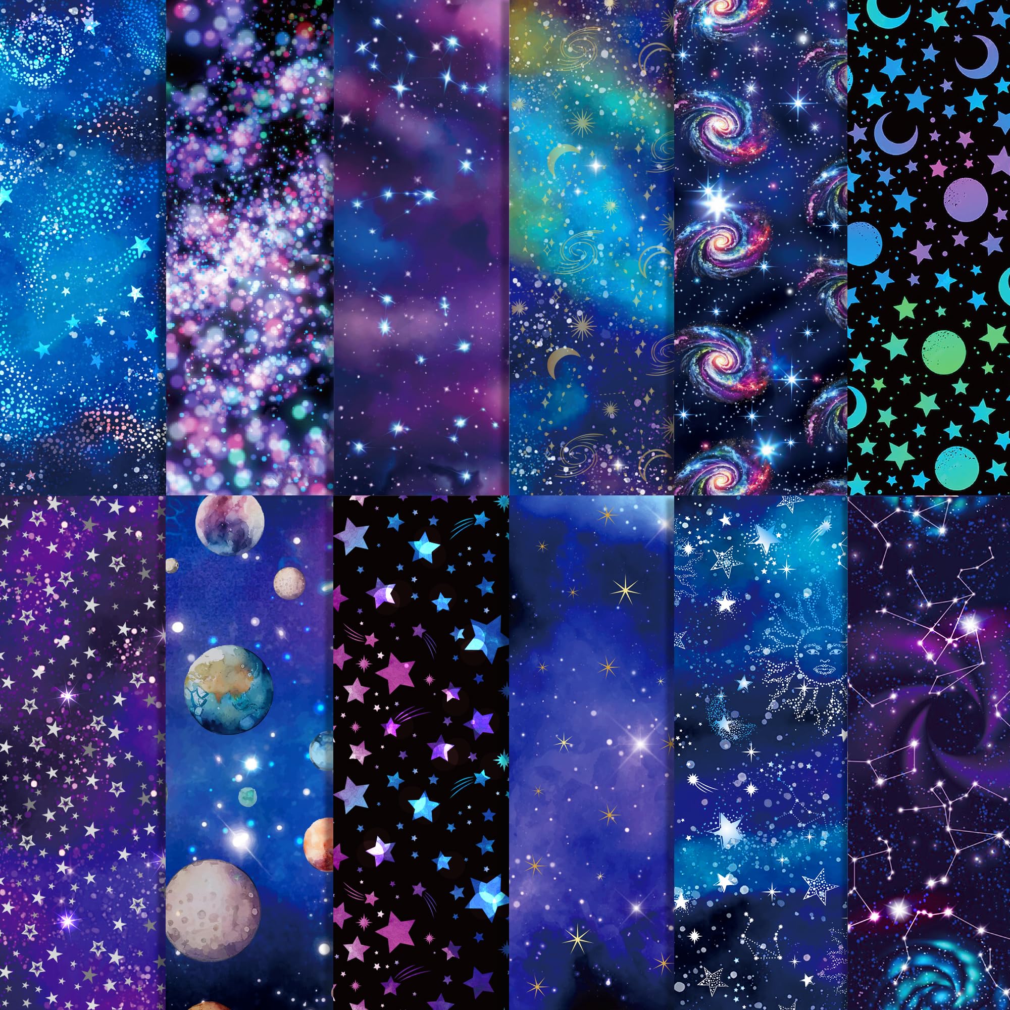 24 PCS の星明かりの夜のスクラップブックのペーパー パッド、スクラップブッキング DIY の背景の作成のための青いギャラクシーの両面の装飾的なペーパー
