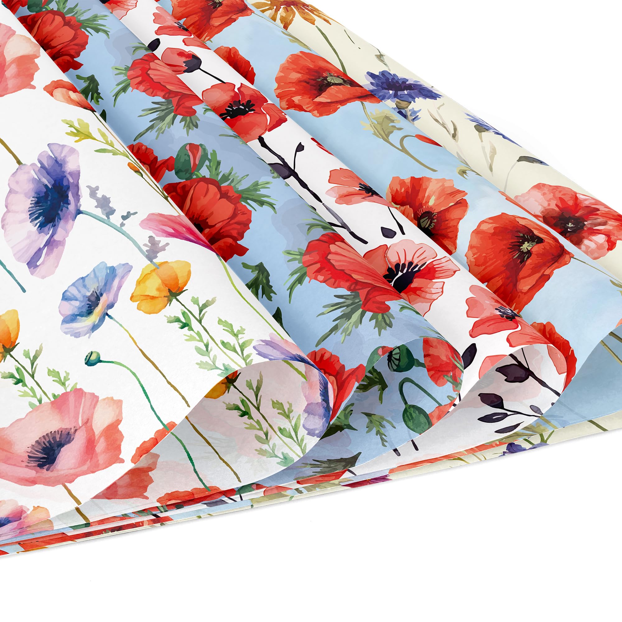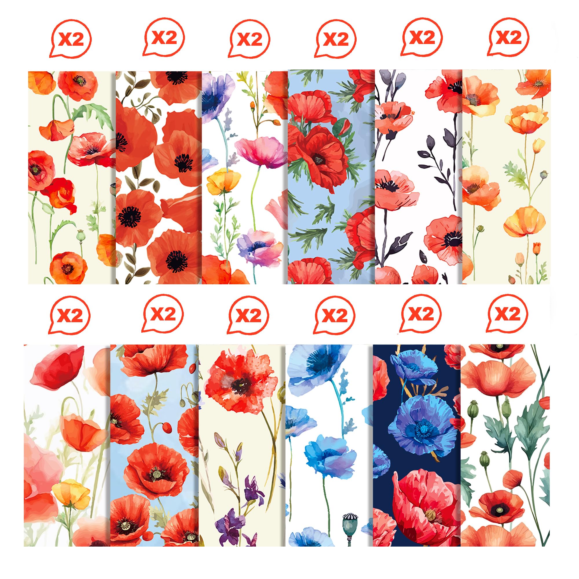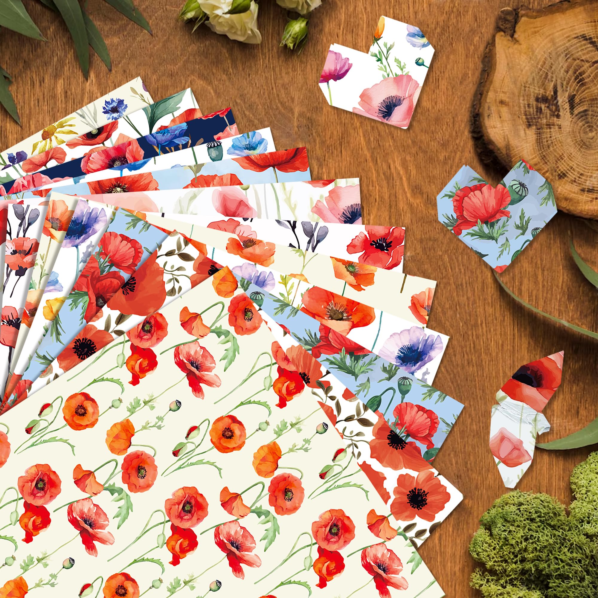 24枚入りポピー柄スクラップブックペーパーパッド、カラフルな花柄両面装飾紙(カード作り・アートアルバム・クラフト・DIY用)