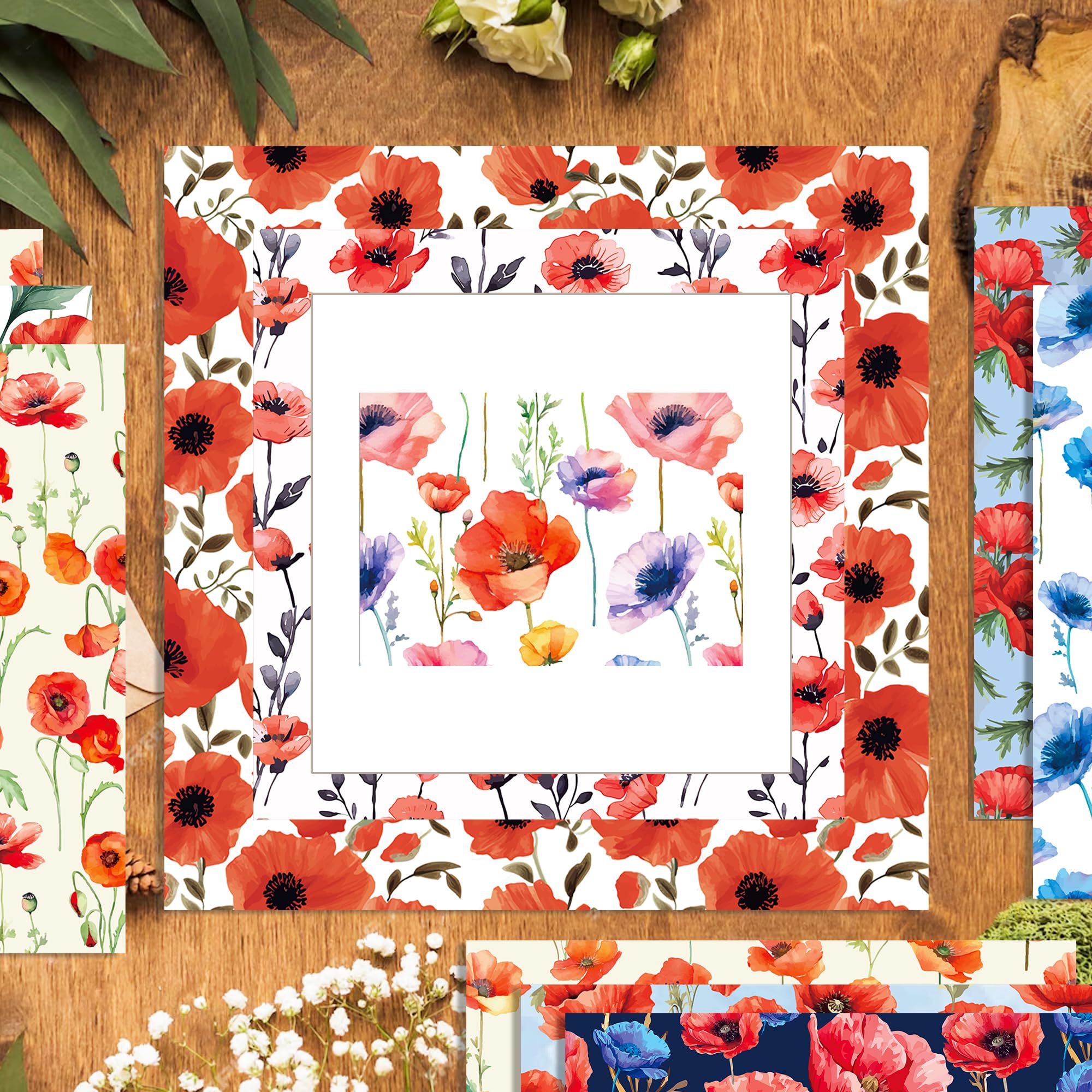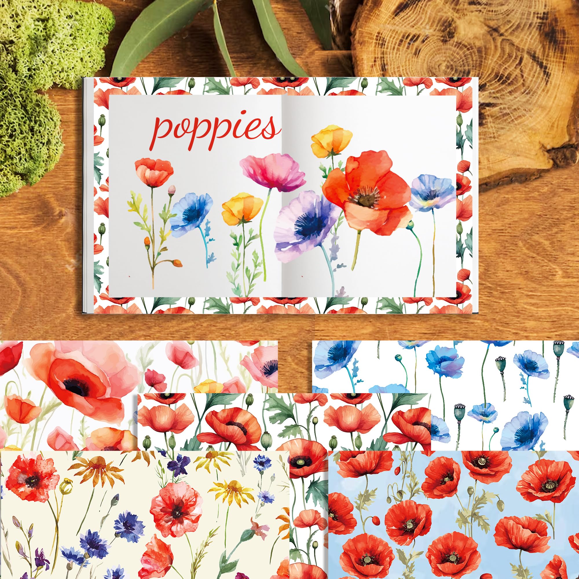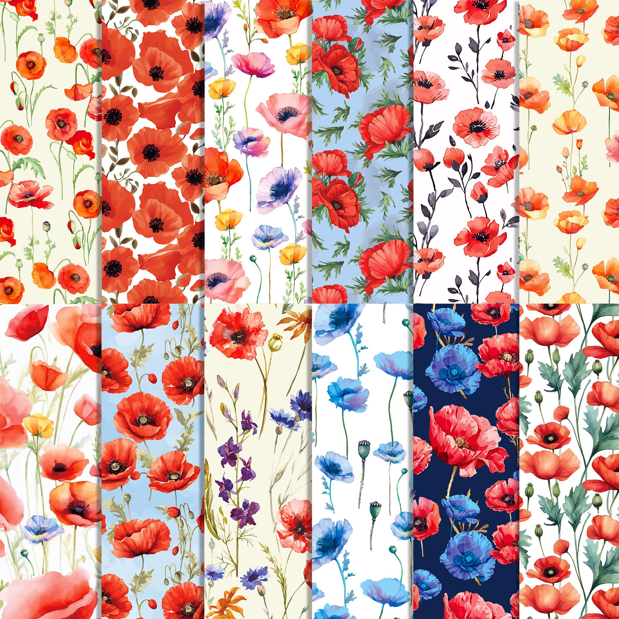 24枚入りポピー柄スクラップブックペーパーパッド、カラフルな花柄両面装飾紙(カード作り・アートアルバム・クラフト・DIY用)