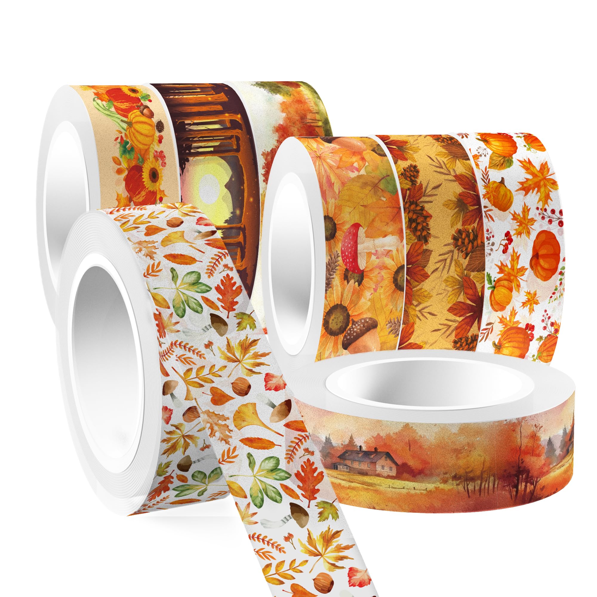 感謝祭和紙テープ12巻セット、秋の紅葉ホリデー装飾テープ(スクラップブッキング用品、DIYクラフト、ノート取り用品、プランナー用) [並行輸入品]