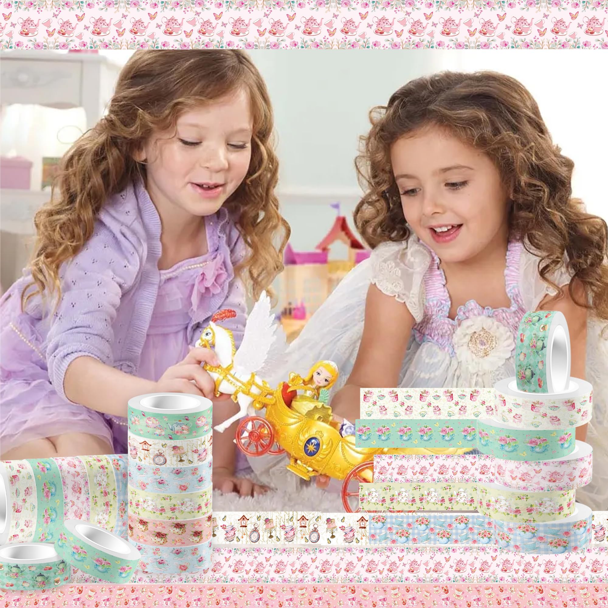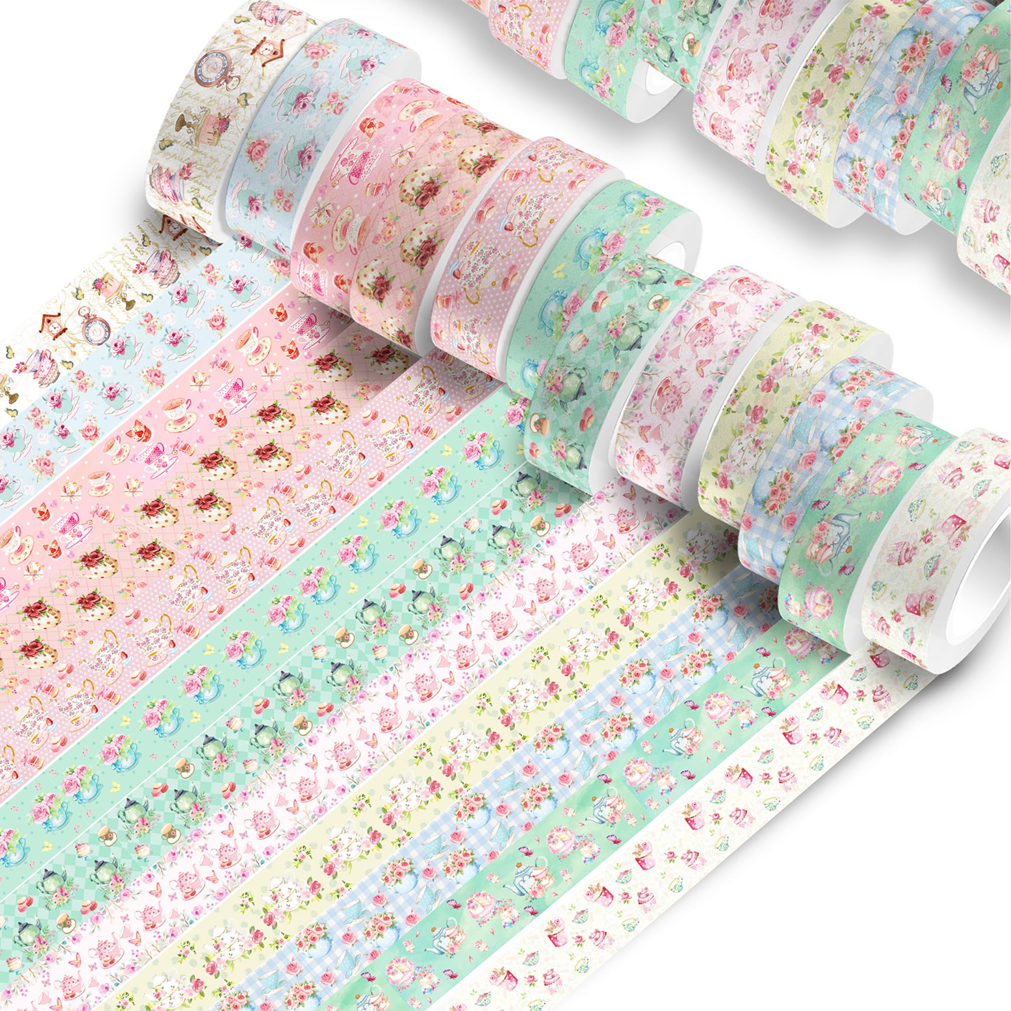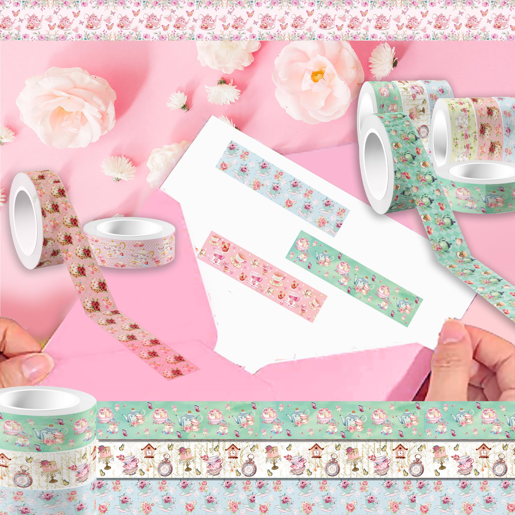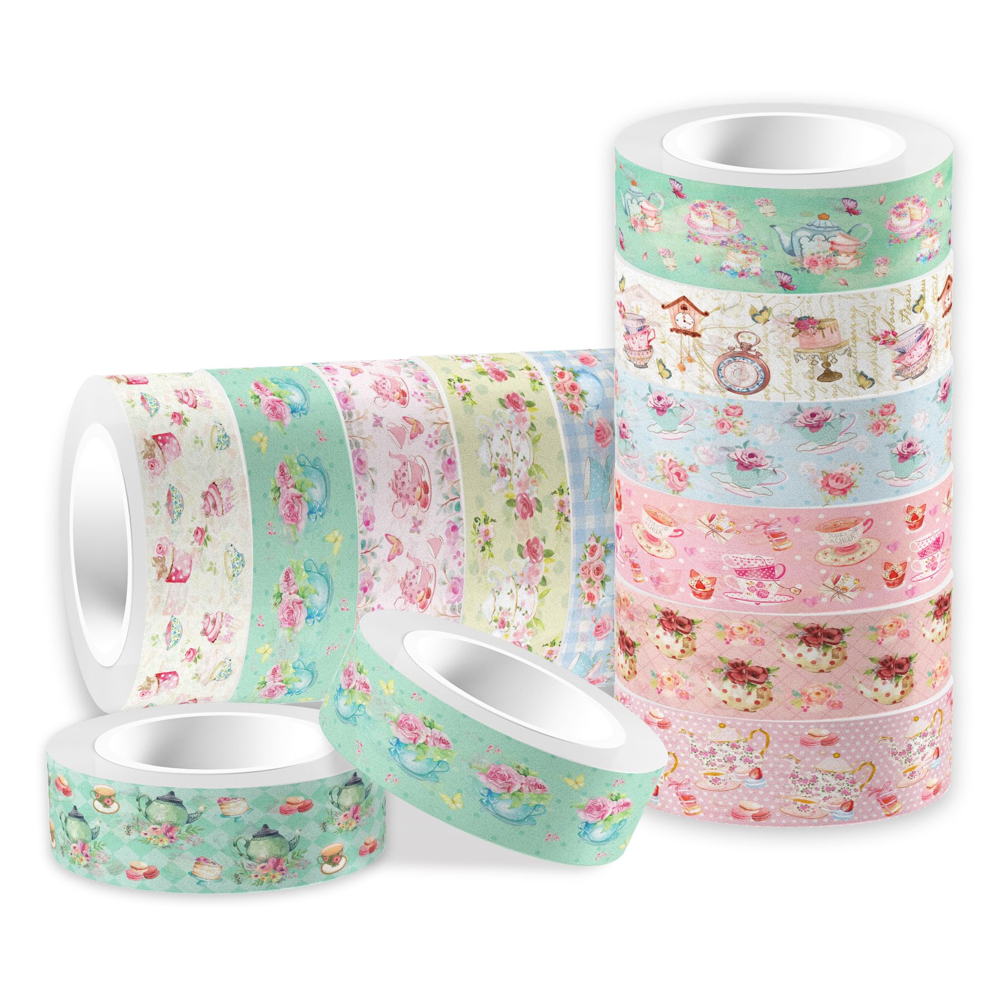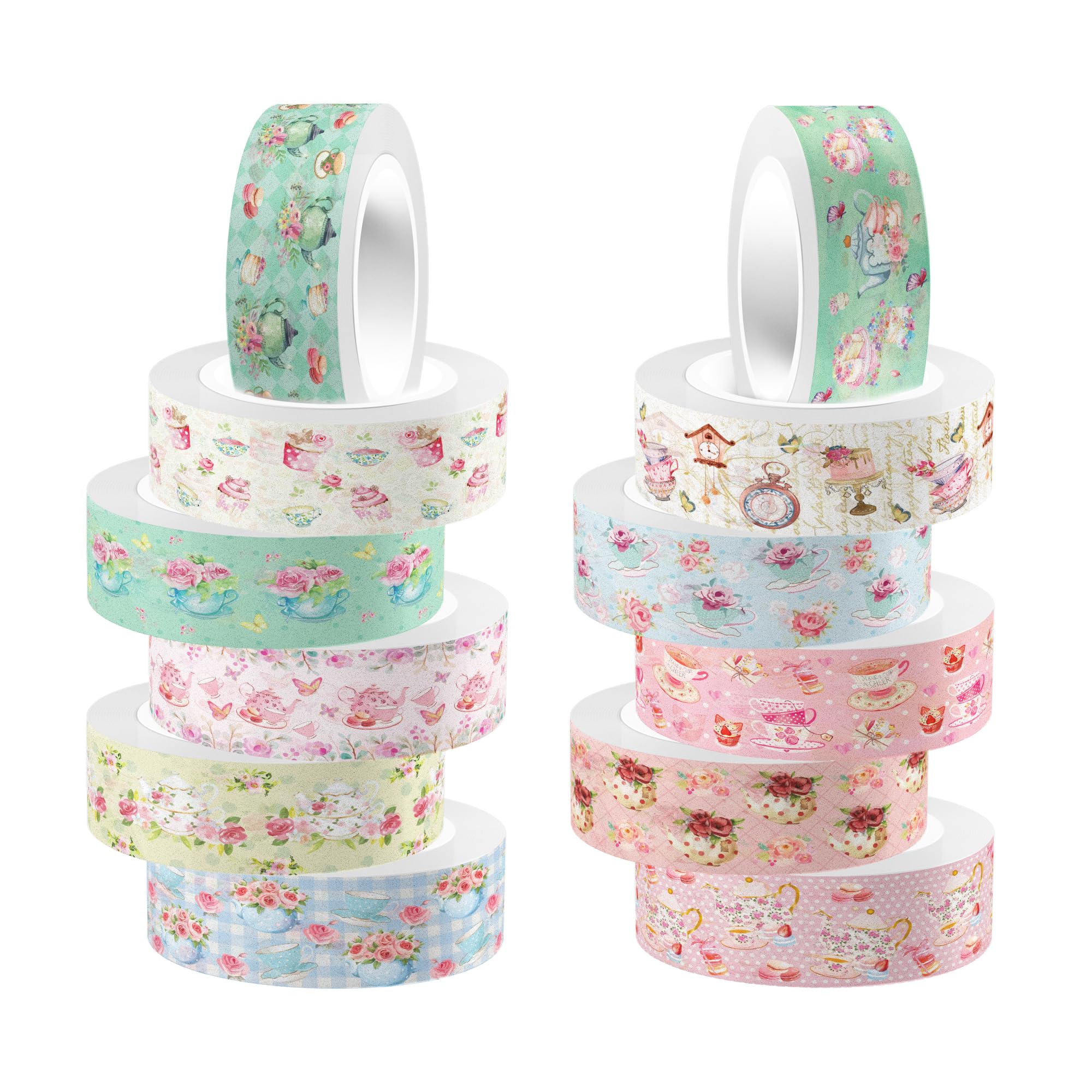 12巻入りティーパーティー和紙テープセット繊細な花柄デザインの装飾テープスクラップブッキング用品、DIYクラフト、文房具、プランナー用 [並行輸入品]