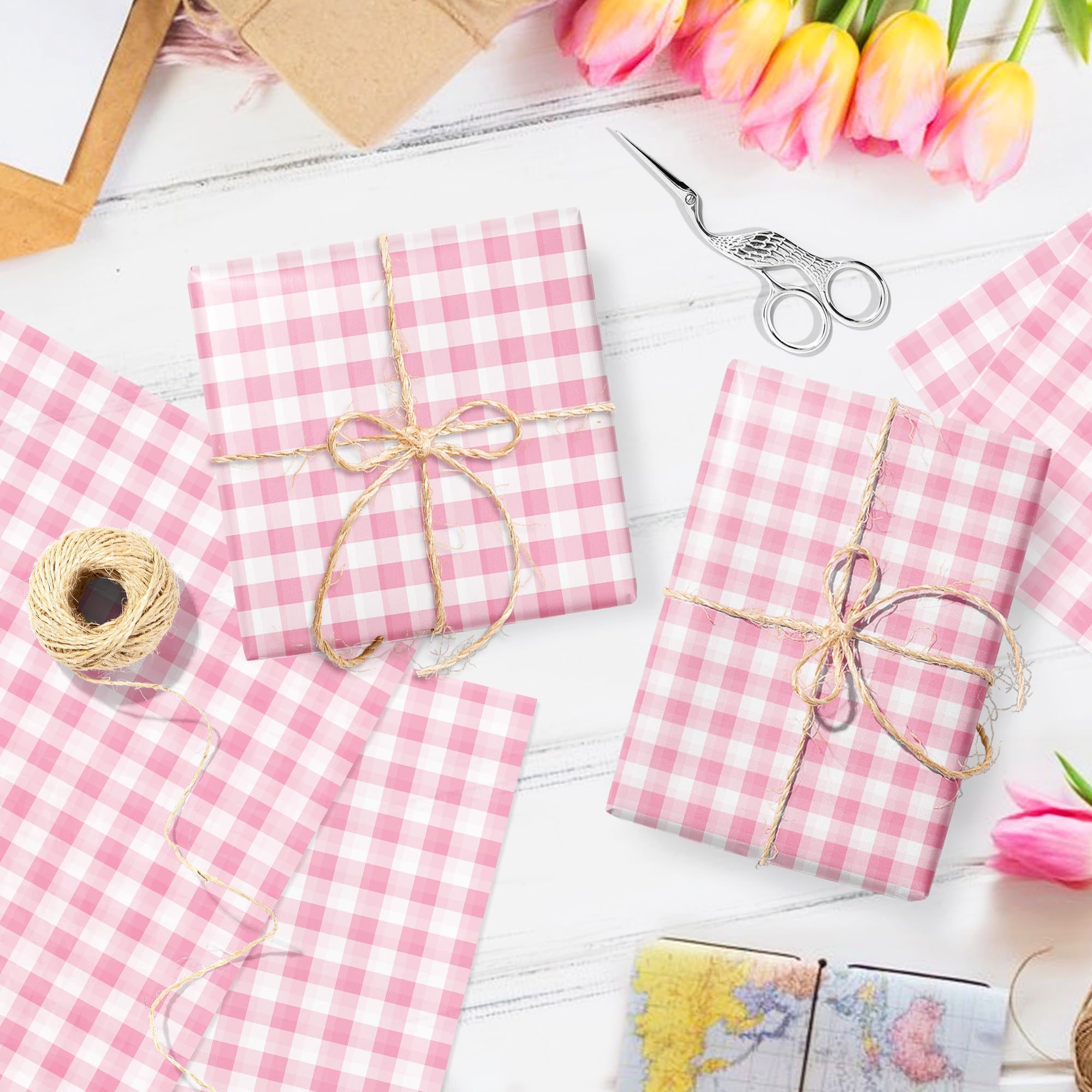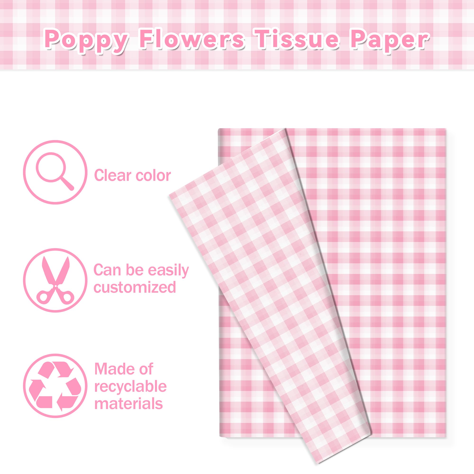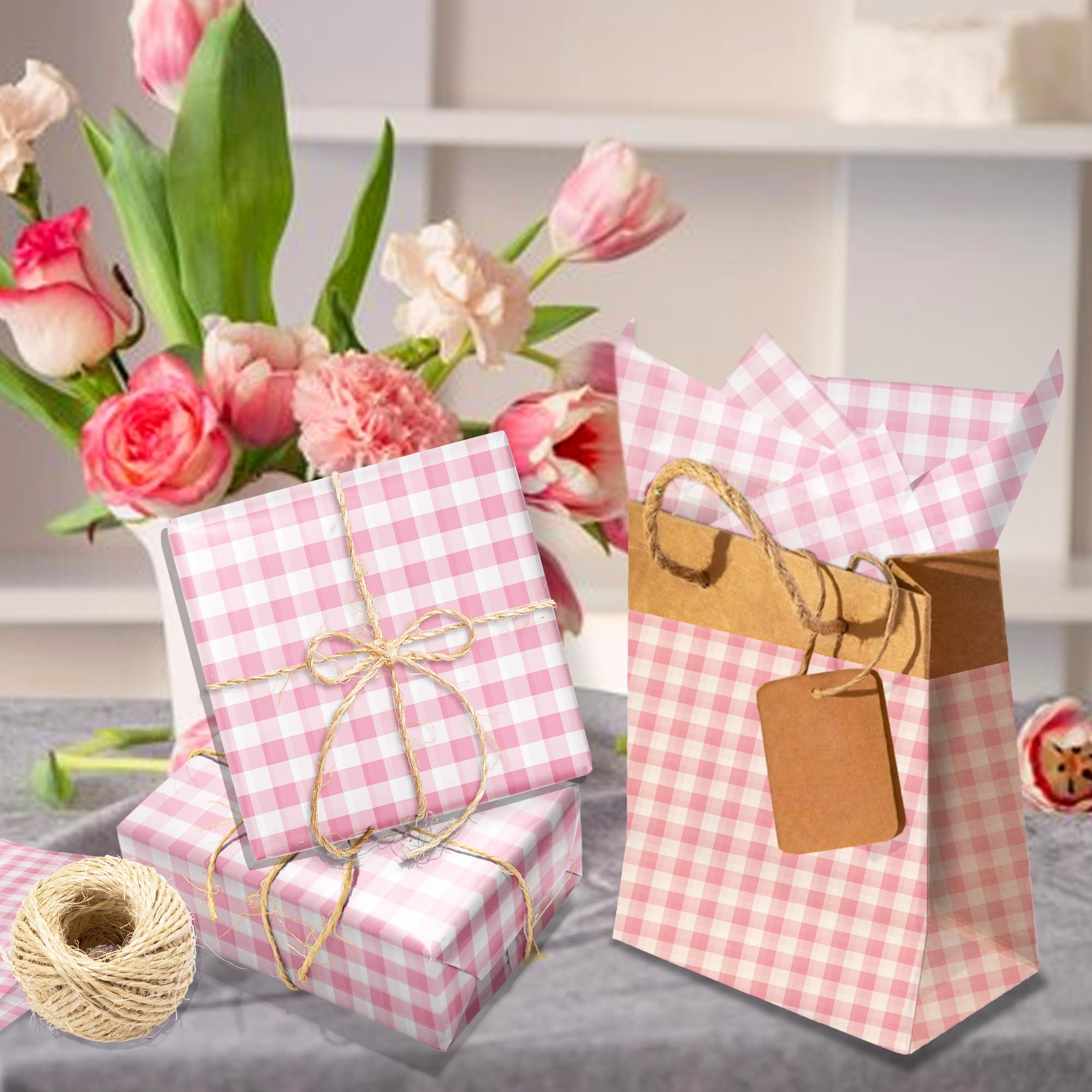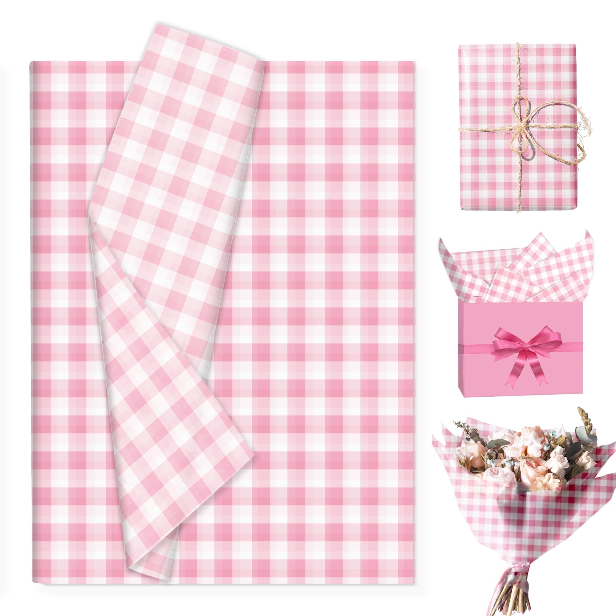 100枚入り ピンクのチェック柄包装紙、薄葉紙花柄ギフト用ティシューペーパー、手作りのアートウェディング・バースデー・ベビーシャワー用ギフト用紙 13.8 x 19.7インチ