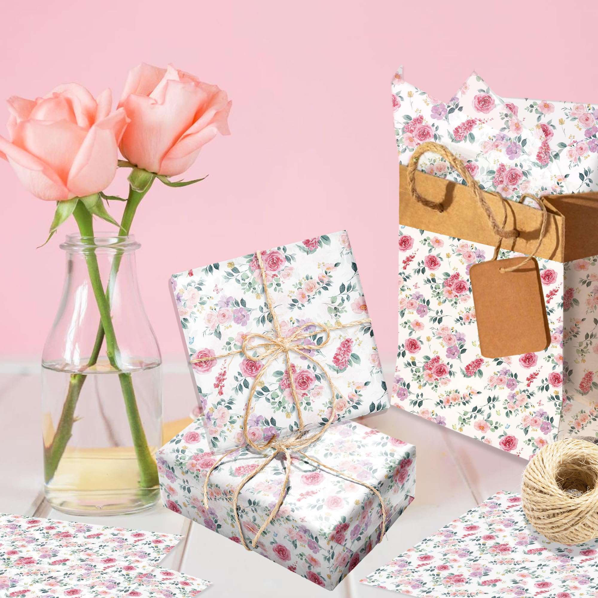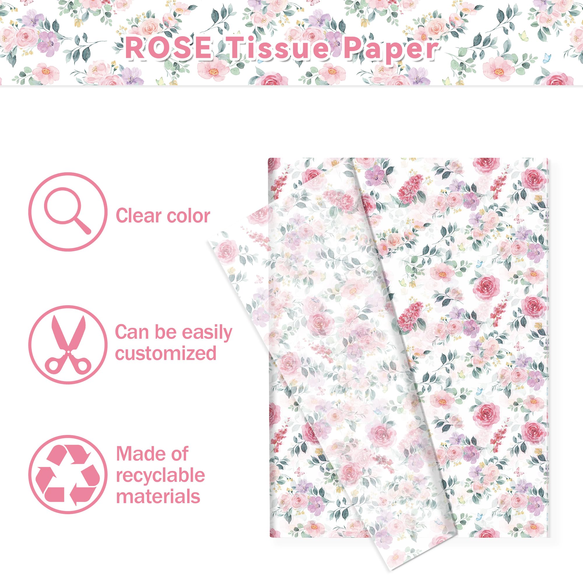 ローズ薄葉紙 100枚、柄入りギフトキャンディ包装紙、手作りアート誕生日・結婚式引き出物包装紙、サイズ:13.8 x 19.7インチ
