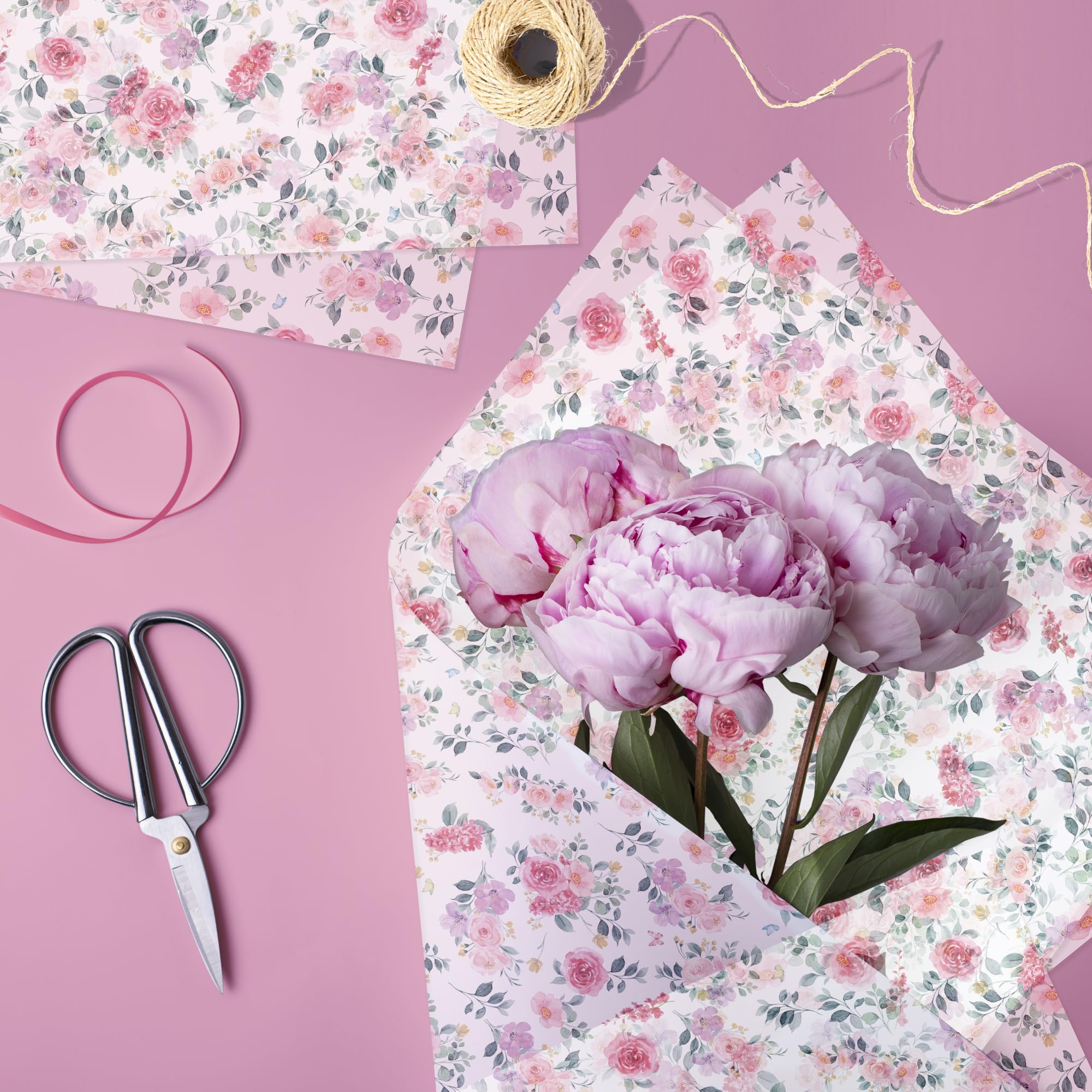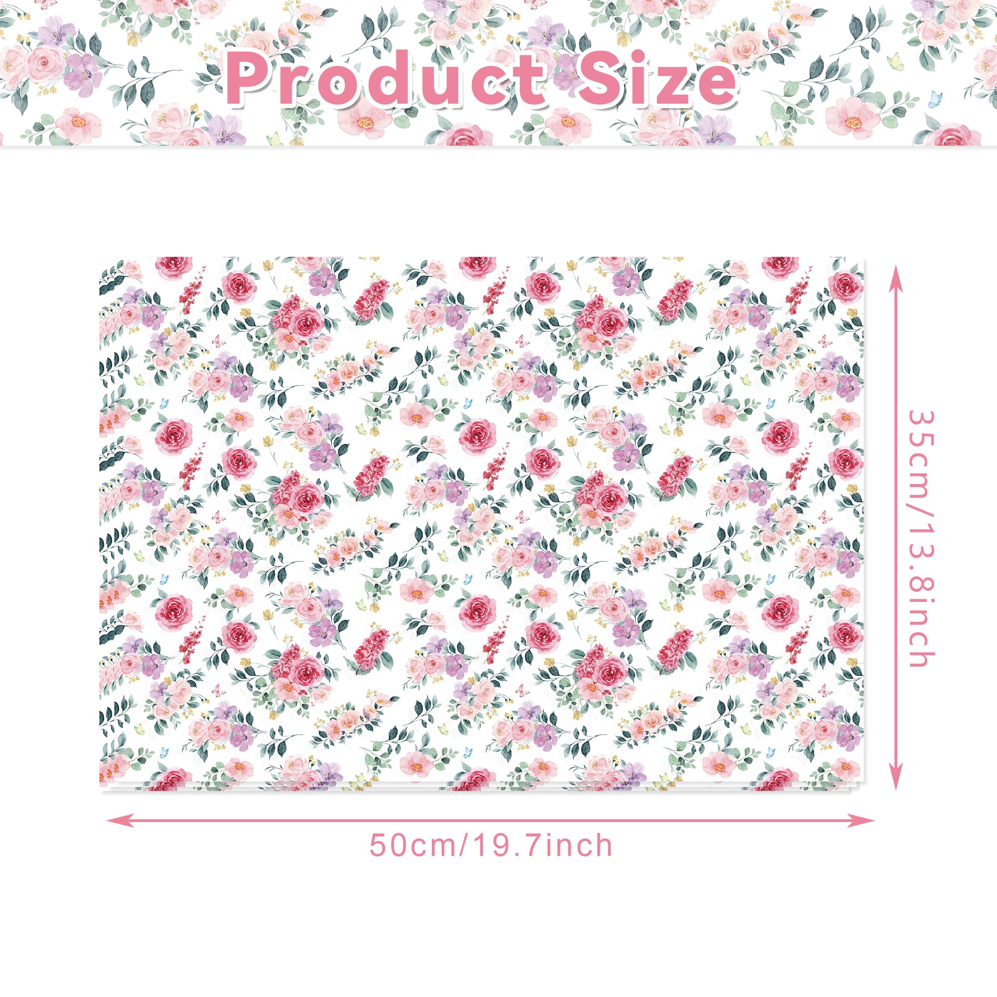 カラフルな小花柄薄葉紙 100枚、模様入りギフトキャンディ包装紙、手作りアート誕生日・結婚式引き出物包装紙、サイズ:13.8 x 19.7インチ