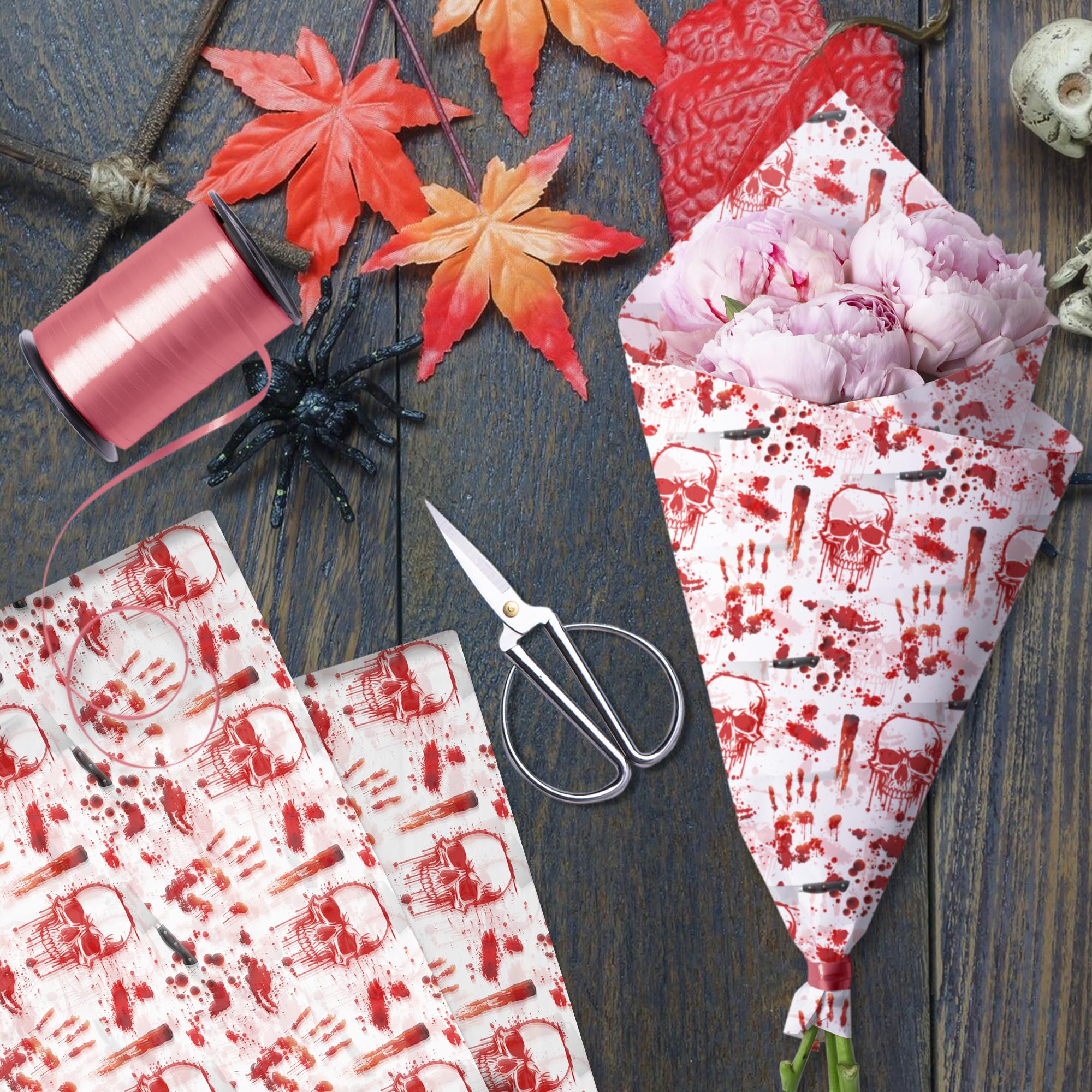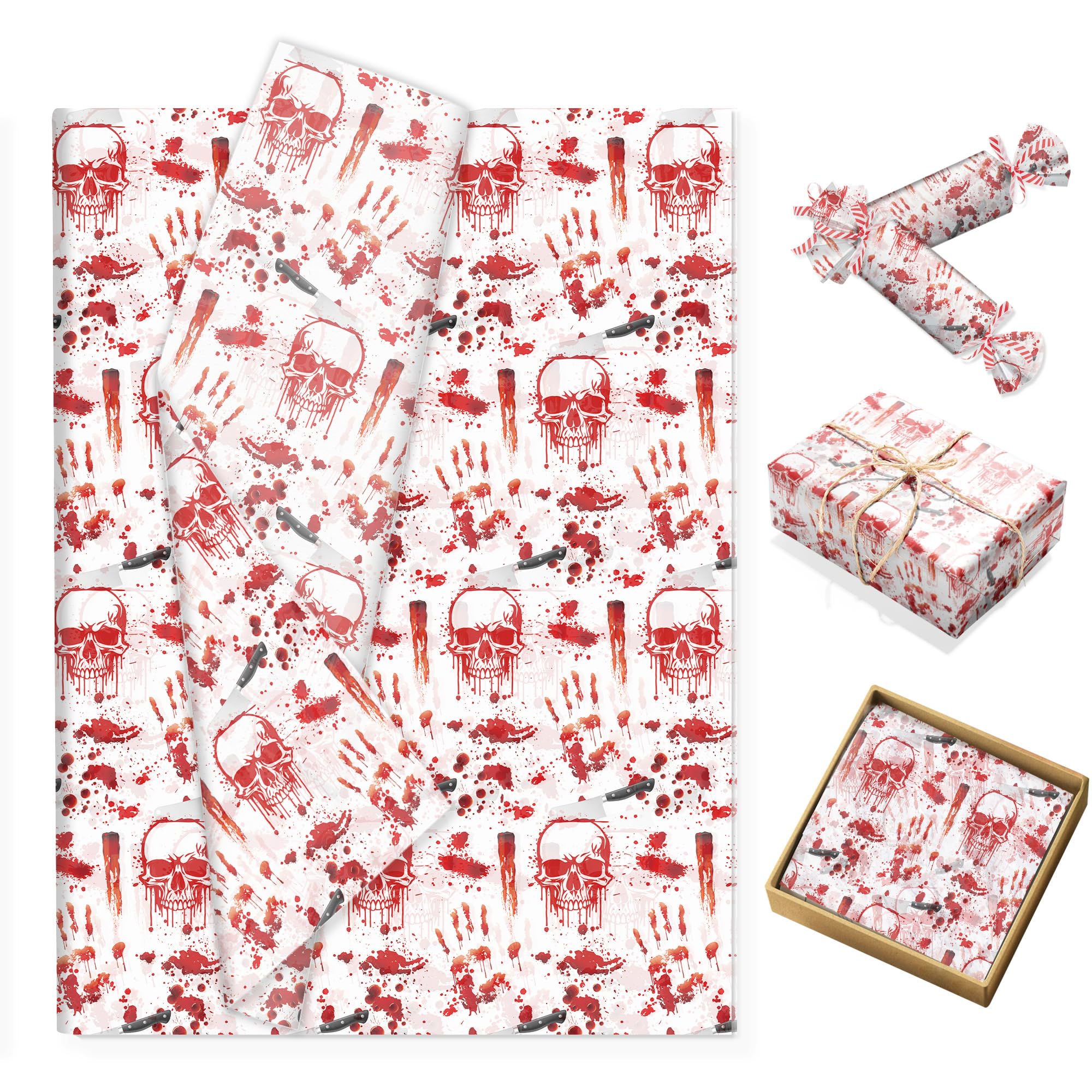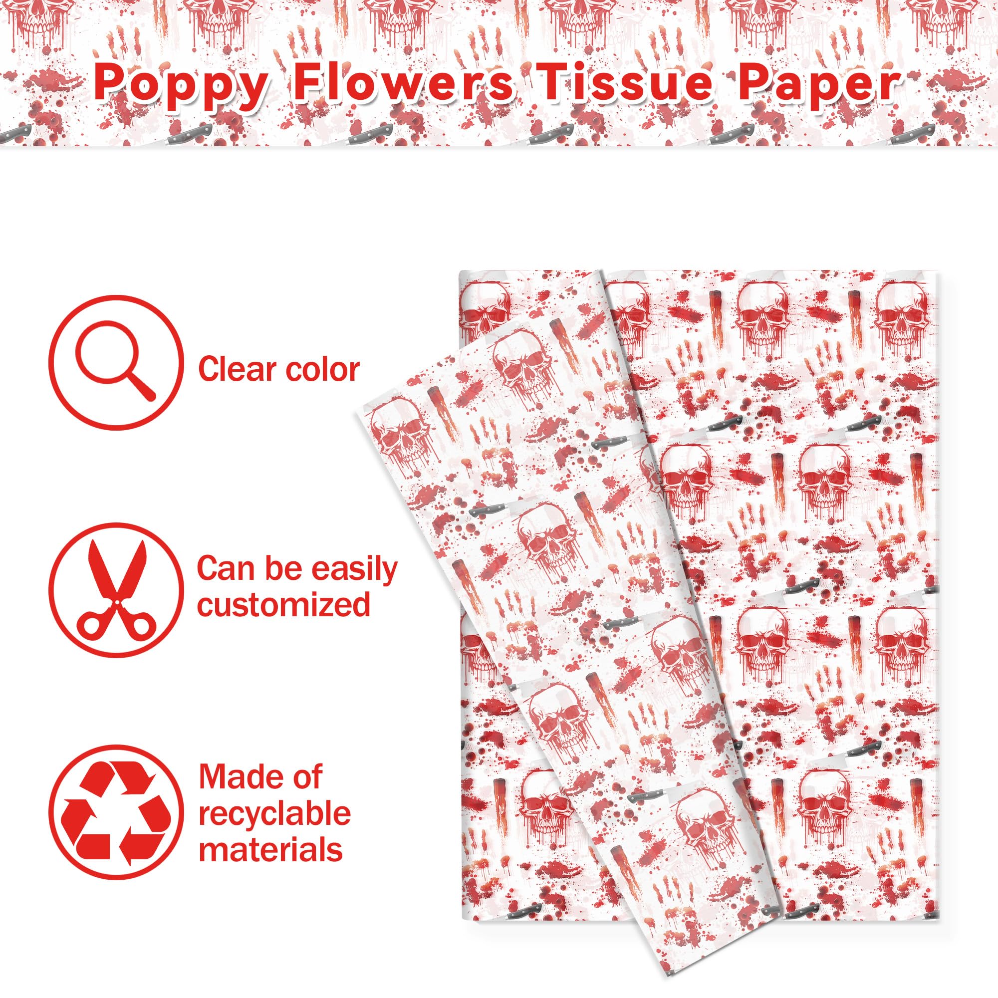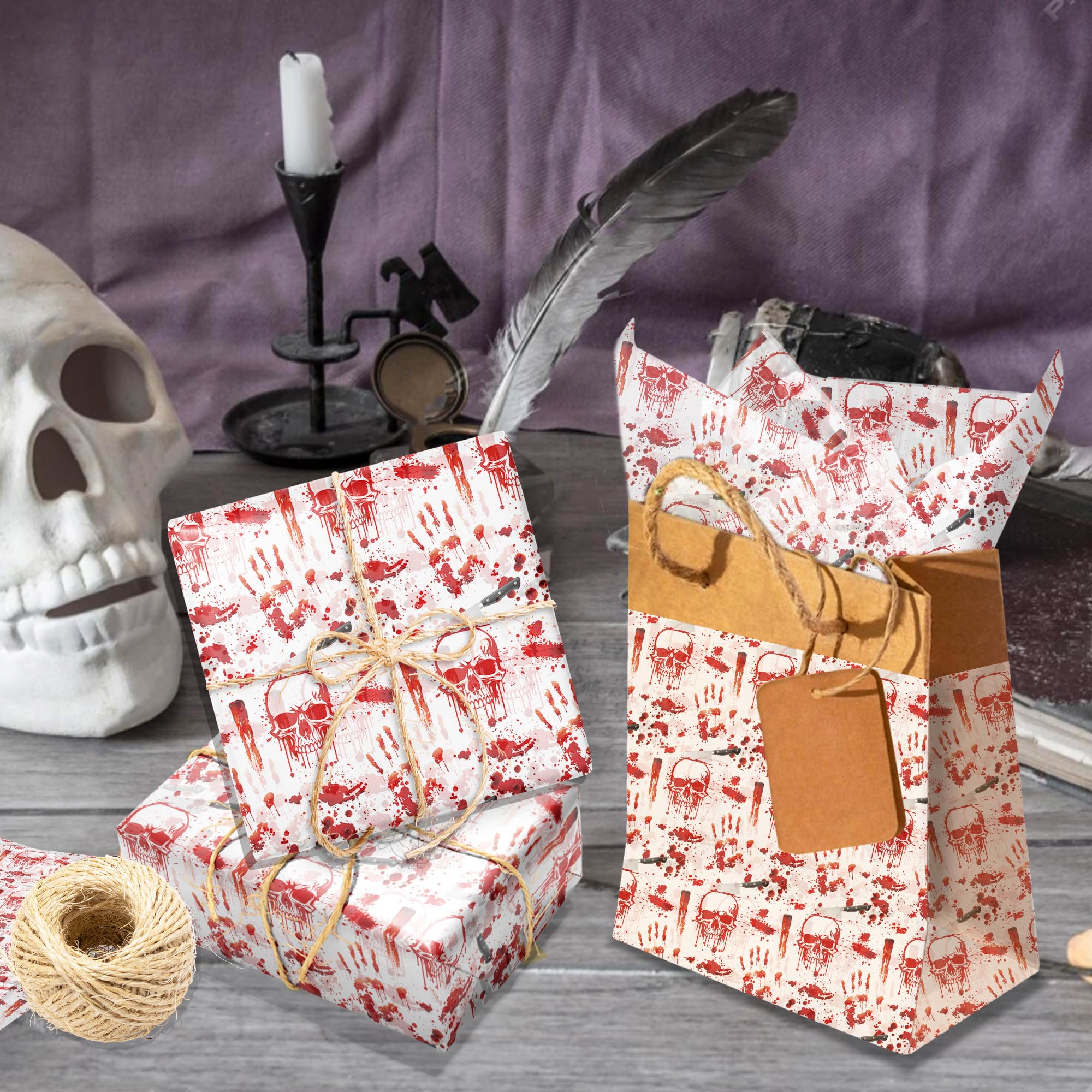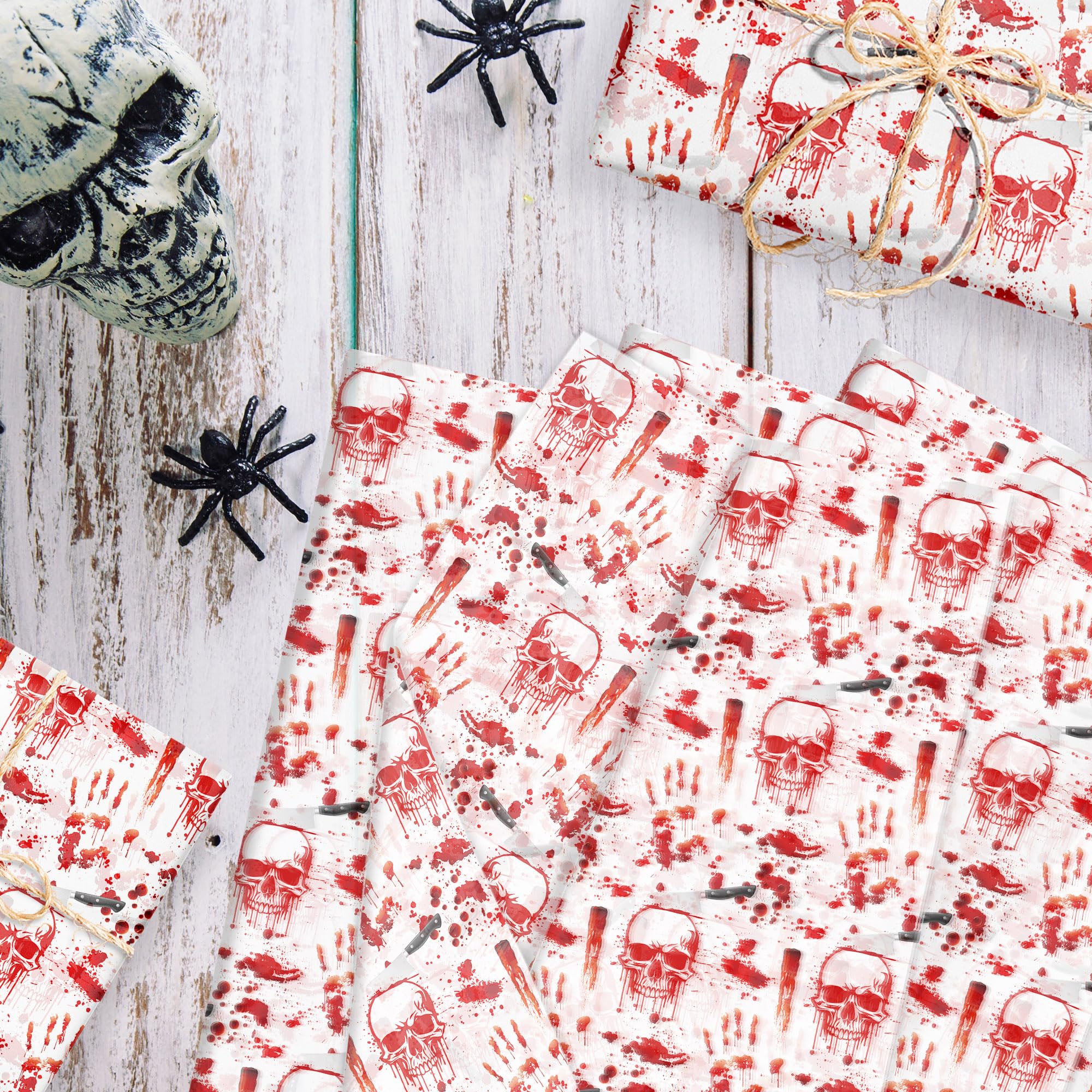 ハロウィン薄葉紙 100枚、赤色スカルギフトキャンディ包装紙、手作りアート誕生日・祝祭包装紙、サイズ:13.8 x 19.7インチ
