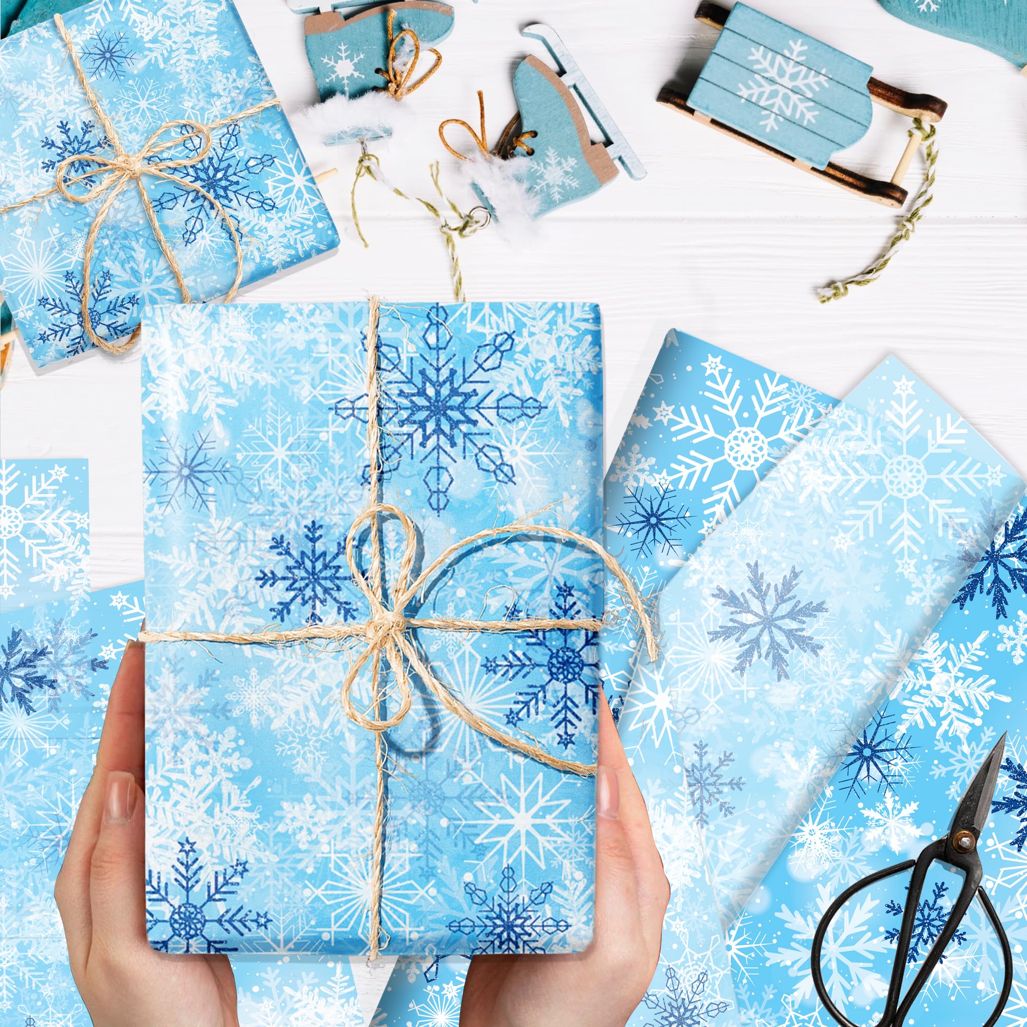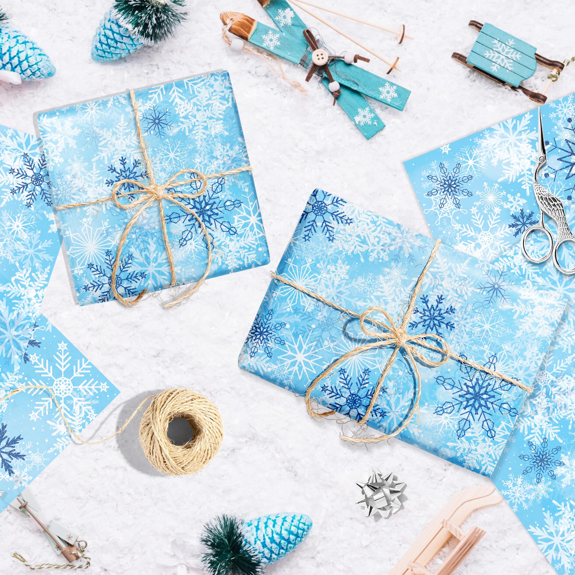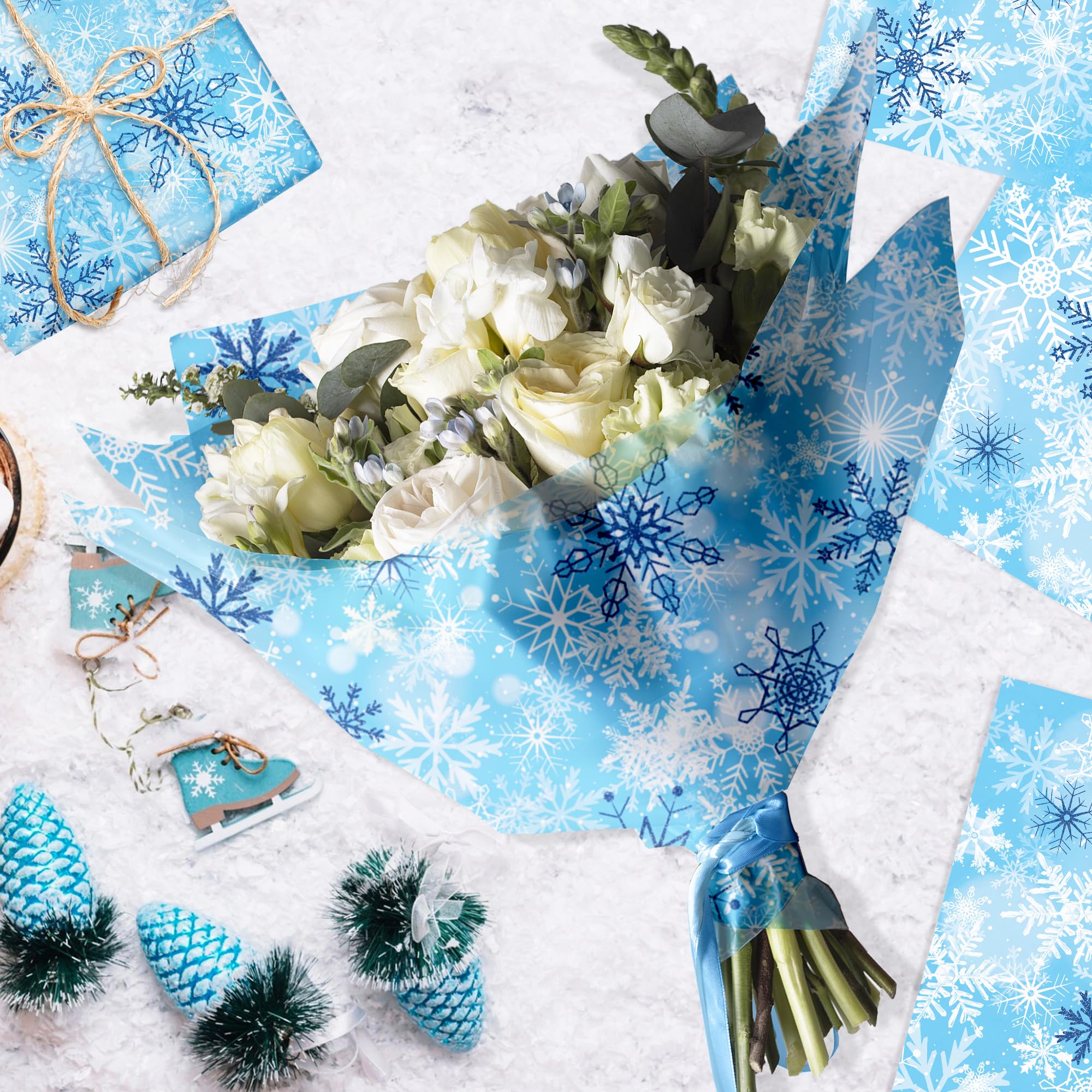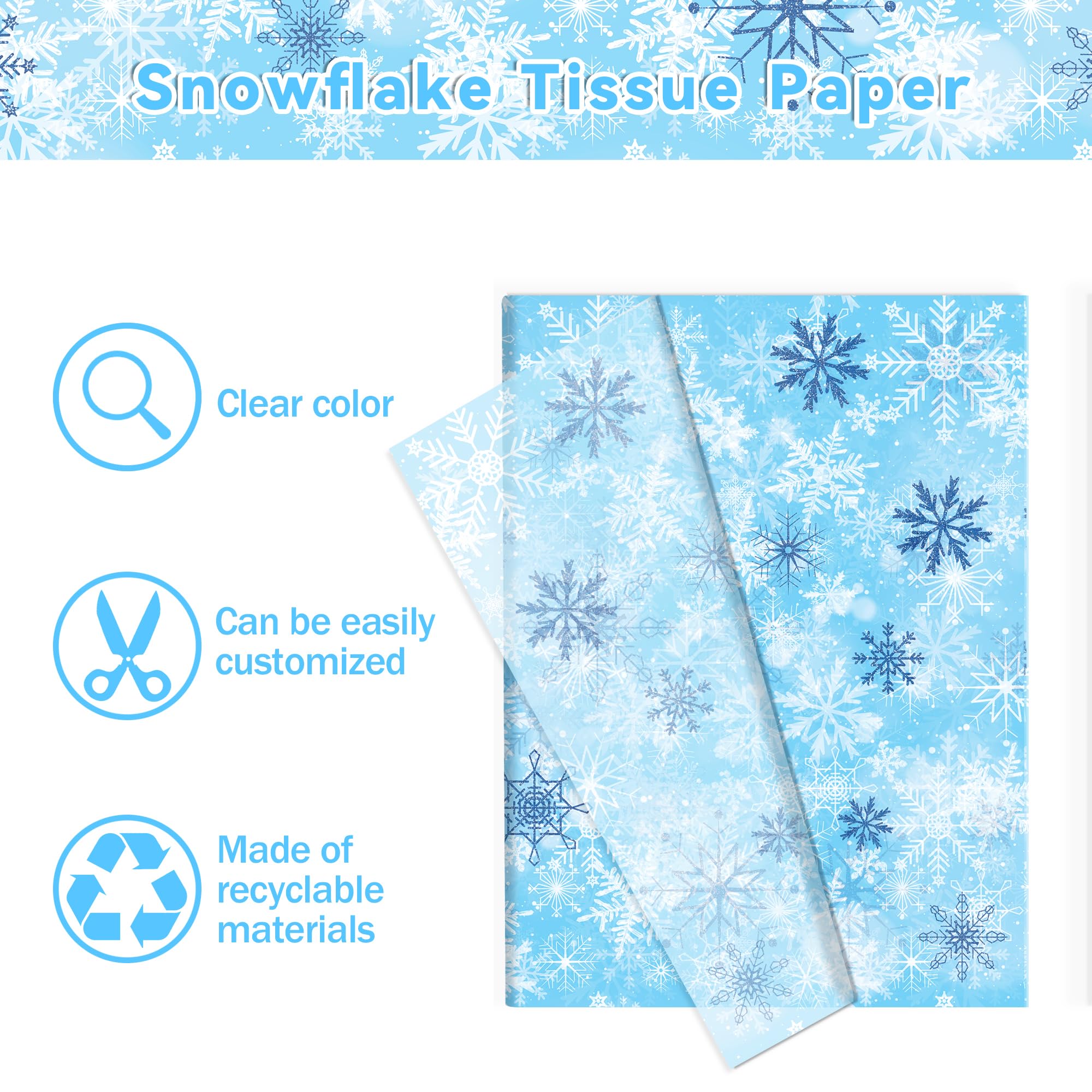 ブルーの雪の結晶模様薄葉紙 100枚、クリスマスギフト用キャンディ包装紙、手作りアート誕生日・祝祭包装紙、サイズ:13.8 x 19.7インチ