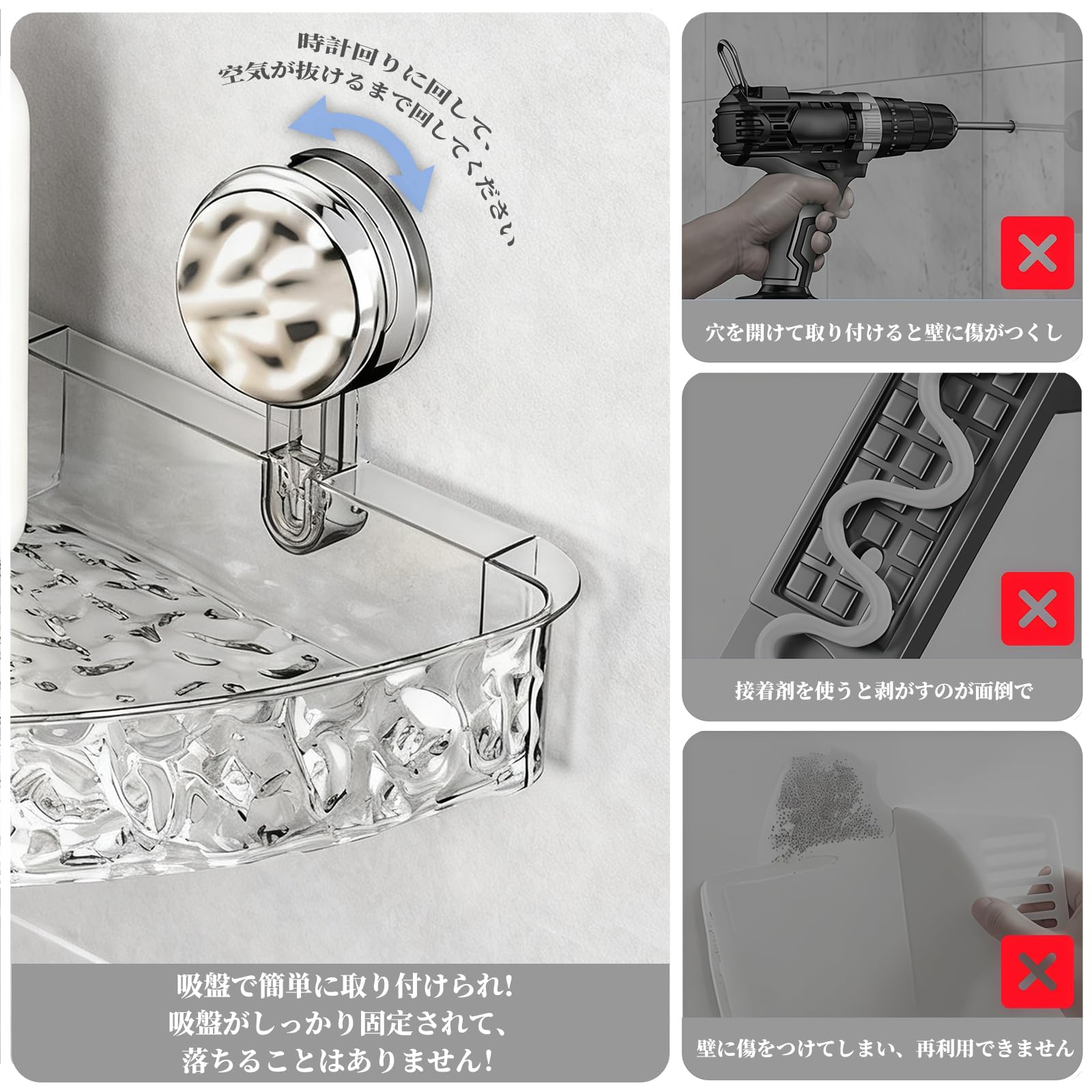 YipuVR 波型吸盤式収納ホルダー 浴室ラック 吸盤付きラック 三角バスルームラック 浴室用シャワースタンド 省スペース 超強力吸着技術 穴あけ不要 壁面損傷なし 簡単設置 大容量収納 シャンプー・コンディショナー用 浴室小物置き (三角形)