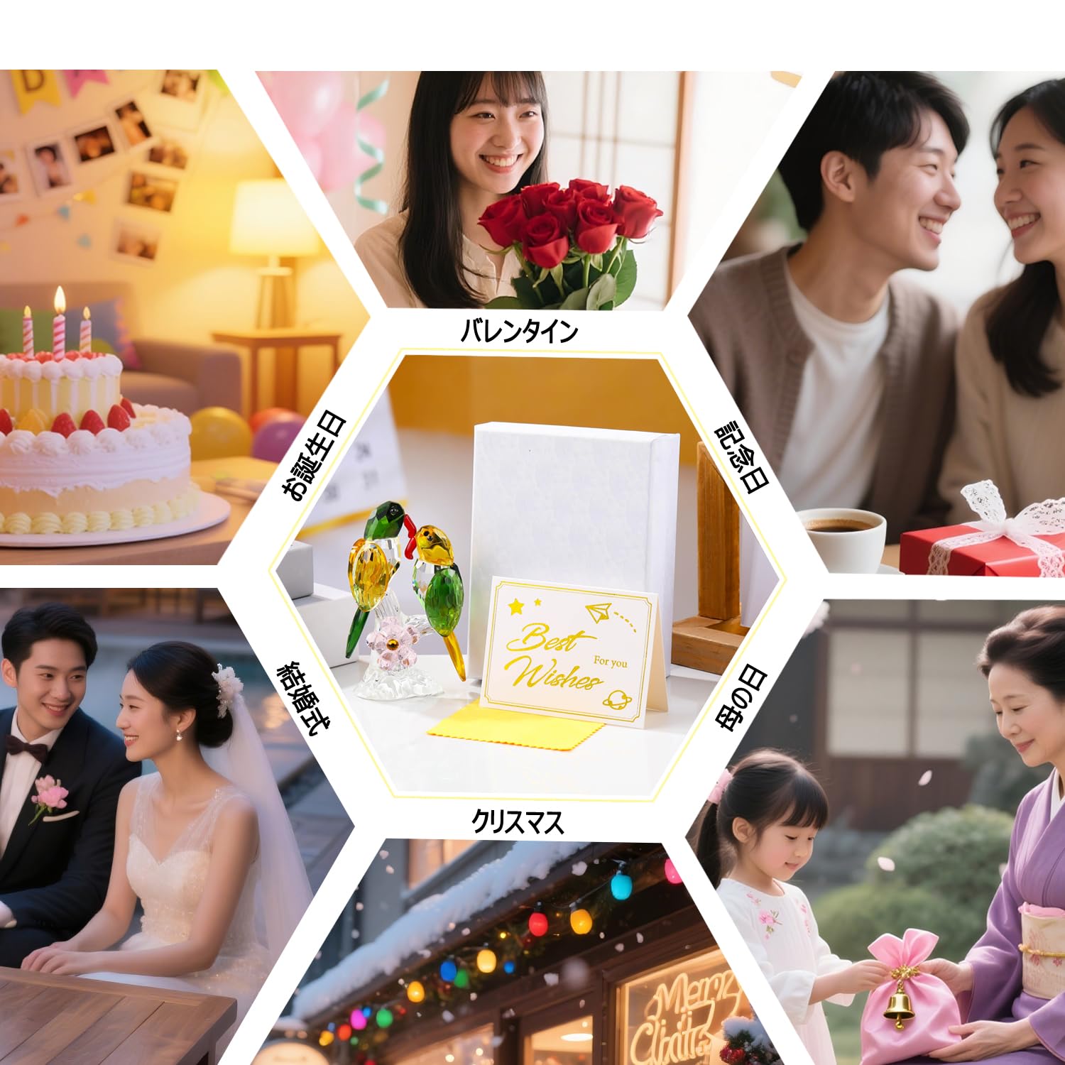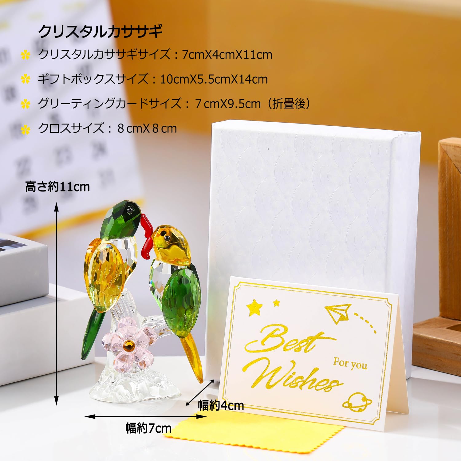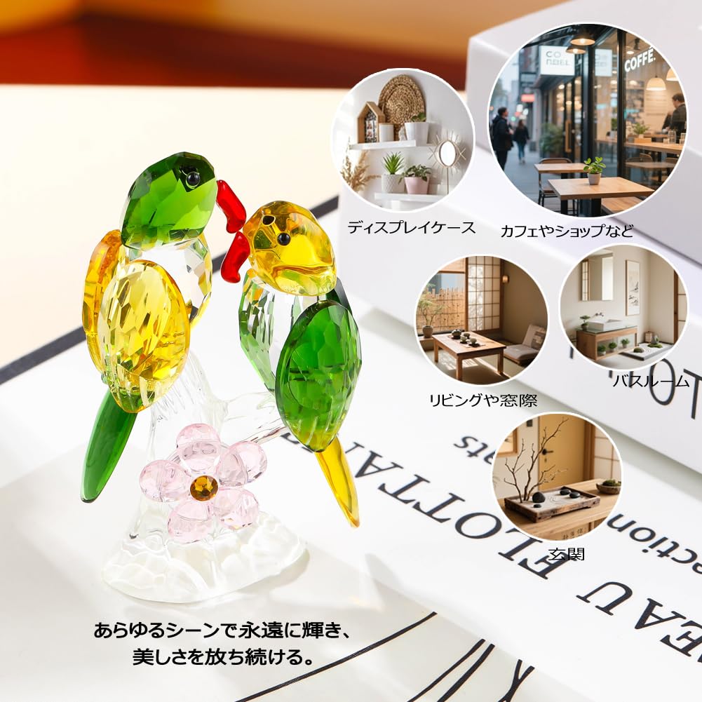 Pleadeliy 幸運を招くカササギ K9クリスタル つがいのカササギ置物 縁起物 夫婦円満・開運 結婚祝い/新築祝い/開店祝い ギフトボックス クロス カード付