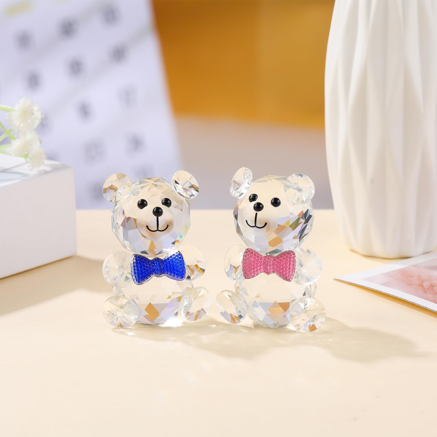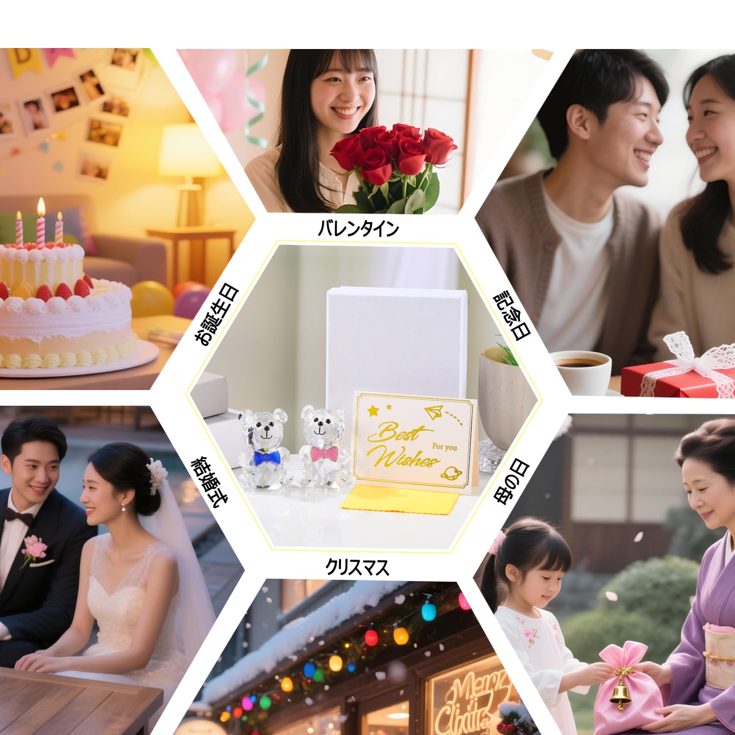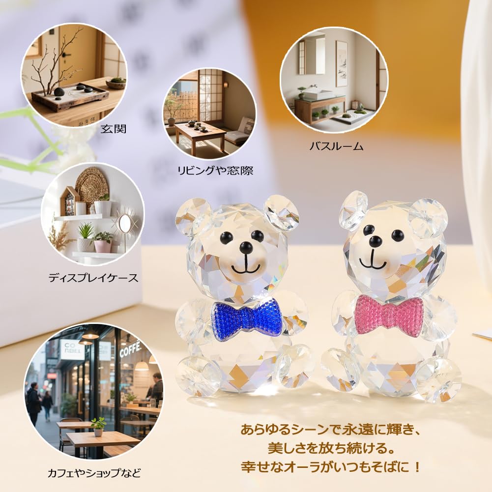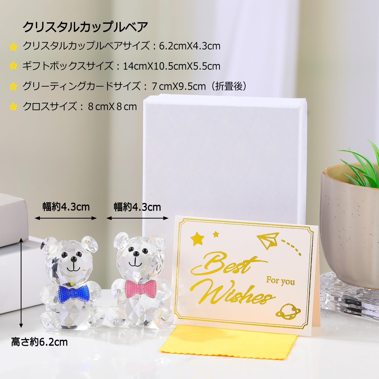 Pleadeliy K9クリスタルカップルベア 永遠のペアアイテム 開運 枯れない愛 結婚祝い 記念日 母の日 送別会 卒業祝い クリスマス 退職祝い ホワイトデー 女性への贈り物 ギフトボックス クロス カード付き