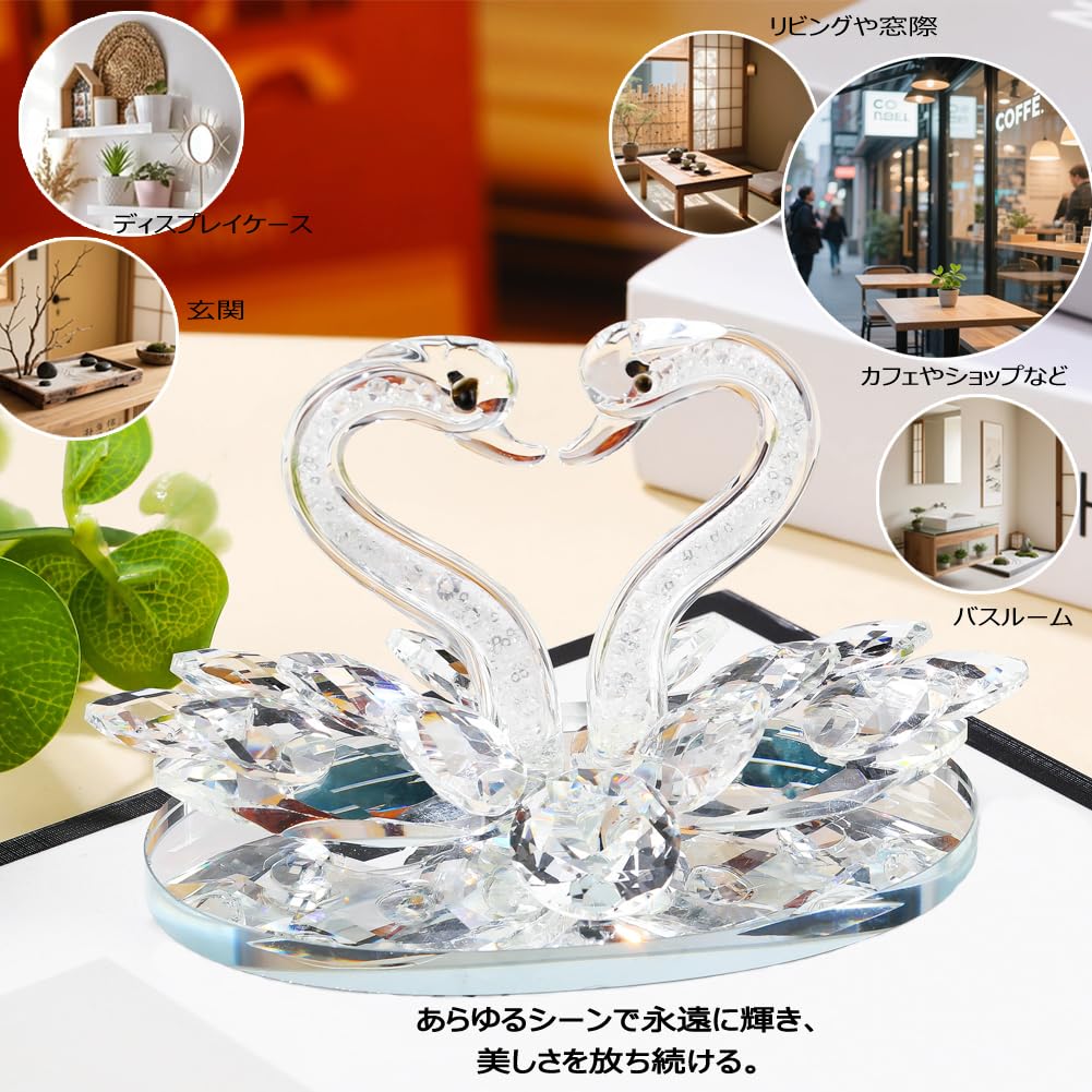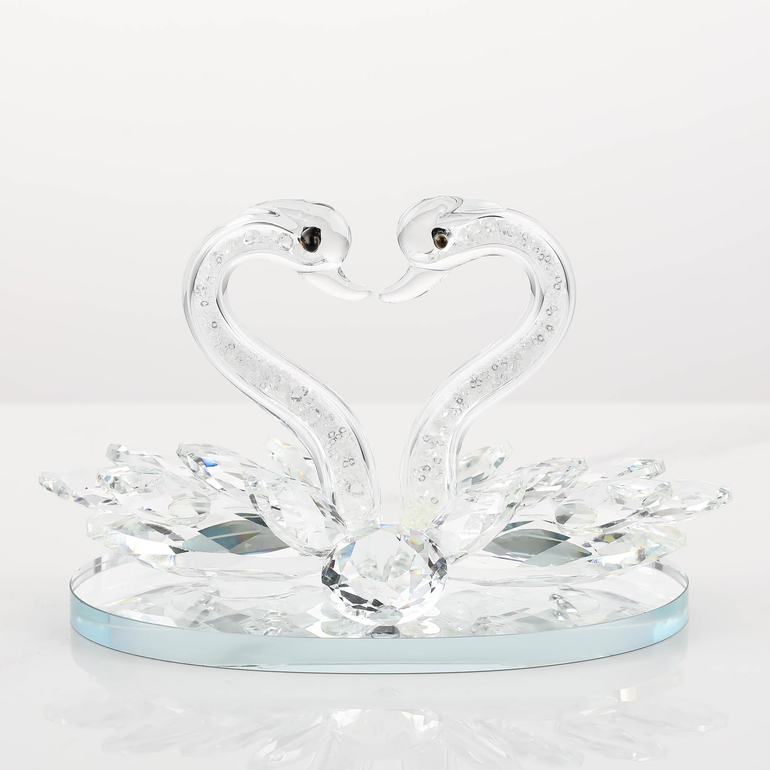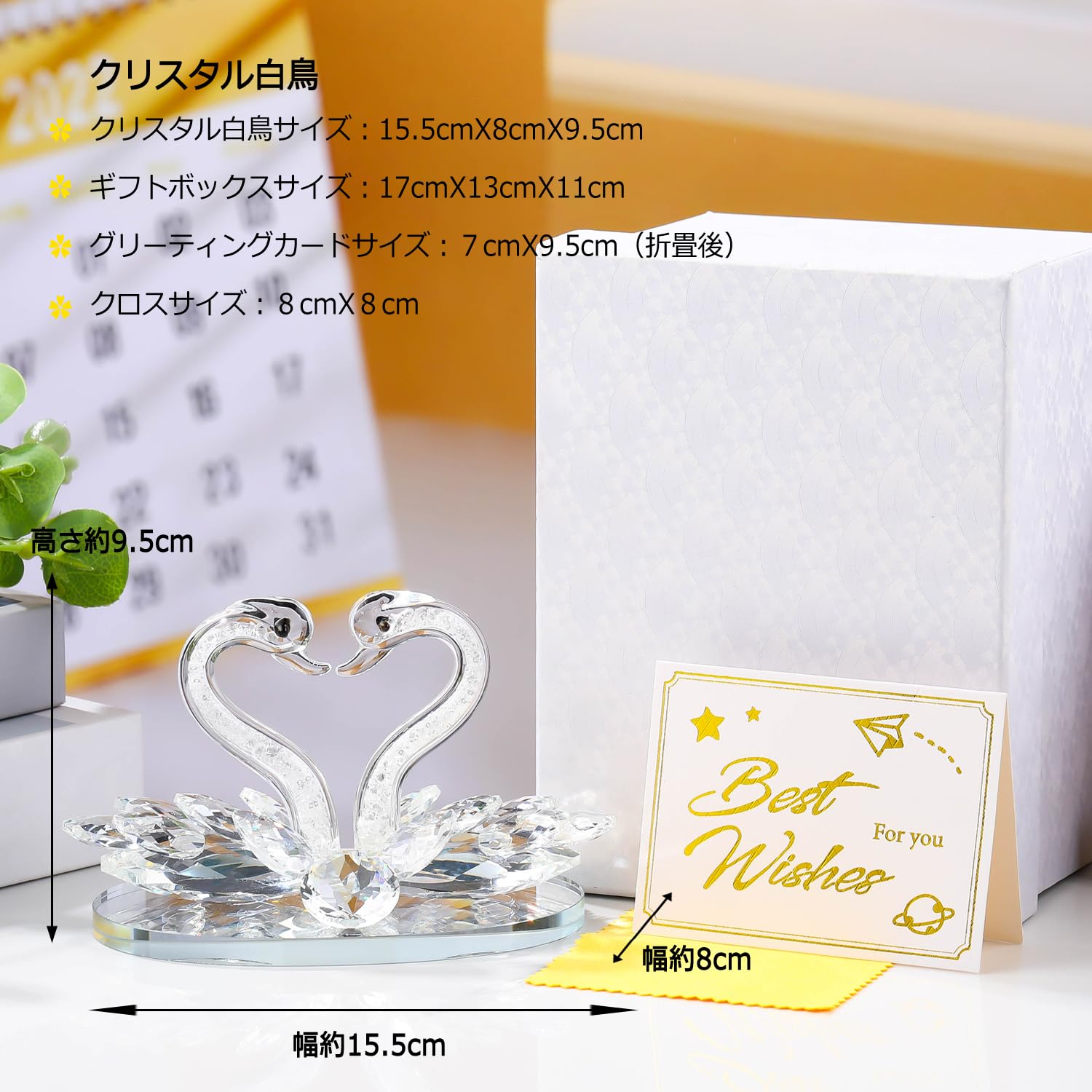 Pleadeliy 白鳥の絆 K9クリスタル 白鳥が紡ぐハートの置物 永遠の愛の証 バレンタイン・結婚祝いに ギフトボックス クロス カード付