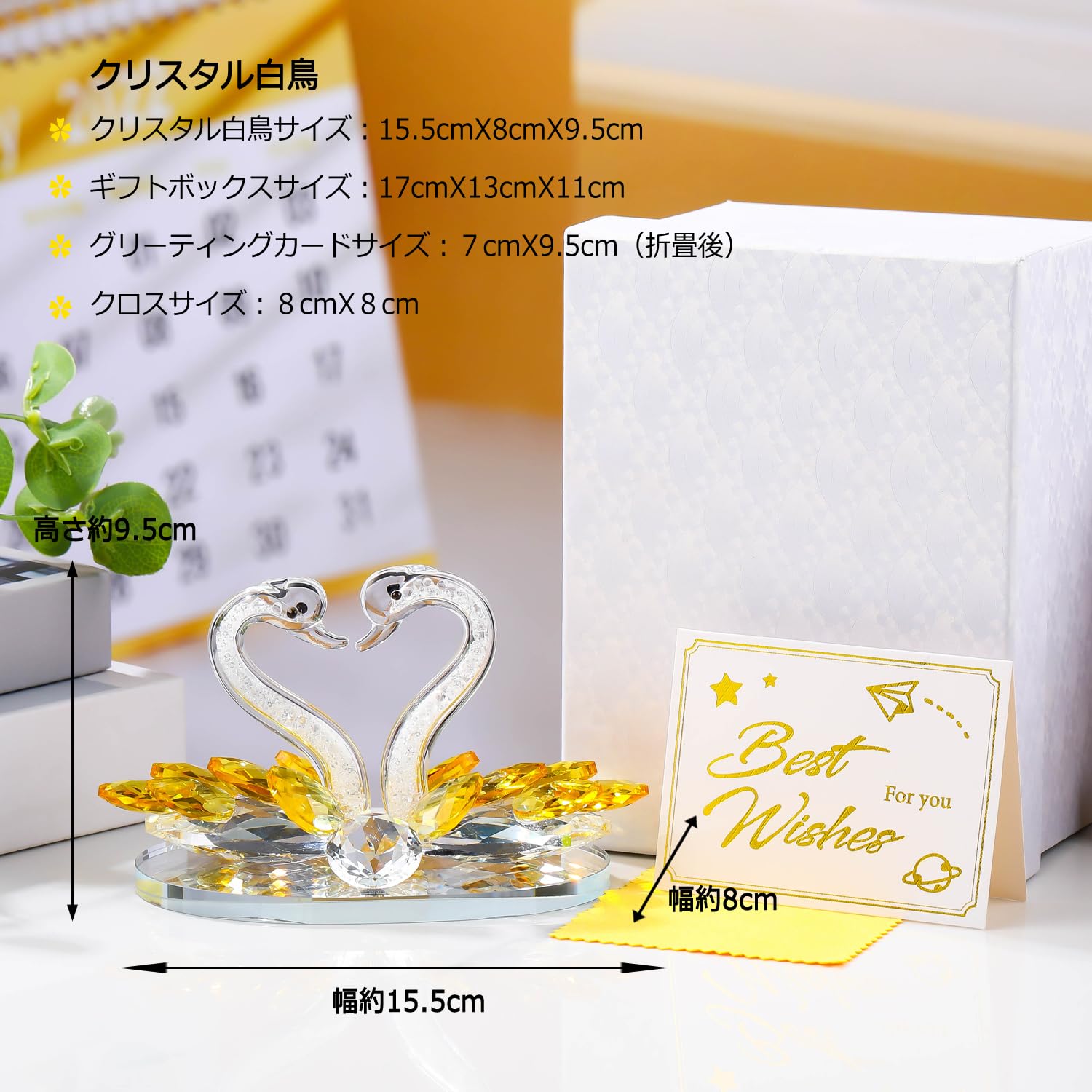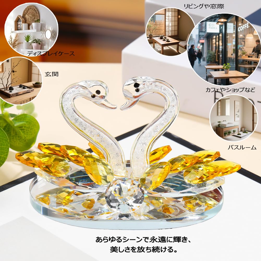 Pleadeliy 白鳥の絆 K9クリスタル 白鳥が紡ぐハートの置物 永遠の愛の証 バレンタイン・結婚祝いに ギフトボックス クロス カード付