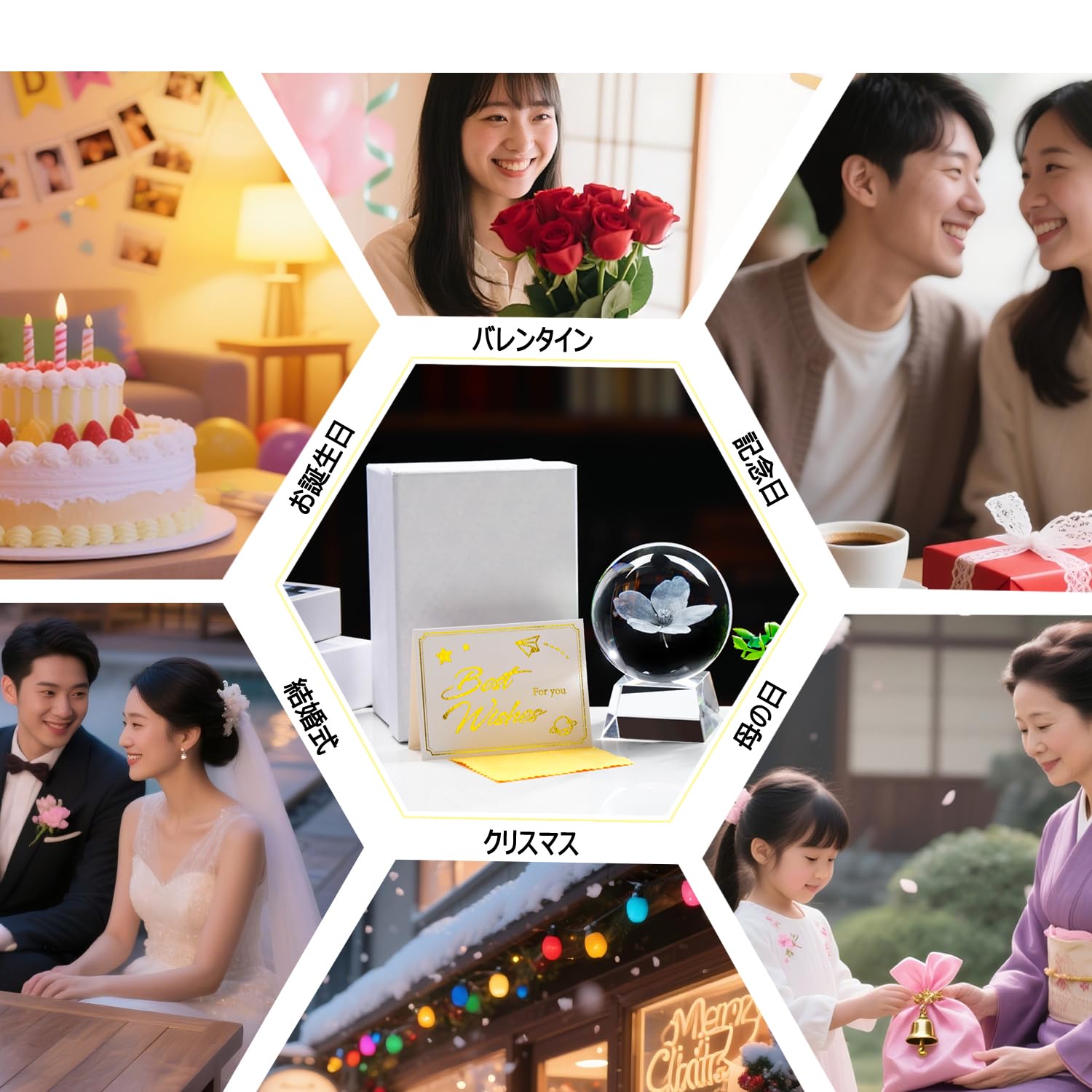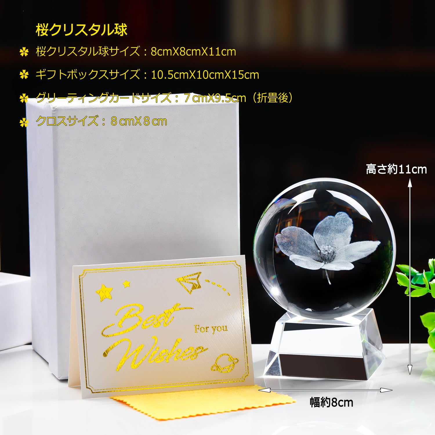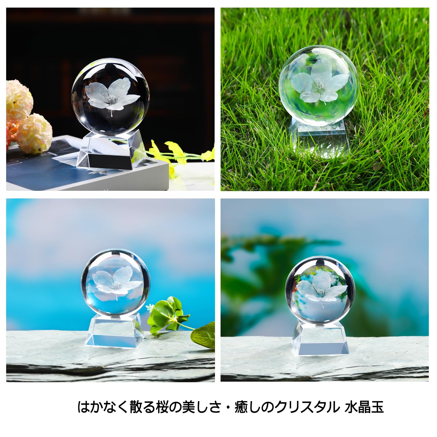 Pleadeliy 桜の物語 水晶玉 K9クリスタル 球 内部に精巧な桜彫刻 永遠の春の風景 インテリア・写真撮影・ギフトに ギフトボックス クロス カード付き