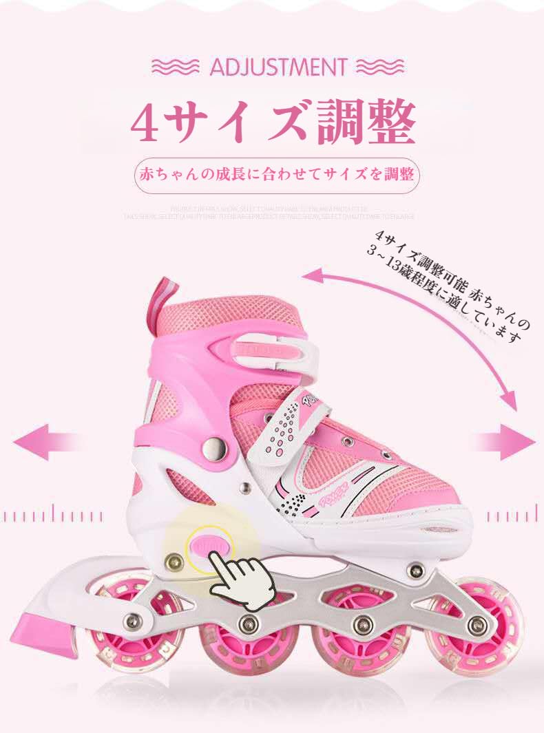 ローラースケート 子供用 インラインスケート rollerskate Inline skate 子供 ローラー スケート 初心者向け 大人用 4段階サイズ調整 ローラーシューズ 発光 静音 通気 安定 フラッシュホイール アウトドア スポーツ プレゼント