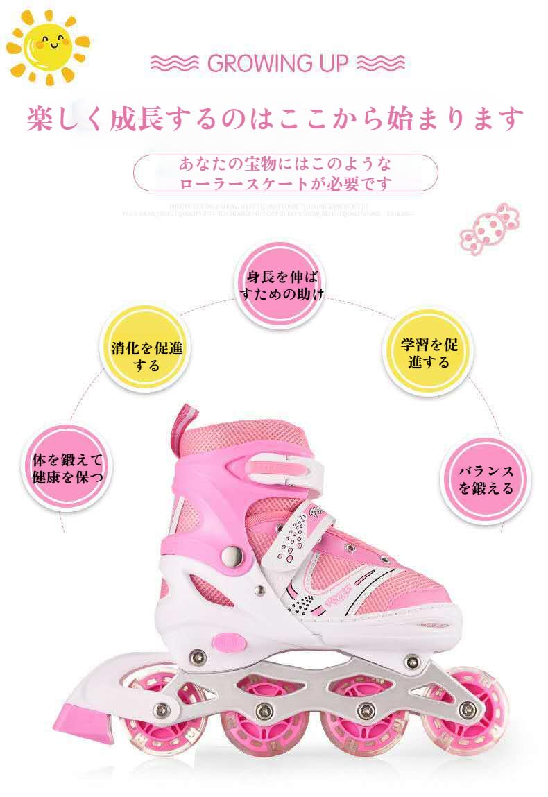 【商品名】 スケート ●安定性の良い4輪設計 ●成長に合わせてサイズ調節可能 ●スパークリングホイールが楽しさをプラス 【製品詳細】 1 スケートシューズは四輪輪式で 安定性と制御性に優れ PVC素材は耐摩耗性と耐久性に優れ 靴本体のメッシュデインは通気性がよく快適で サイズ調節が可能で さまざまな足の形の子供に適しています 2 調節可能なレースとルで快適な履き心地を確保し つま先には安全性を高めるバンパーが付いており ホイールには遊び心と安全性を高める点滅装置が付いています 3 スケート ローラースケートなどのアウトドアに適しており 素材は耐久性と防性があり 滑らかなローリングで 子供のや娯楽のニーズを満たしています 4 ジムや広場など 平らで滑らかな屋内外の公園などでの使用に適している 5 主にアウトドアが好きな6~14歳のの子グループに向け 子供の成長過程におけると娯楽のニーズを満たす ※※※ 私たちのチームは、年中無休でご質問にお答えしています ※※※