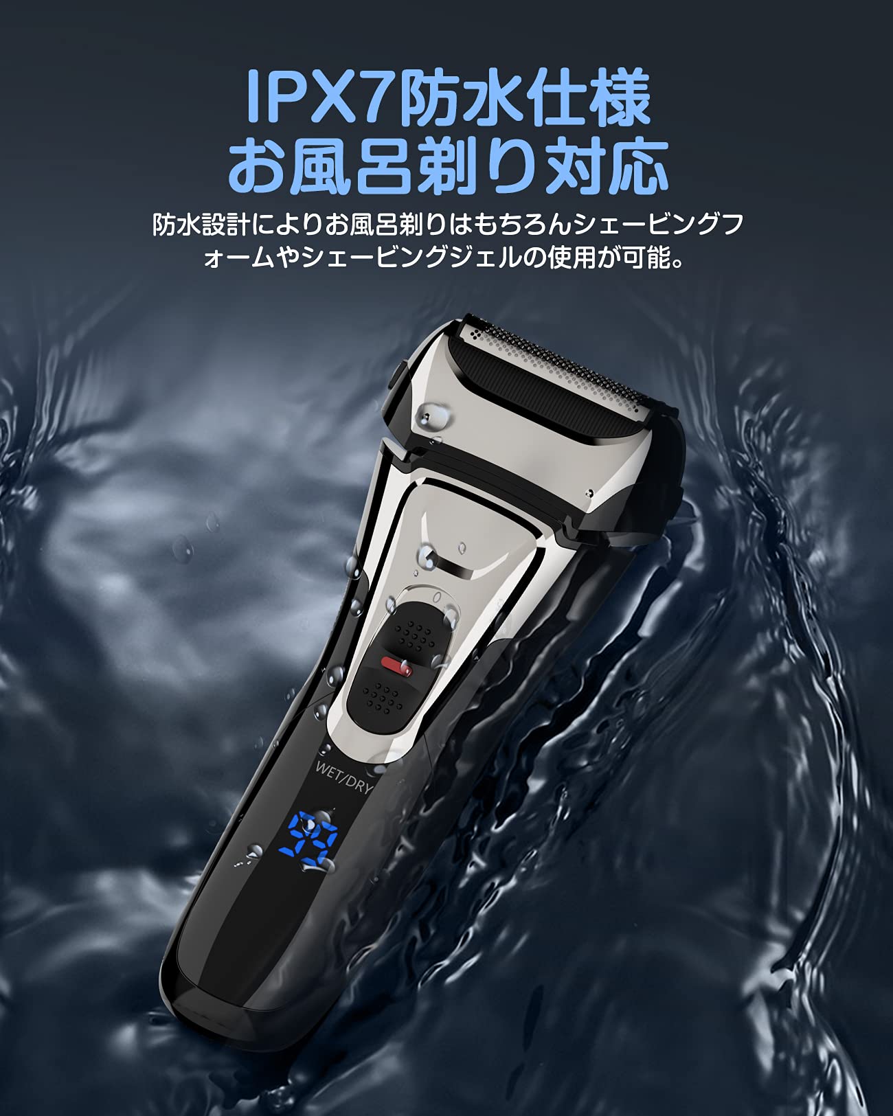 シェーバー メンズ 髭剃り 電動 電気シェーバー 往復式 ひげそり 3枚刃 メンズシェーバー 電気カミソリ ウェット&ドライ お風呂剃り可 IPX7防水 LEDディスプレイ トリマー付き 替刃付き 軽量 持ち運び便利 日本語説明書付き
