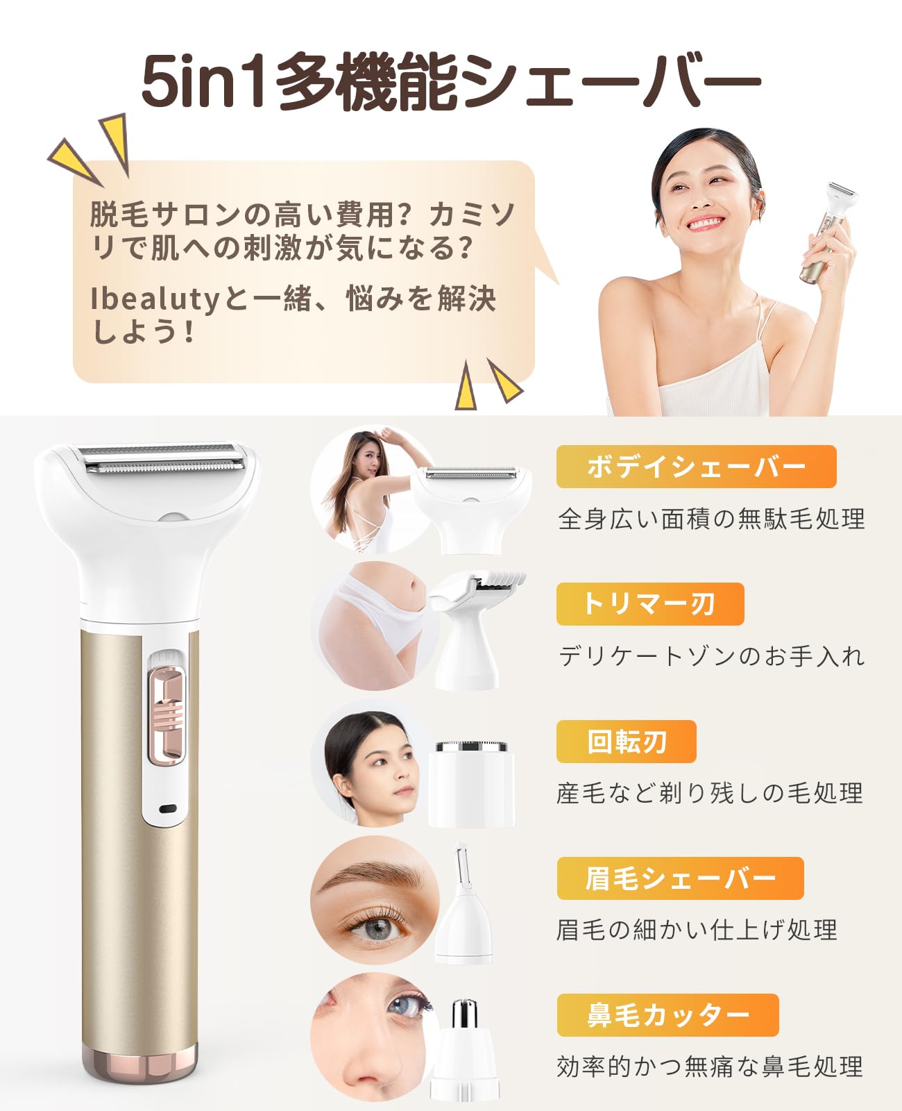 レディースシェーバー vioシェーバー 女性 電気シェーバー 2025登場 鼻毛カッター 眉毛シェーバー 多機能 ムダ毛処理 顔 脇 腕 ビキニライン 水洗い可能 USB充電式 日本語説明書付き プレゼント (Gold)