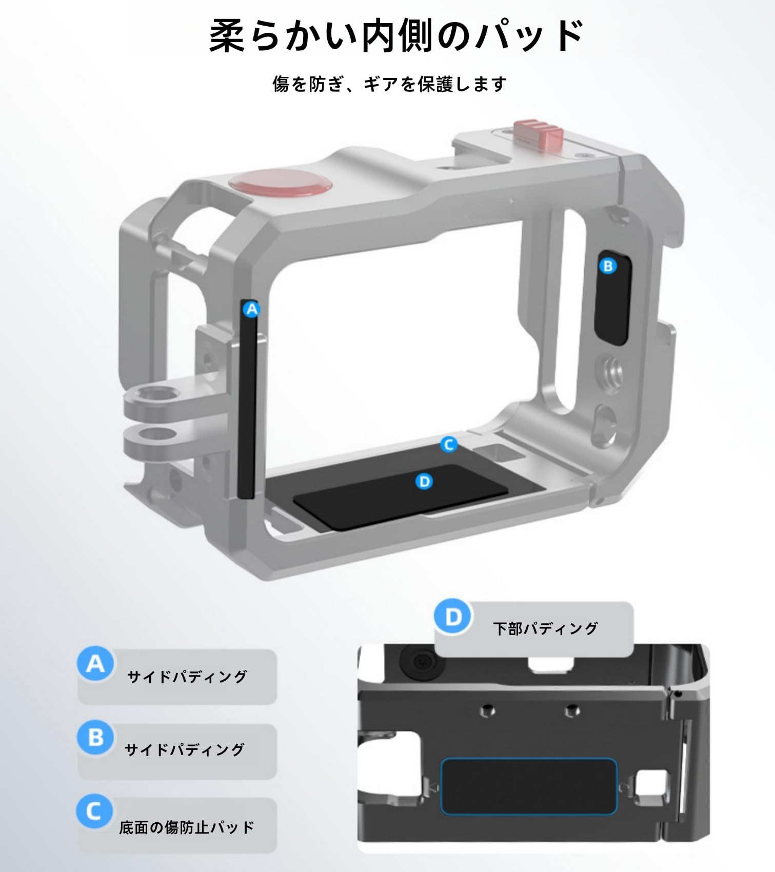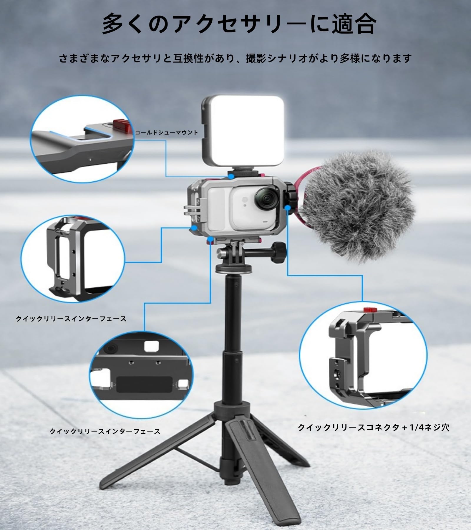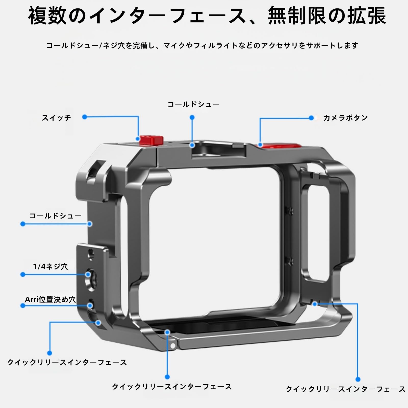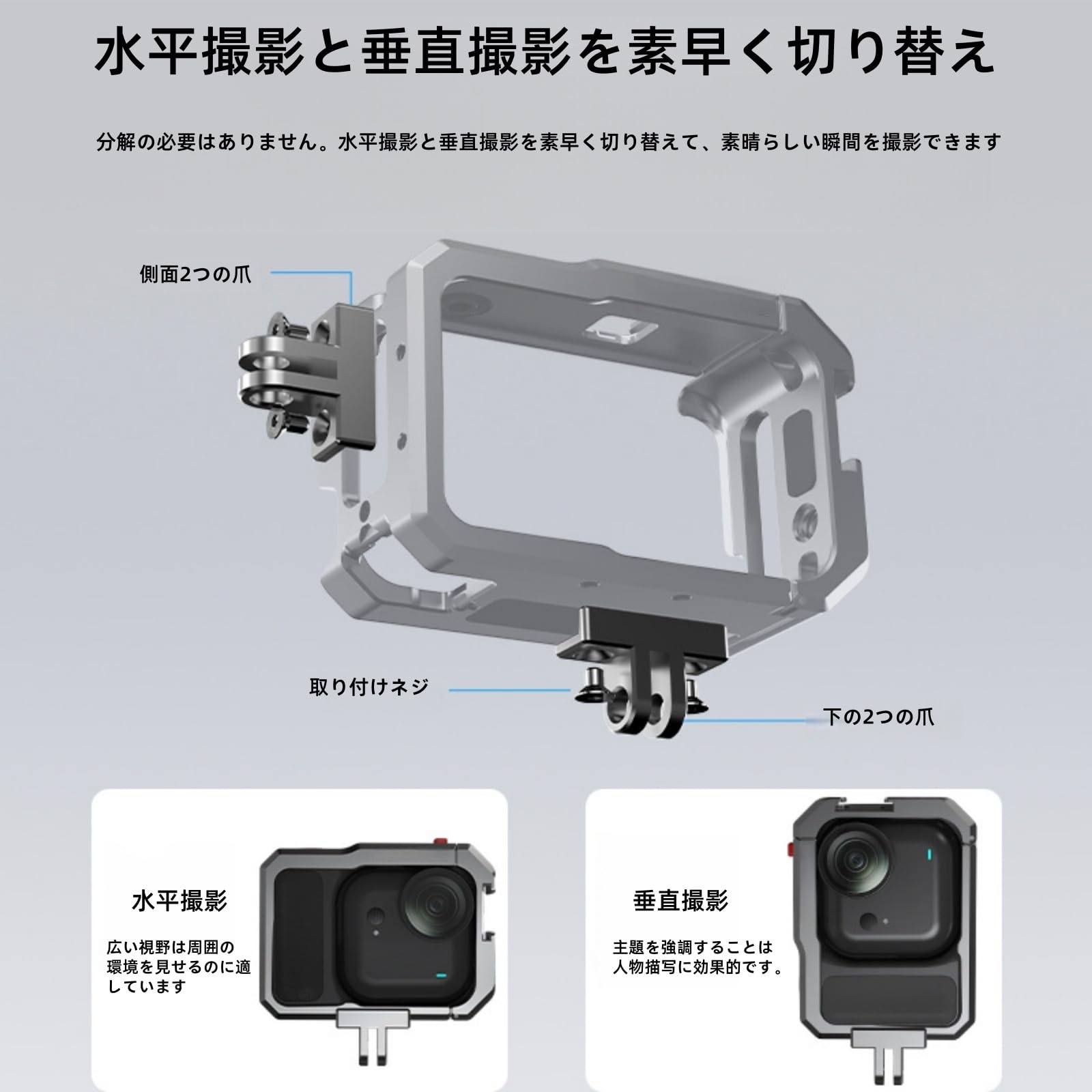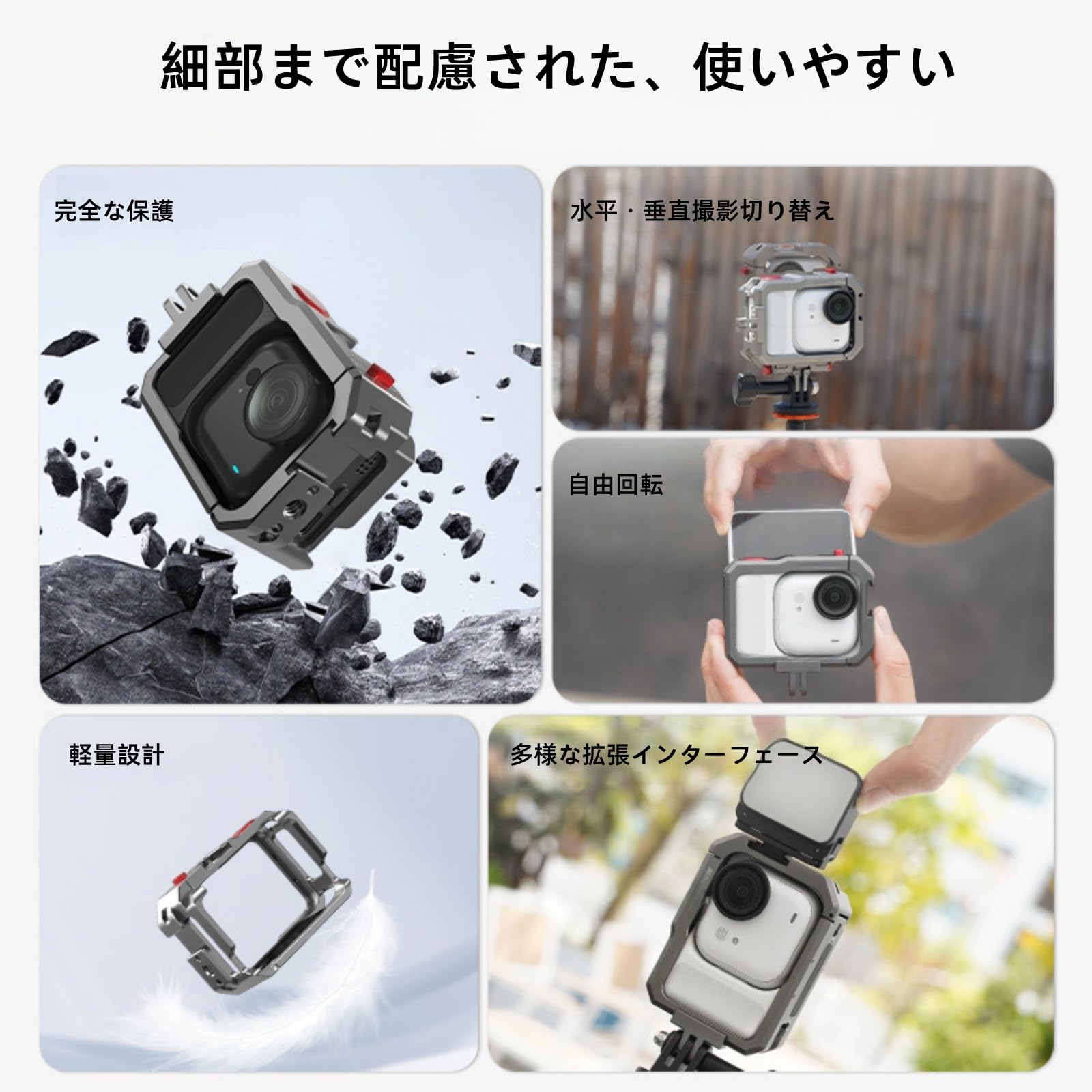 Insta360 X5 対応 カメラ 拡張ケージ アルミ合金製ケージ+シリコン製レンズプロテクター 1/4のネジ穴 デュアル インスタ360 X5用保護ケース アクセサリー セット