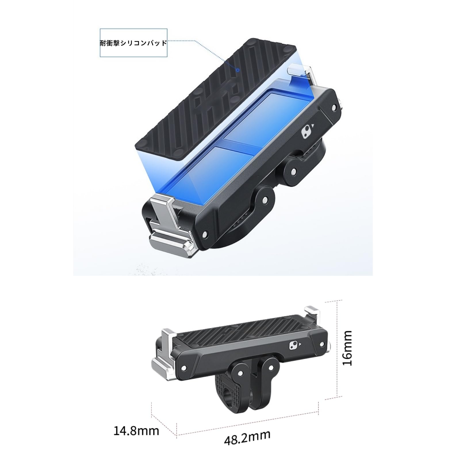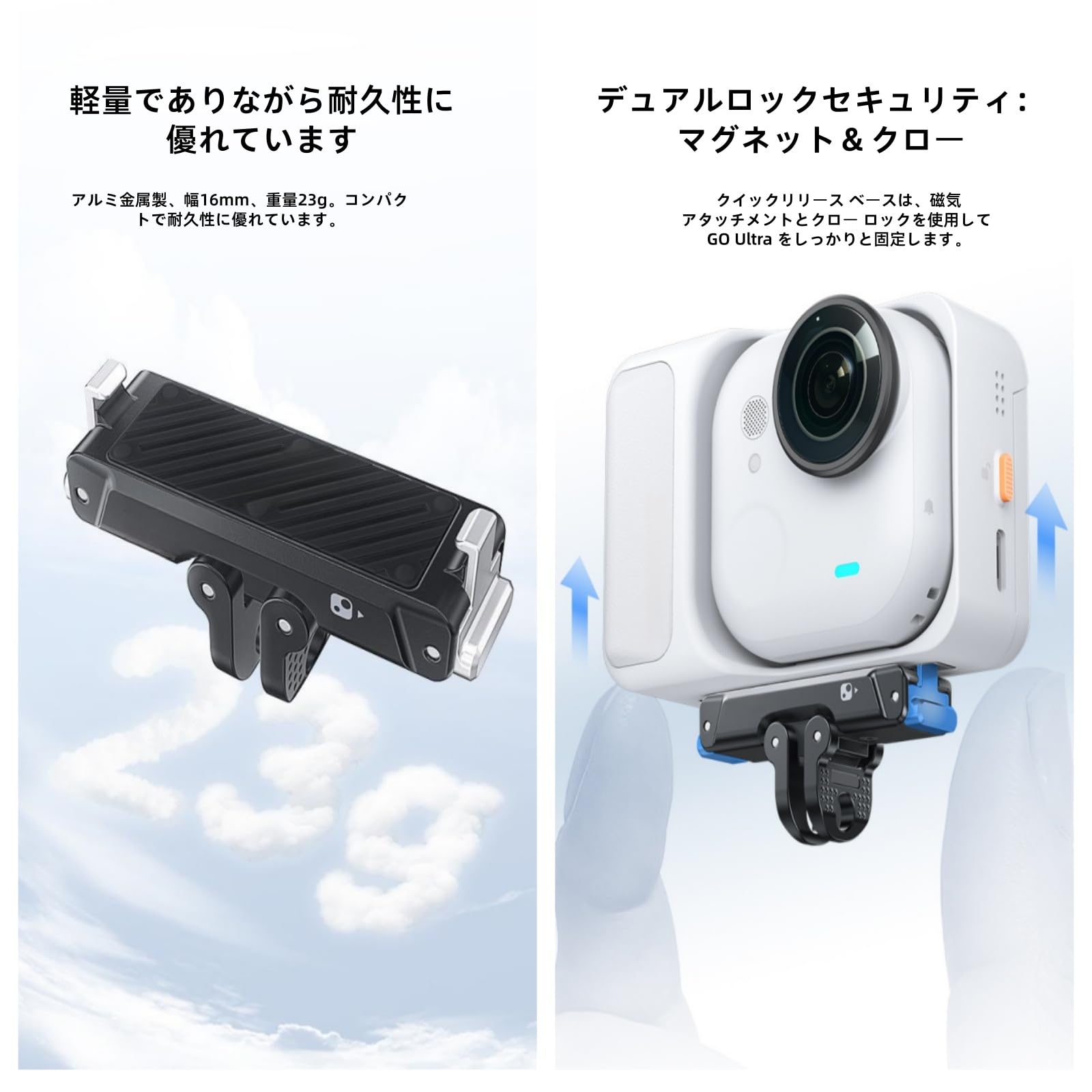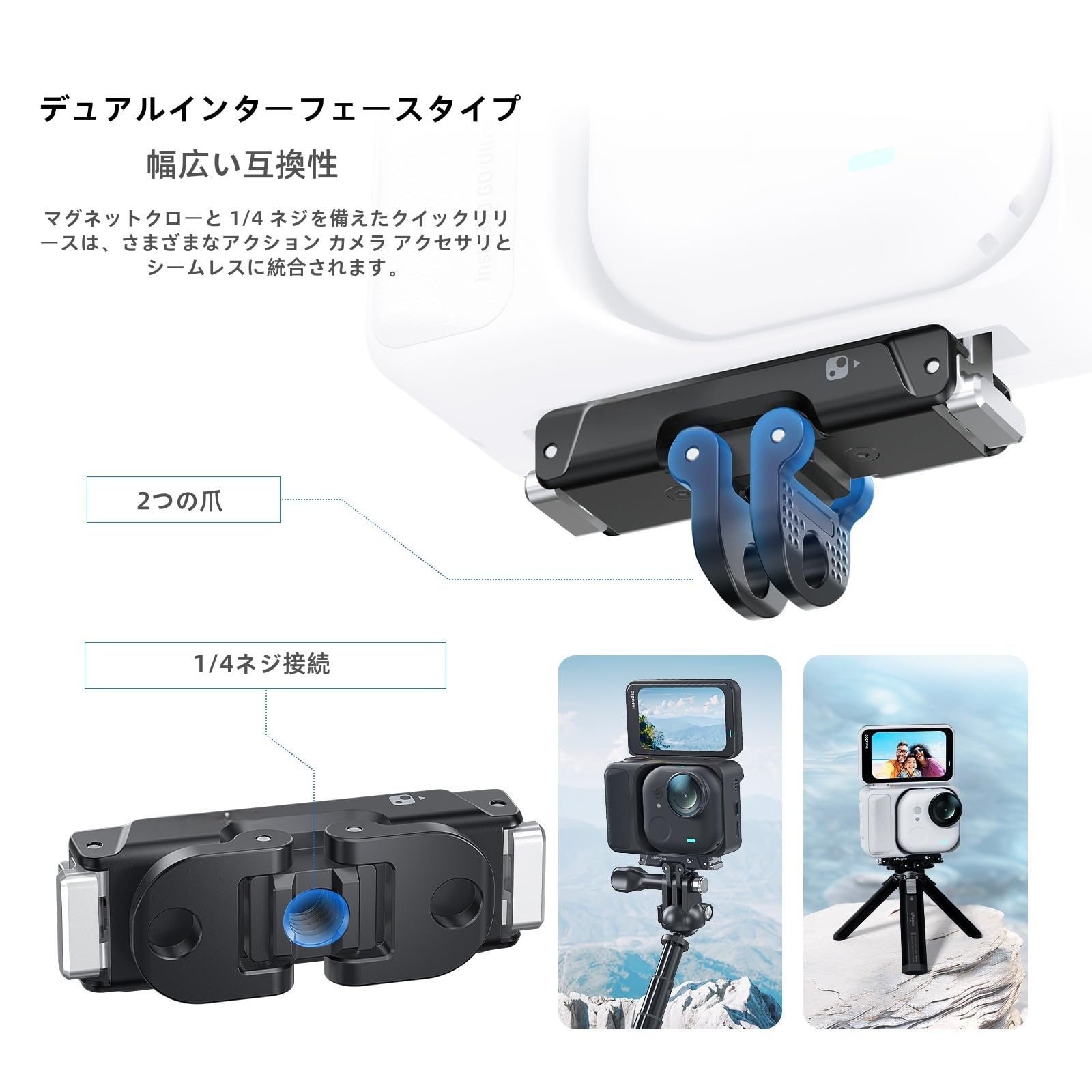 Insta360 Go Ultra カメラ 対応 磁気クイックリリースマウント アルミ金属製 1/4ネジ 折りたたみ マグネット拡張マウント 防振シリコンパッド 衝撃吸収、滑り止め 三脚・自撮り棒対応