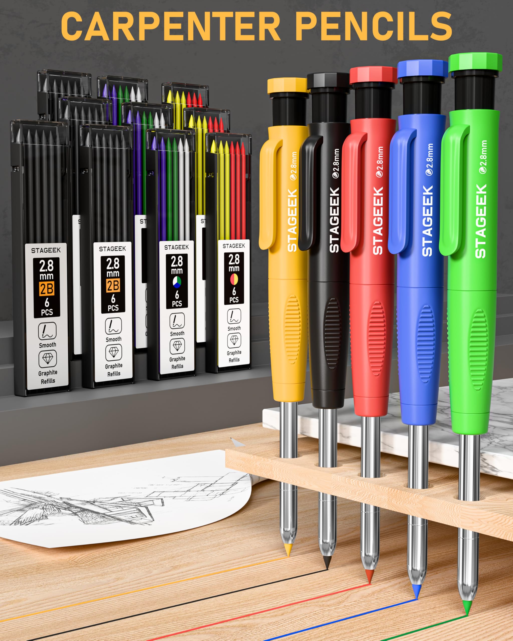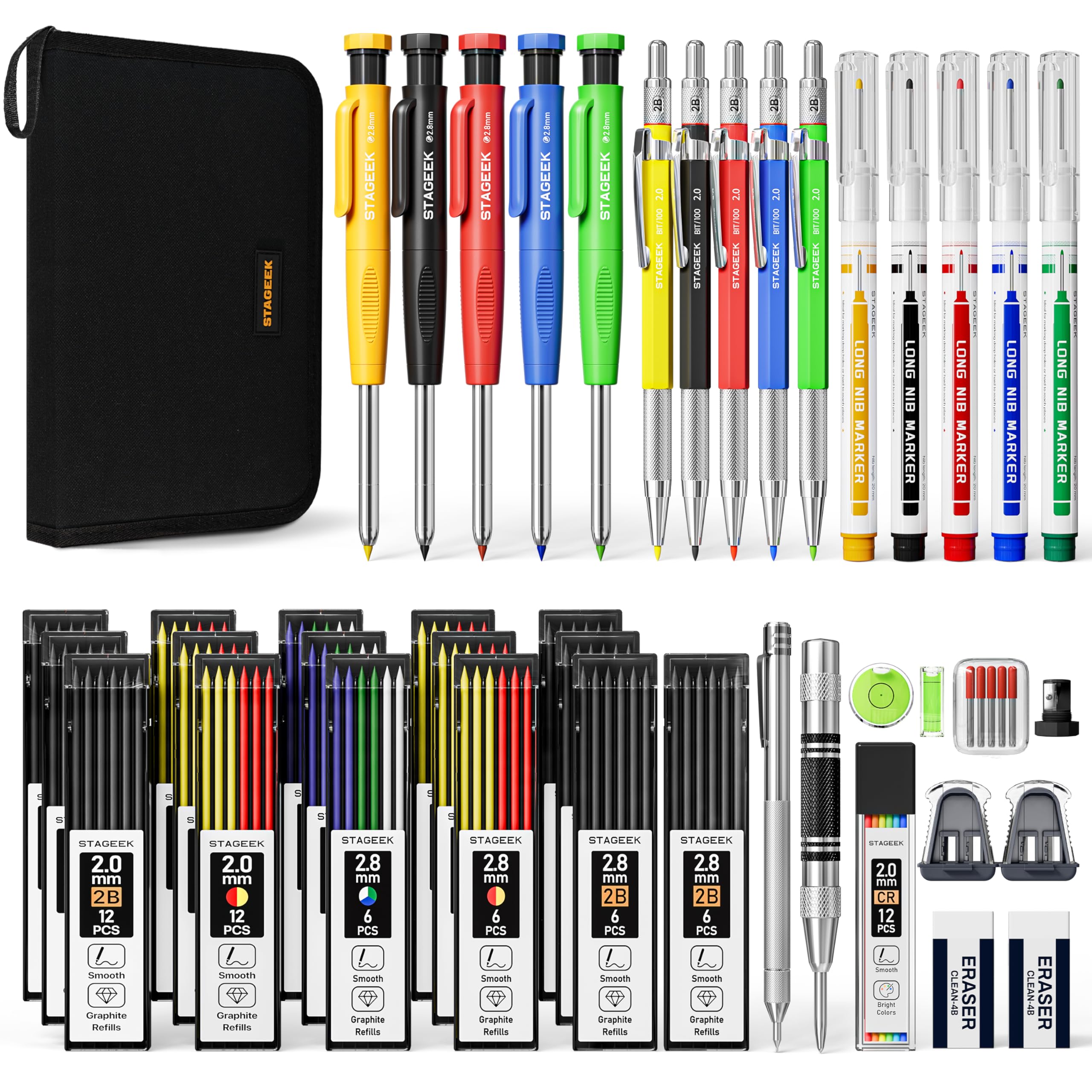 STAGEEK 建築用シャーペン 43点セット 2.8mm大工用シャープペンシル 2.0mm建築用シャープペン ケガキペン センターポンチ マーカー シャー芯(赤、黄色、黒、青、緑、白)