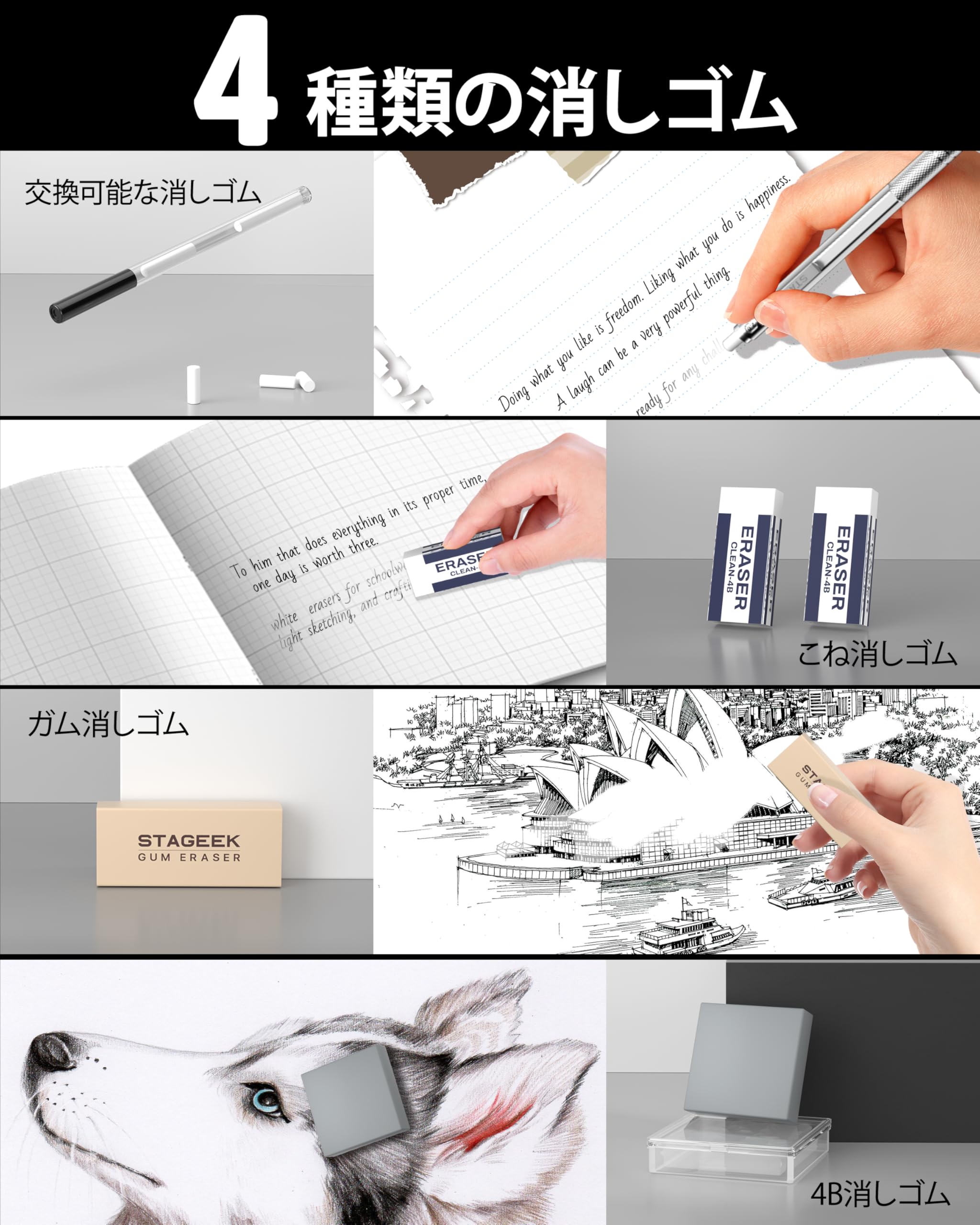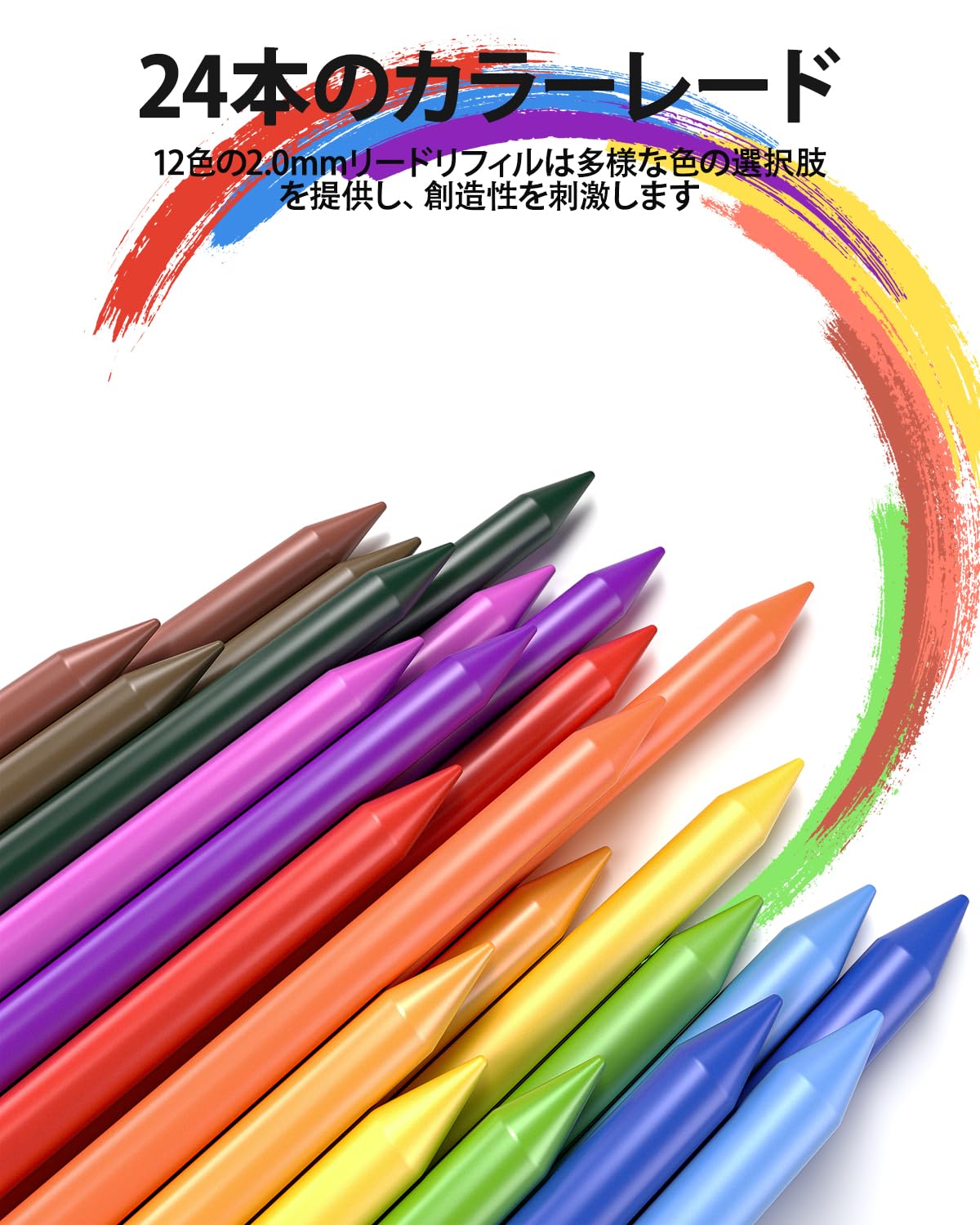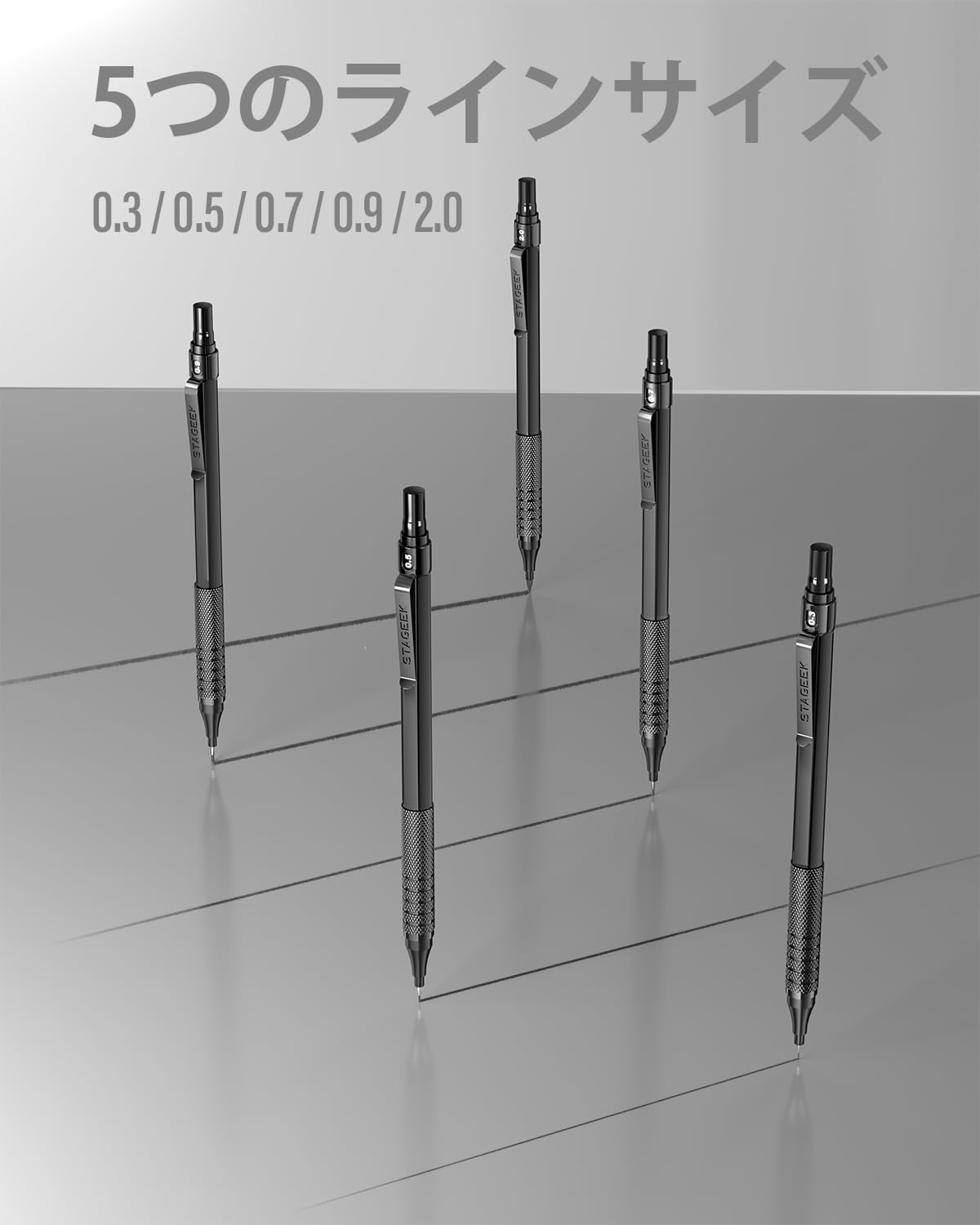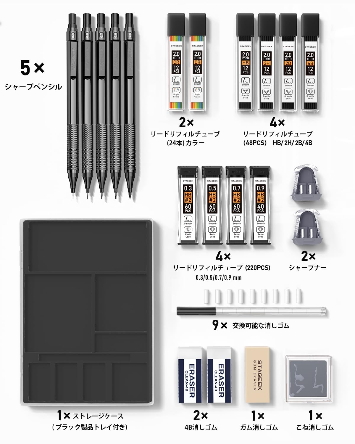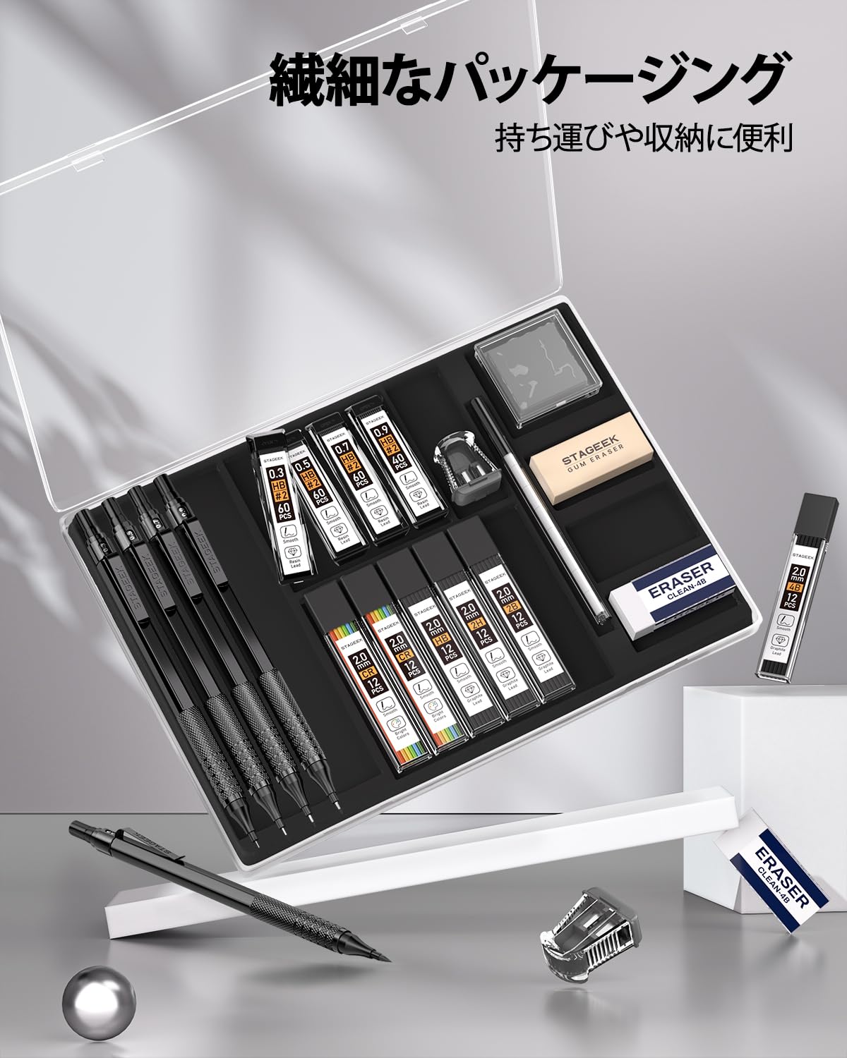 STAGEEK 21本入りメタルシャープペンシルセット、アート鉛筆 0.3、0.5、0.7、0.9、2mmのリードホルダー(HB、2H、2B、4B、カラー)10本のグラファイト芯詰め替えチューブとケース付き消しゴム、製図、描画、スケッチ用