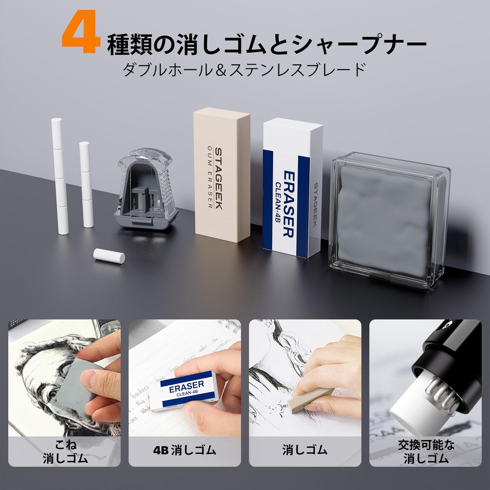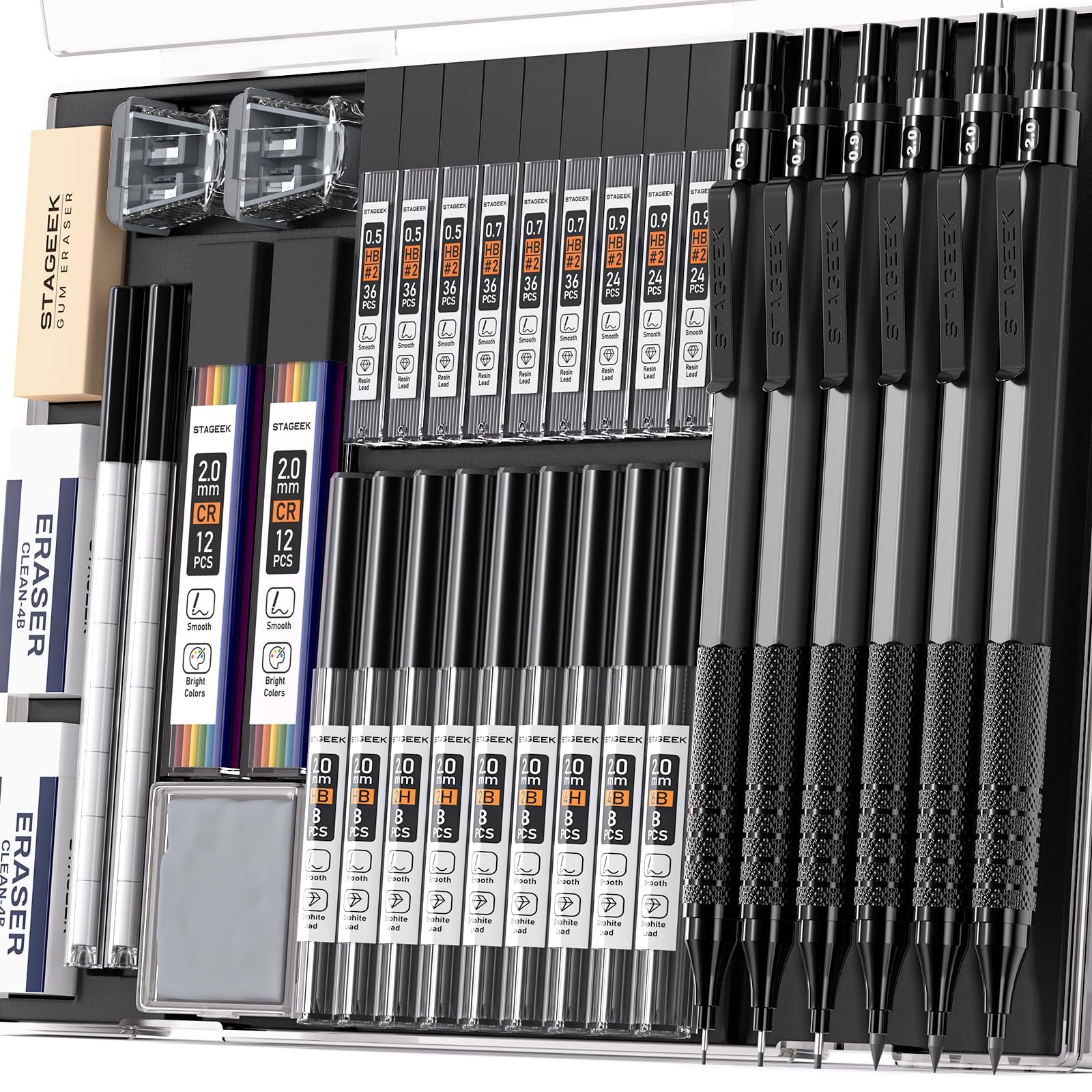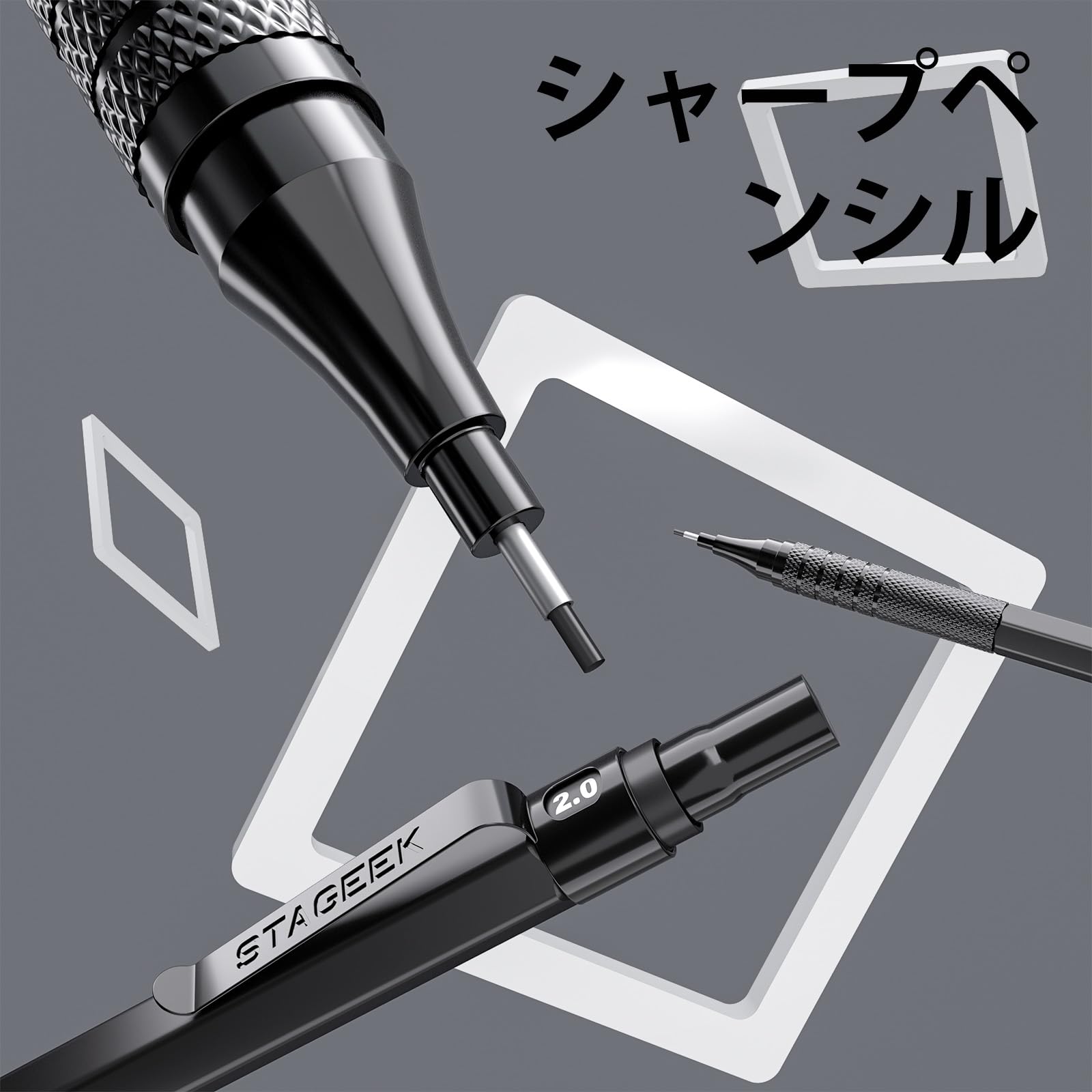 STAGEEK 21本入りメタルシャープペンシルセット、アート鉛筆 0.3、0.5、0.7、0.9、2mmのリードホルダー(HB、2H、2B、4B、カラー)10本のグラファイト芯詰め替えチューブとケース付き消しゴム、製図、描画、スケッチ用