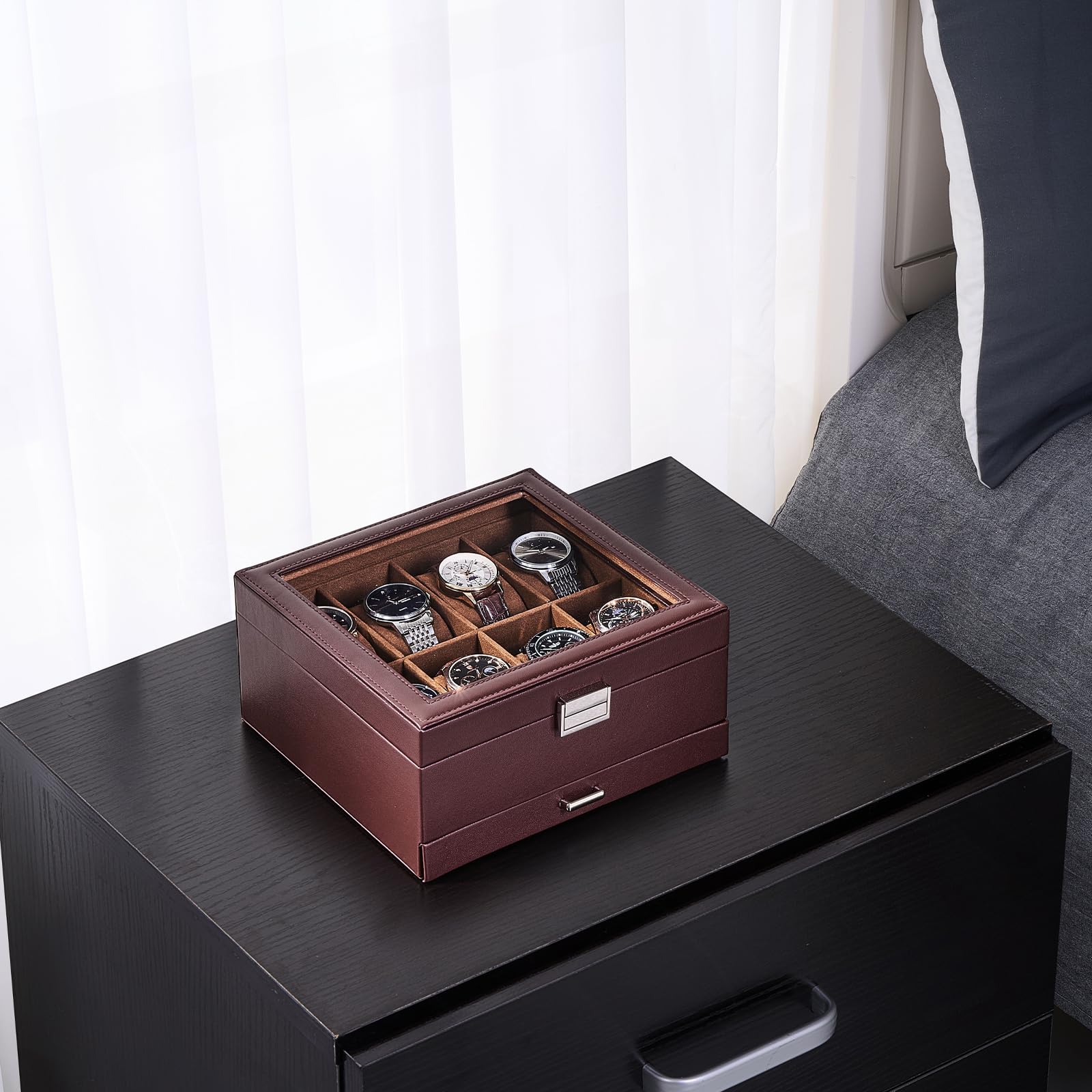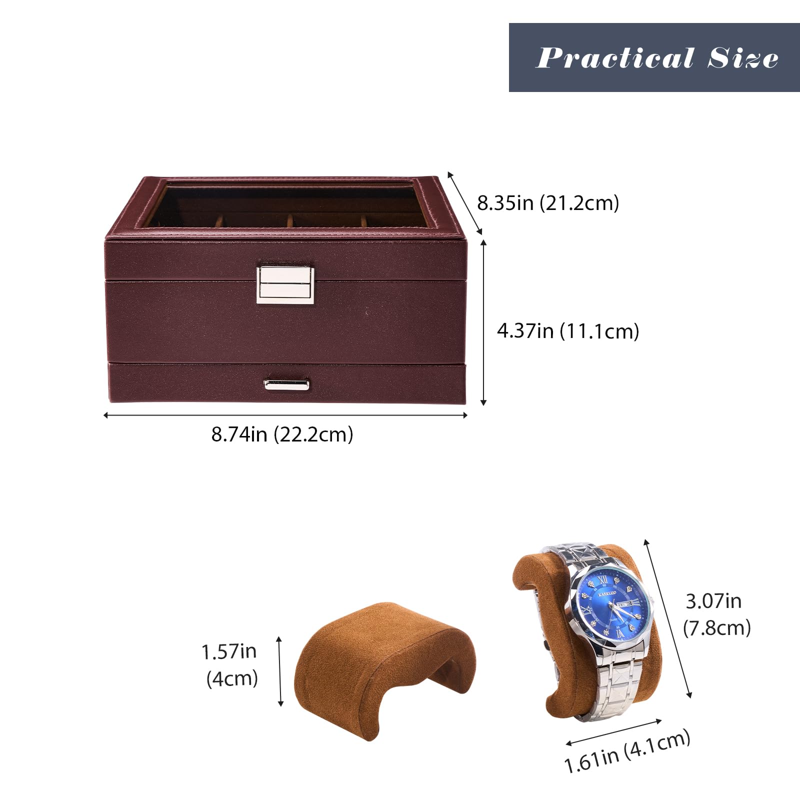 ProCase 腕時計ケース PU製 8本 2段式 ウオッチボックス 男女兼用 収納ボックス アクセサリーケース アクセサリー 収納 ディスプレイ 小物整理 誕生日 記念日プレゼント -エスプレッソ