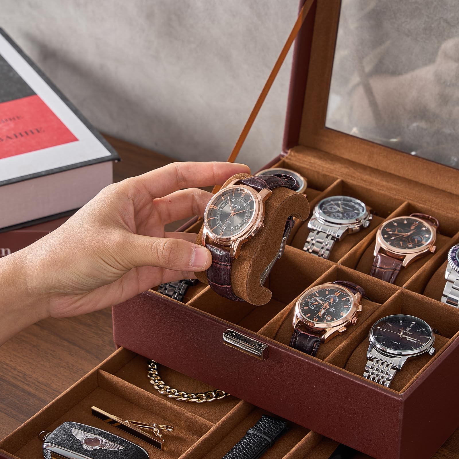 Vlando 腕時計ケース PU製 男性 収納ボックス アクセサリーケース アクセサリー 収納 誕生日プレゼント