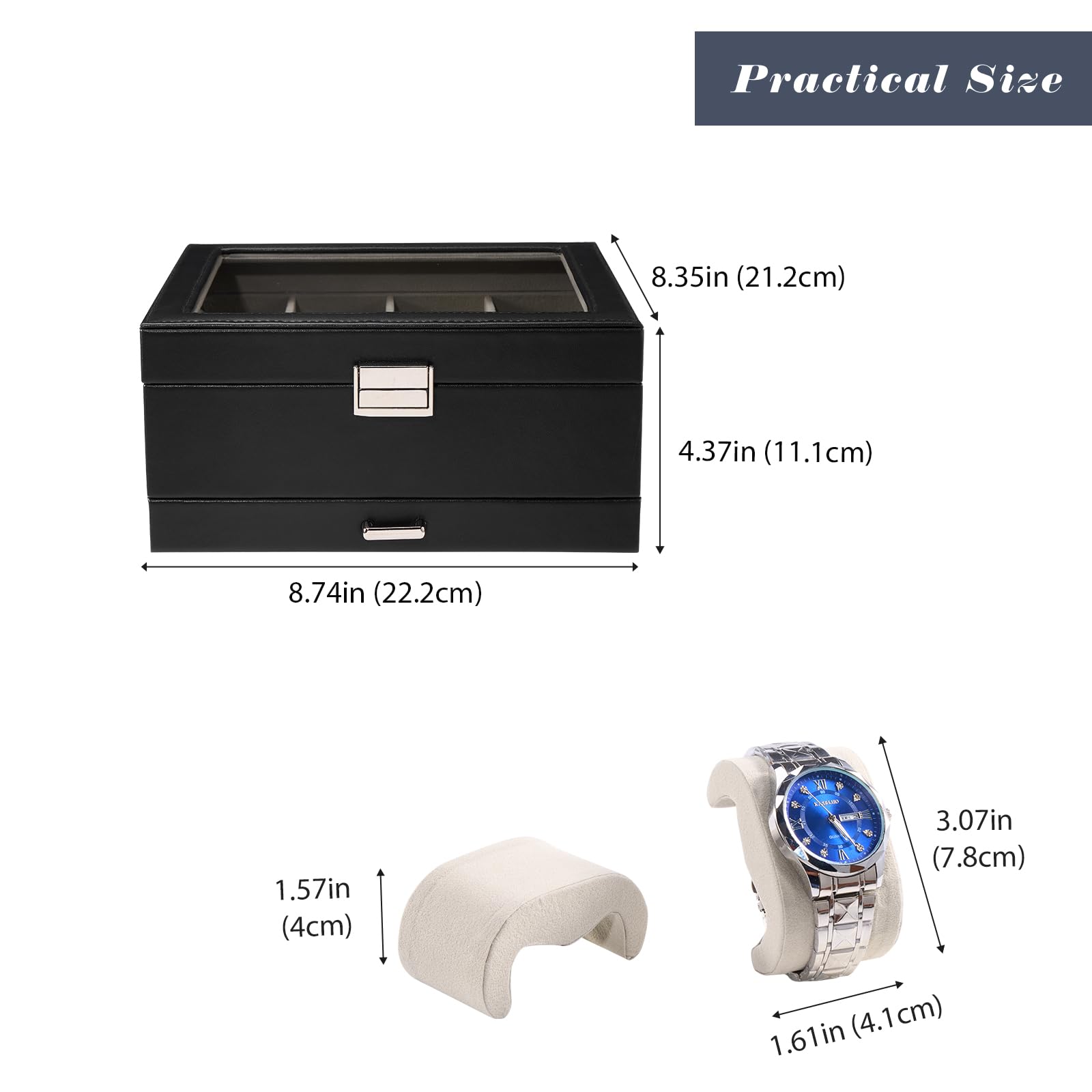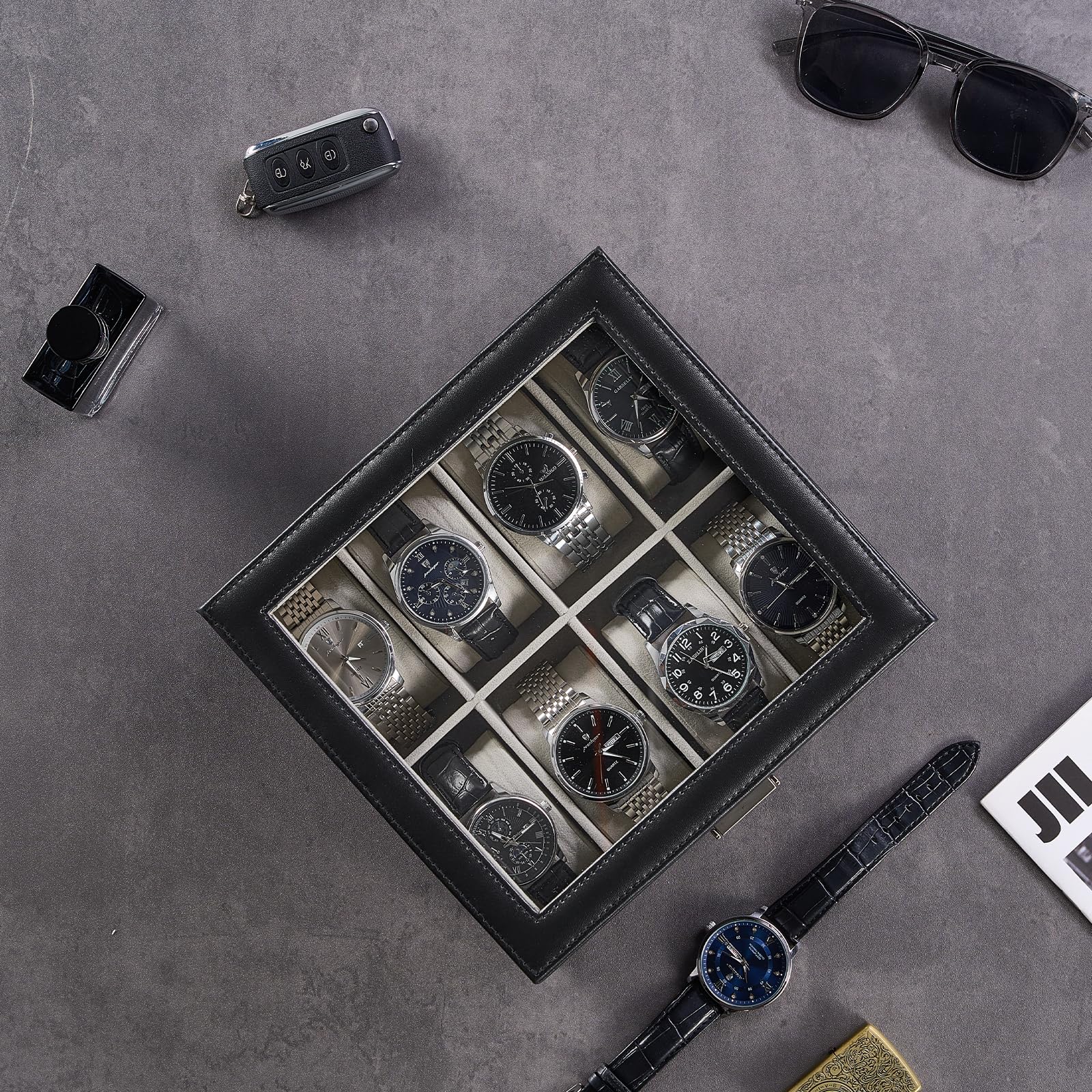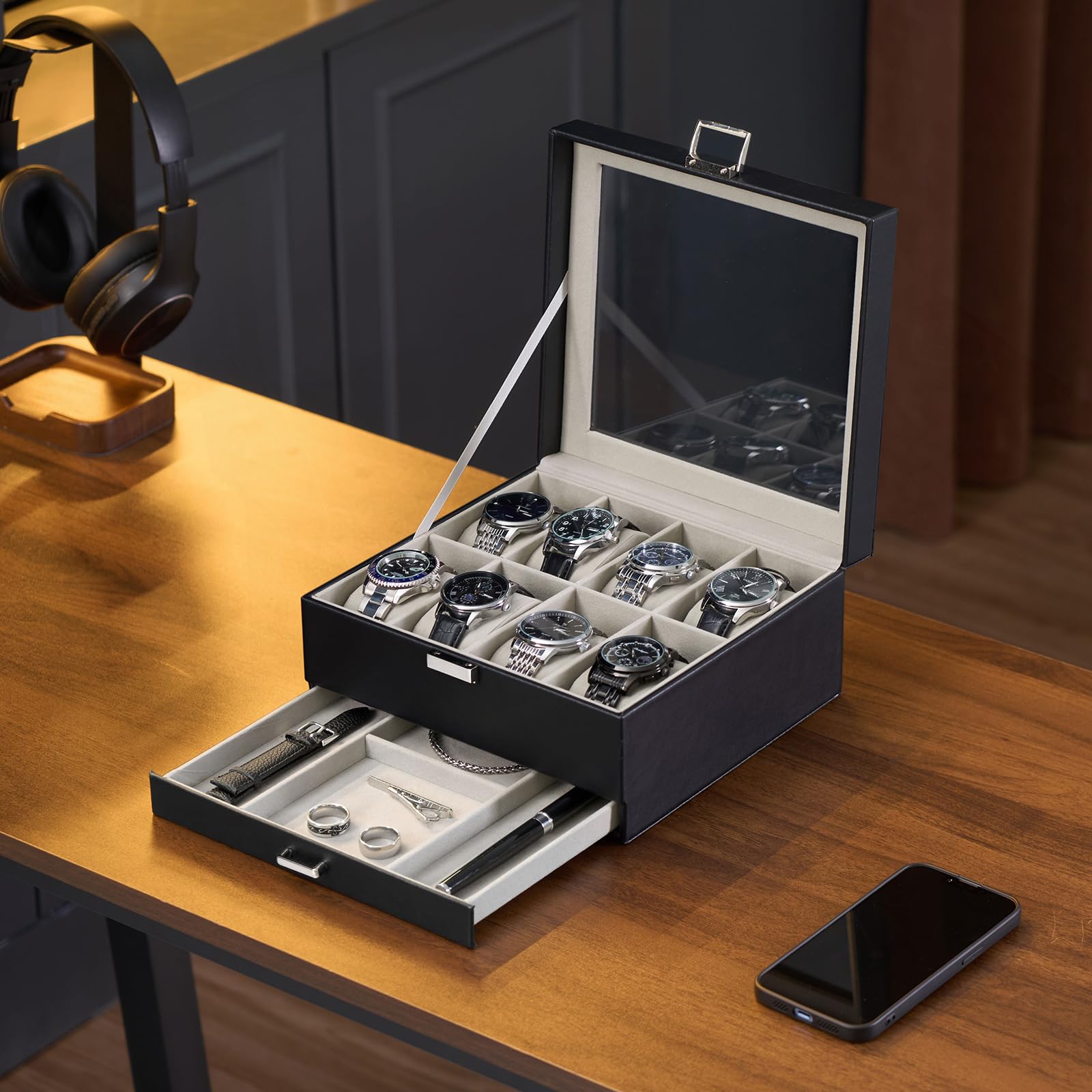 ProCase 腕時計ケース 8本 PU製 2段式 ウオッチボックス 男女兼用 収納ボックス アクセサリーケース アクセサリー 収納 ディスプレイ 小物整理 誕生日 記念日プレゼント -ブラック