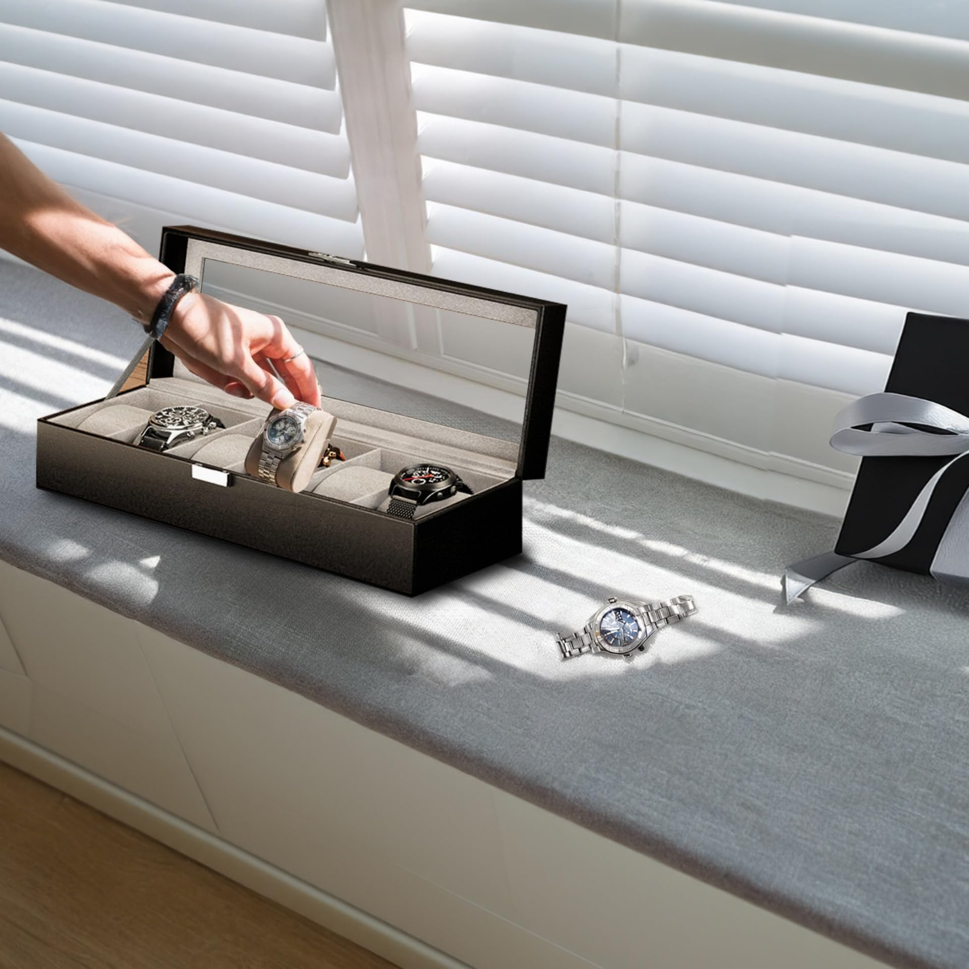 ProCase 男性用腕時計ボックス、6スロットメンズ腕時計ケース、男性用腕時計収納ウォッチホルダーオーガナイザー、ガラス蓋付き腕時計ディスプレイケース