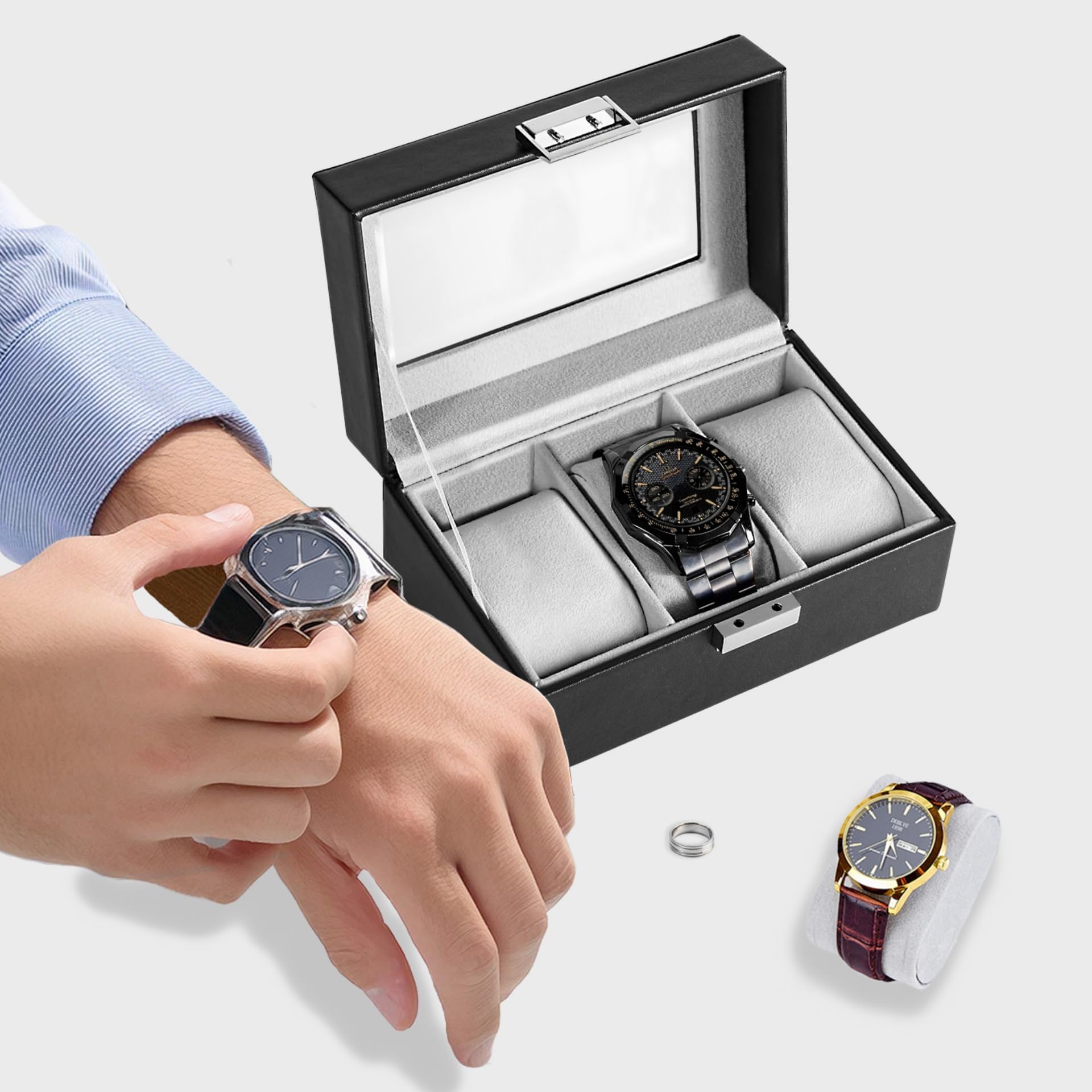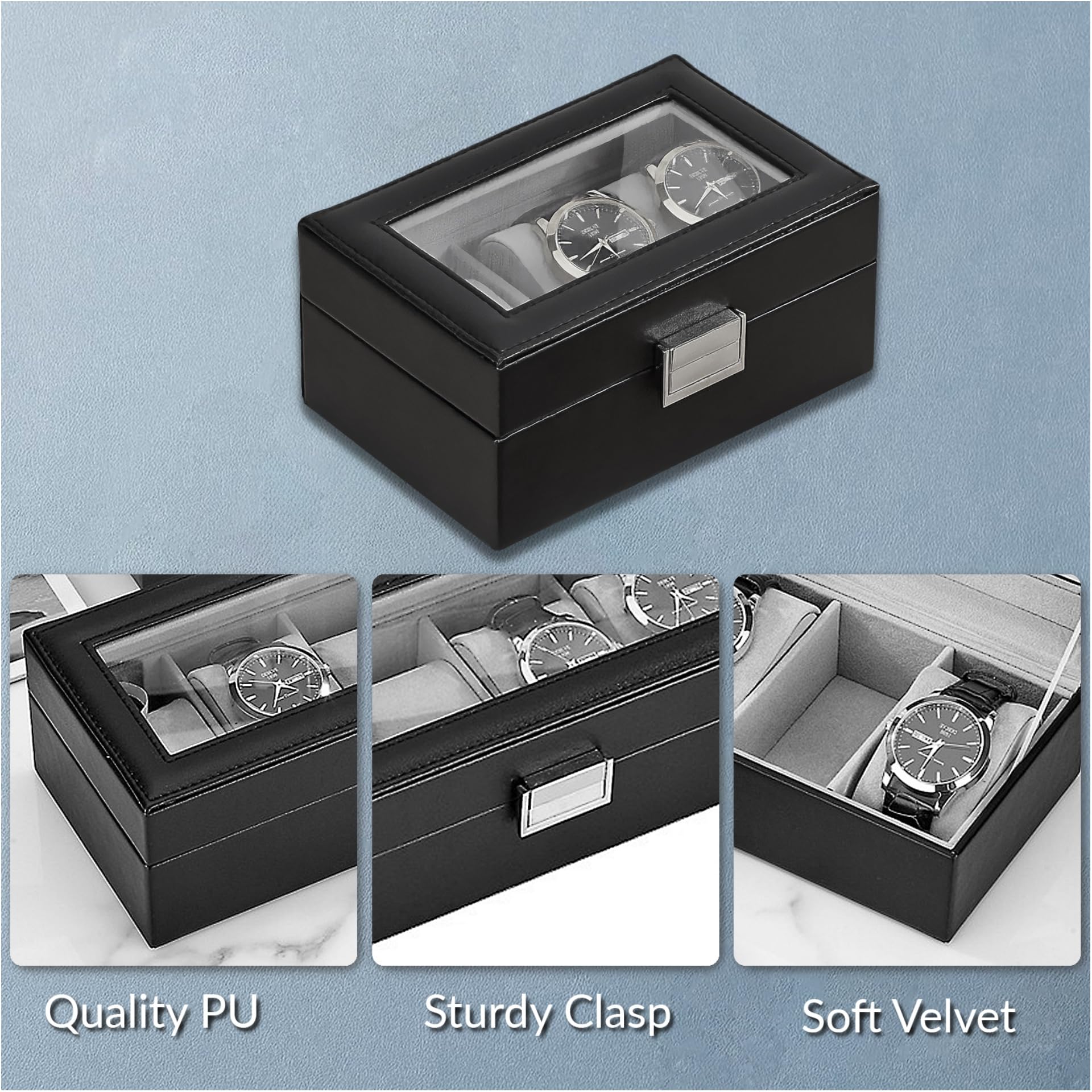 ProCase 腕時計ケース 3本用 PU製 ウオッチコレクションケース 男性 女性 高級 ガラス蓋 ディスプレイケース プレゼント