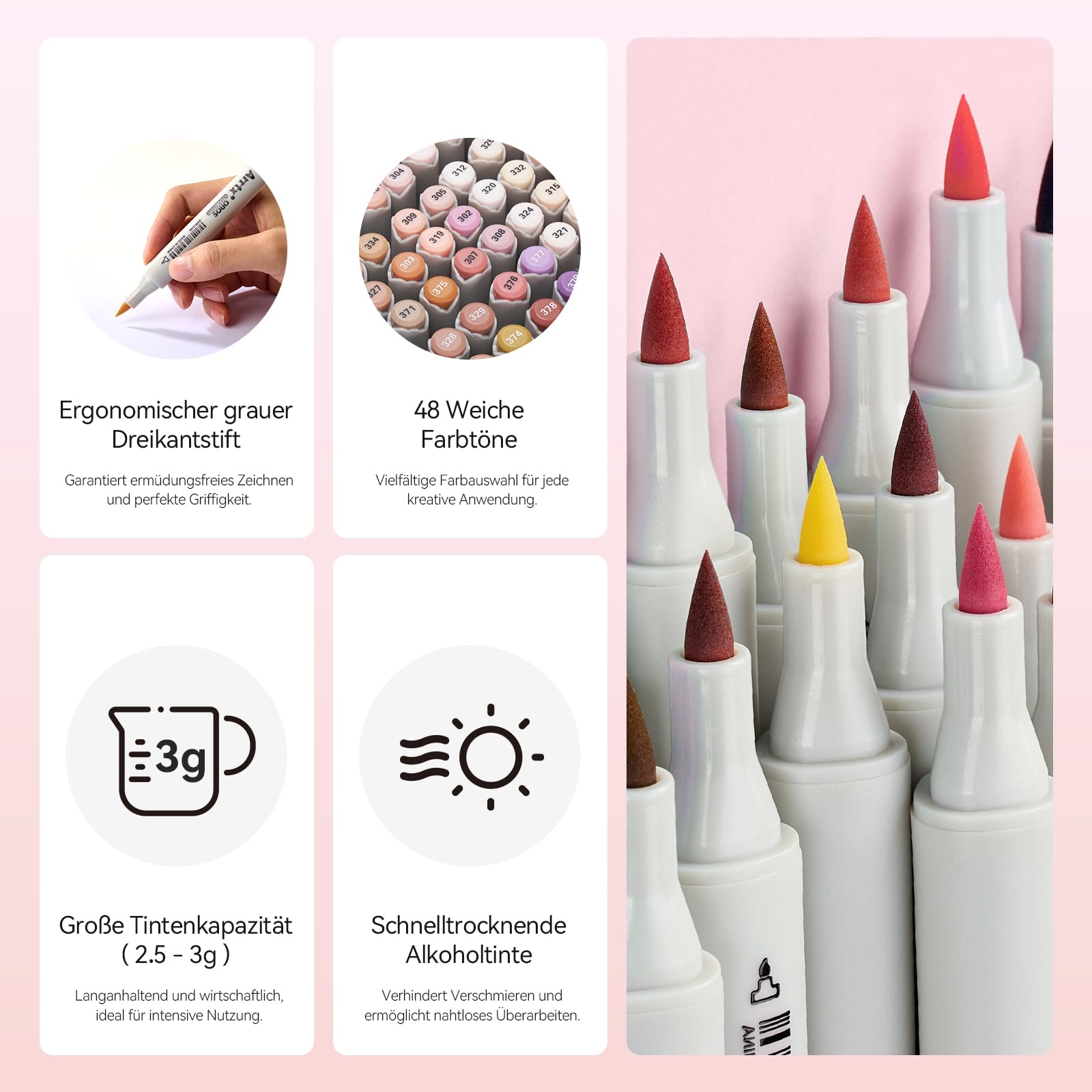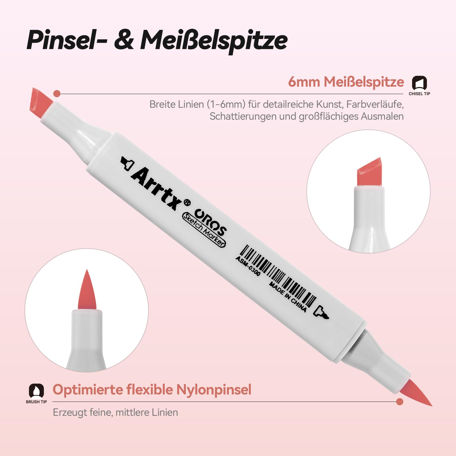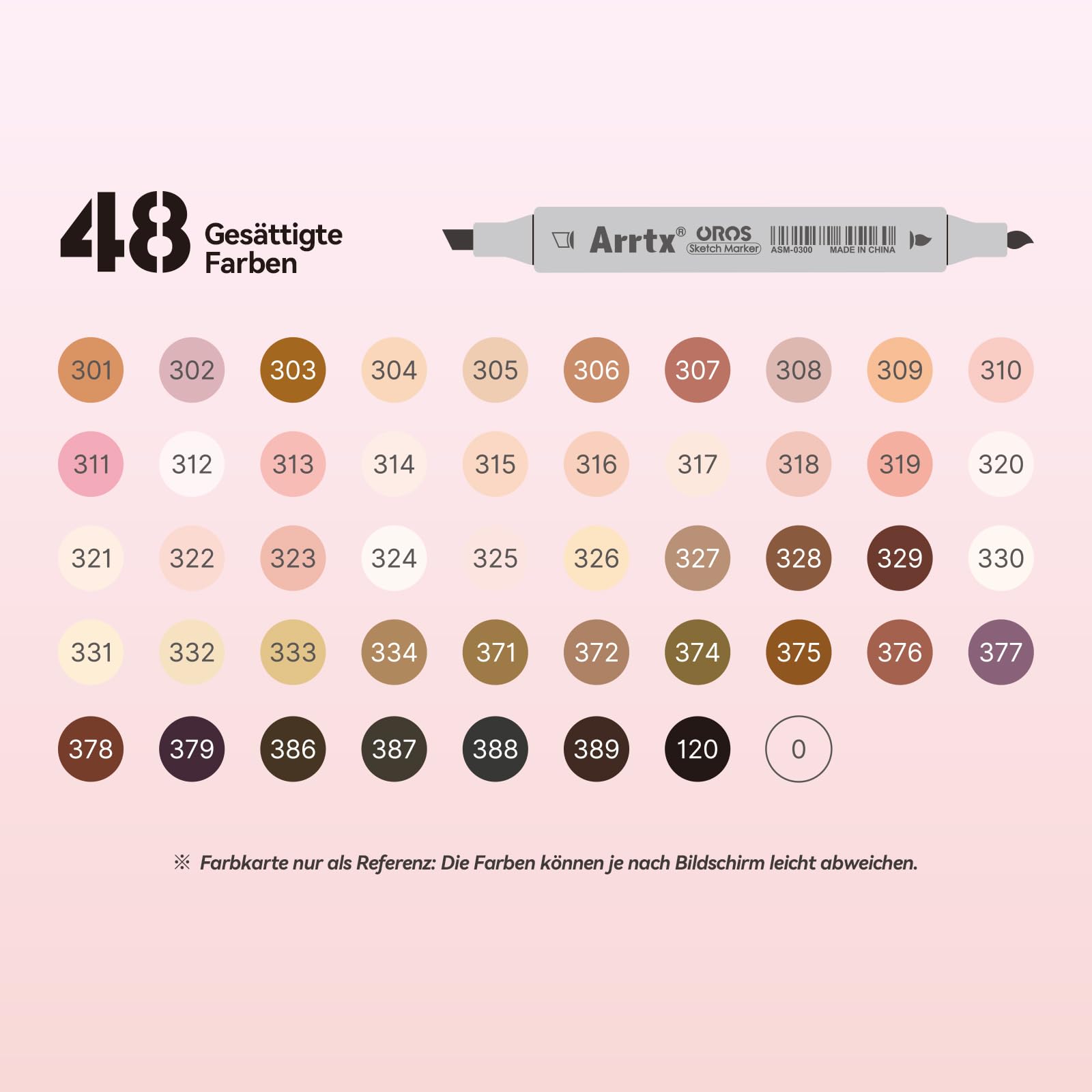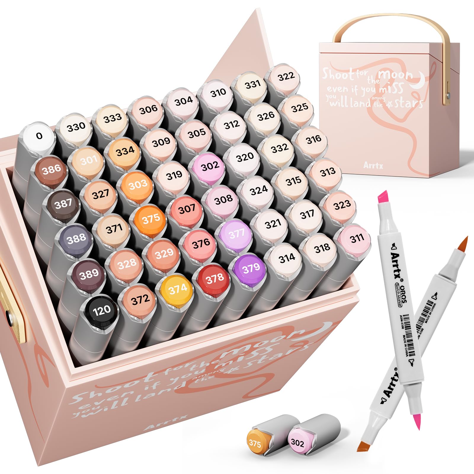 Arrtx OROS 48色肌色アルコールマーカー ブラシとチゼルチップ 絵画、ぬり絵、スケッチ、イラストレーションアルコールベースのマーカー、アーティストペン、ギフトに最適