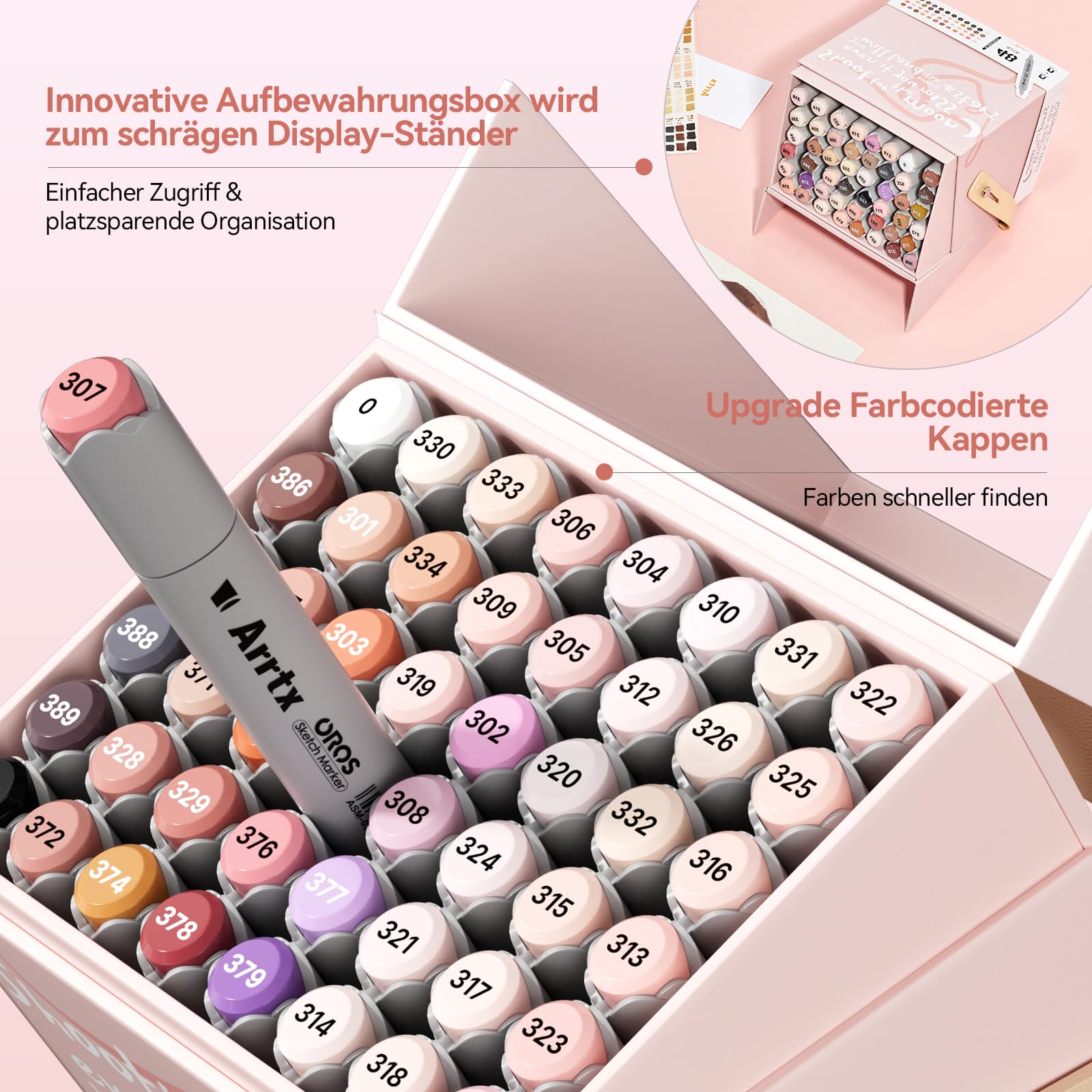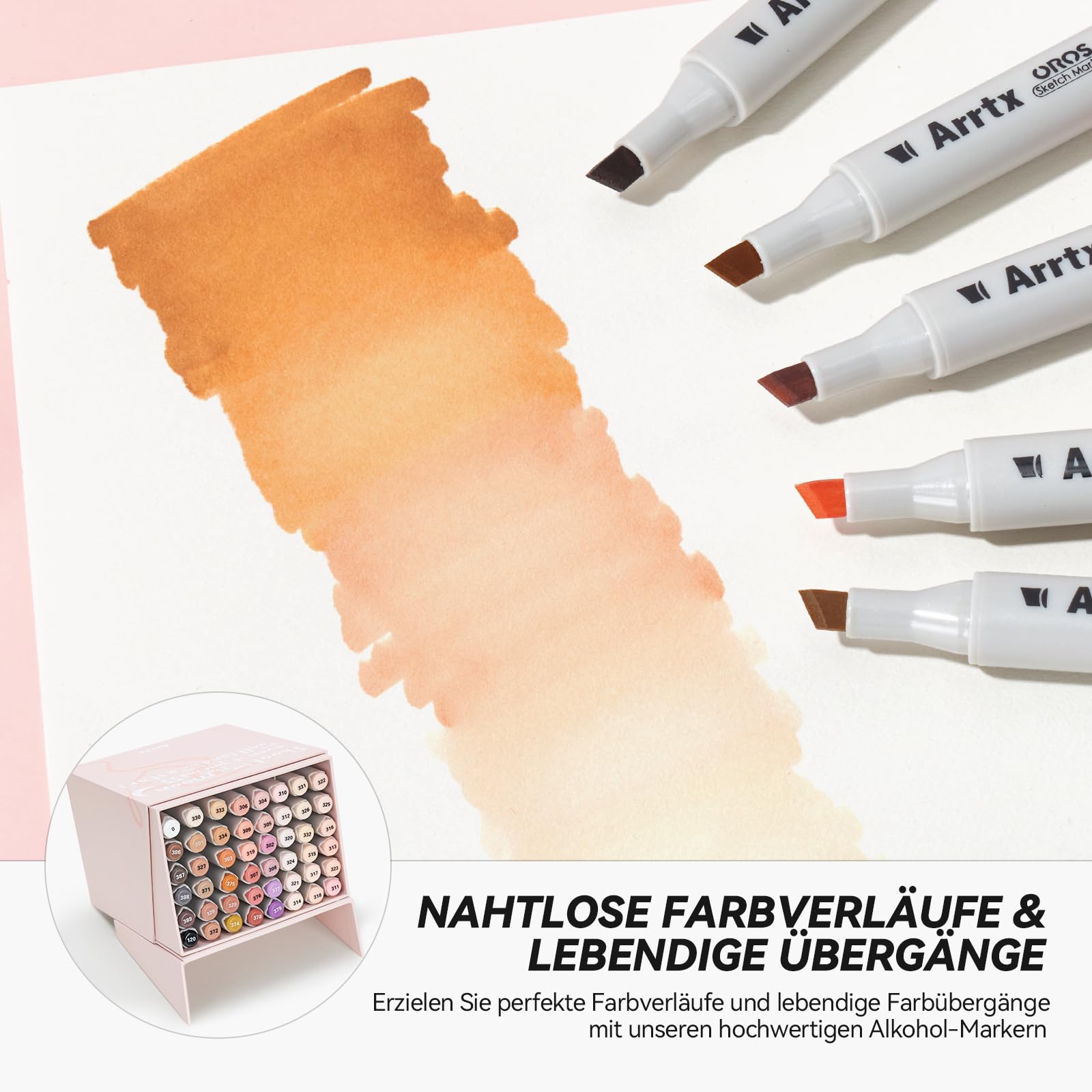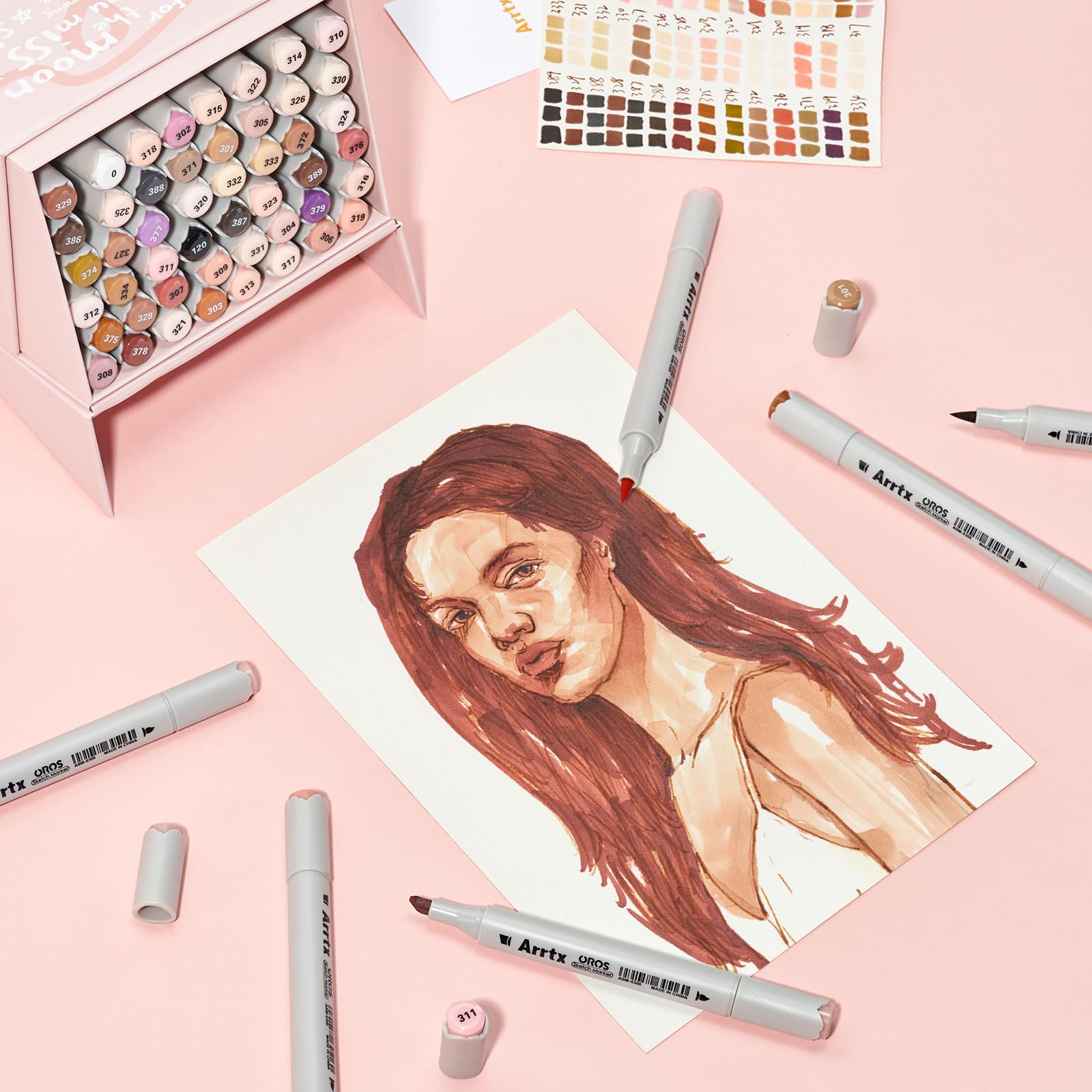 Arrtx OROS 80色アルコールマーカー ブラシとチゼルチップ 絵画、塗り絵、スケッチ、イラストレーションアルコールベースのマーカー、アーティストペン、ギフトに最適