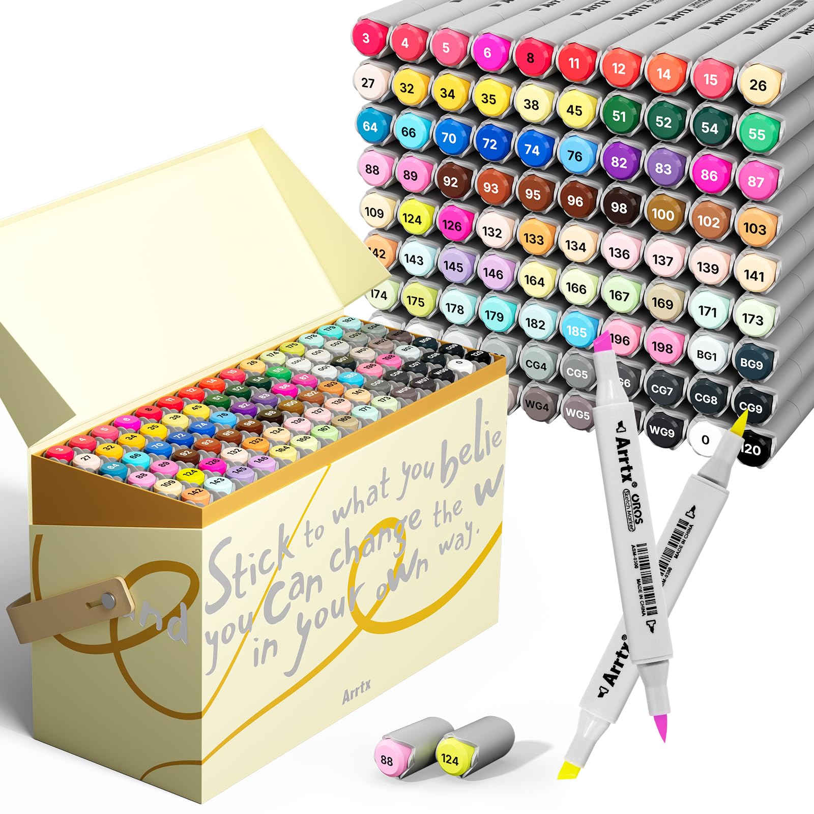 Arrtx OROS 90色アルコールマーカー ブラシとチゼルチップ 絵画、塗り絵、スケッチ、イラストレーションアルコールベースのマーカー、アーティストペン、ギフトに最適