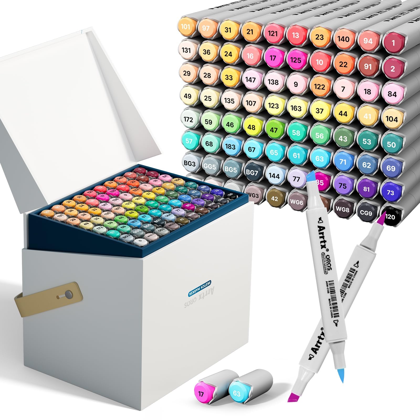 Arrtx OROS 80色アルコールマーカー ブラシとチゼルチップ 絵画、塗り絵、スケッチ、イラストレーションアルコールベースのマーカー、アーティストペン、ギフトに最適