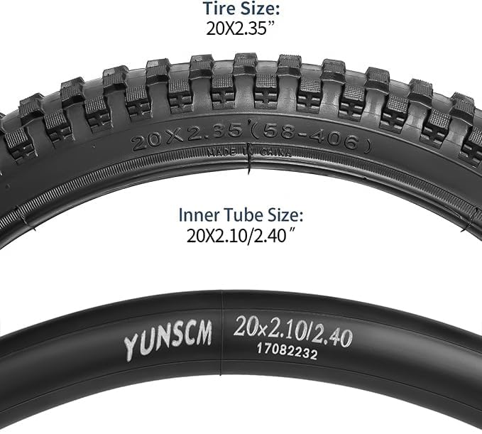 YunSCM 2本セット,20 2.35 タイヤ,20x2.35 58-406 自転車タイヤ + 20x2.10/2.40 チューブ 肉厚 米式バルブ32mm + リムテープ+タイヤレバ,適用 20インチ 2.35 マウンテンバイク、クロスバイク,Y-279