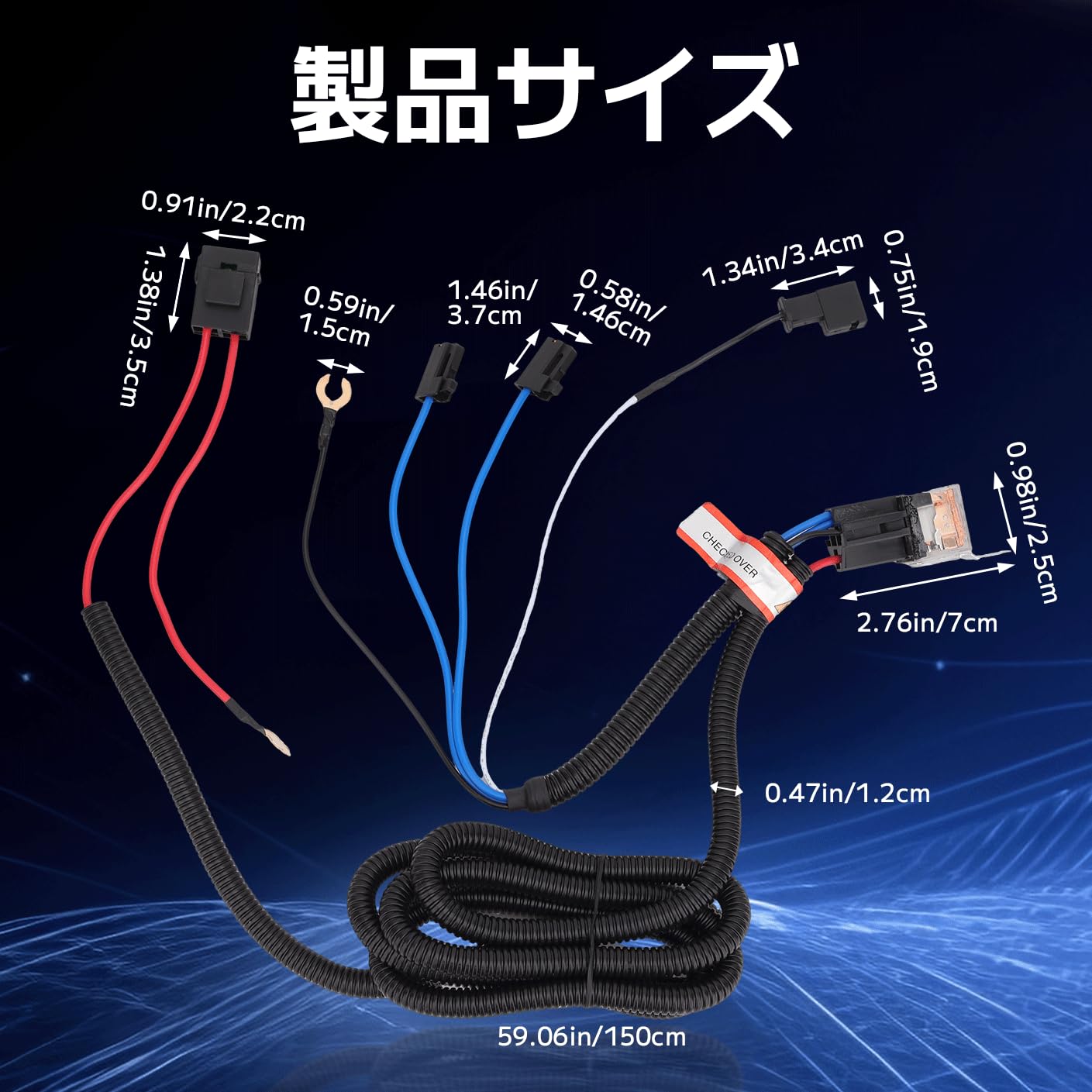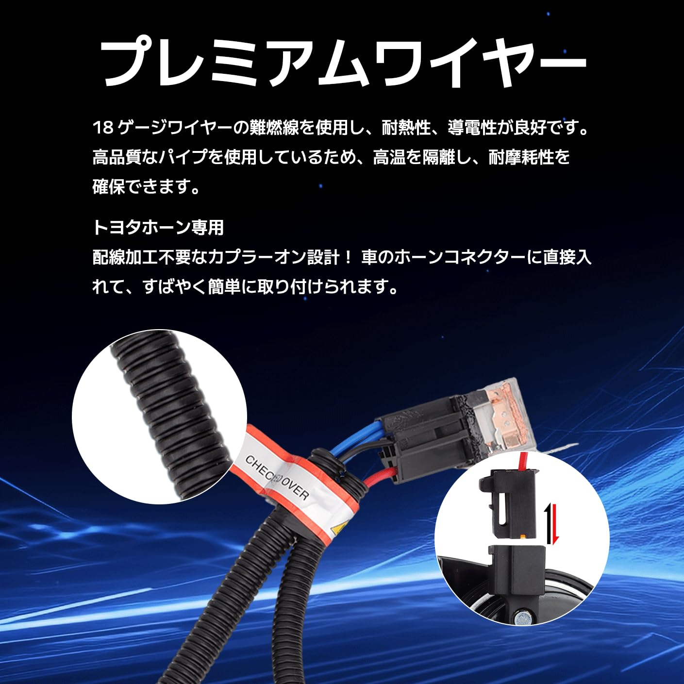 Safego トヨタホーンハーネス 交換用 耐熱性二股分岐ハーネスリレー ヒューズリングリレーキット 12V/ 80A ダブルホーンシステム改造用 150cm