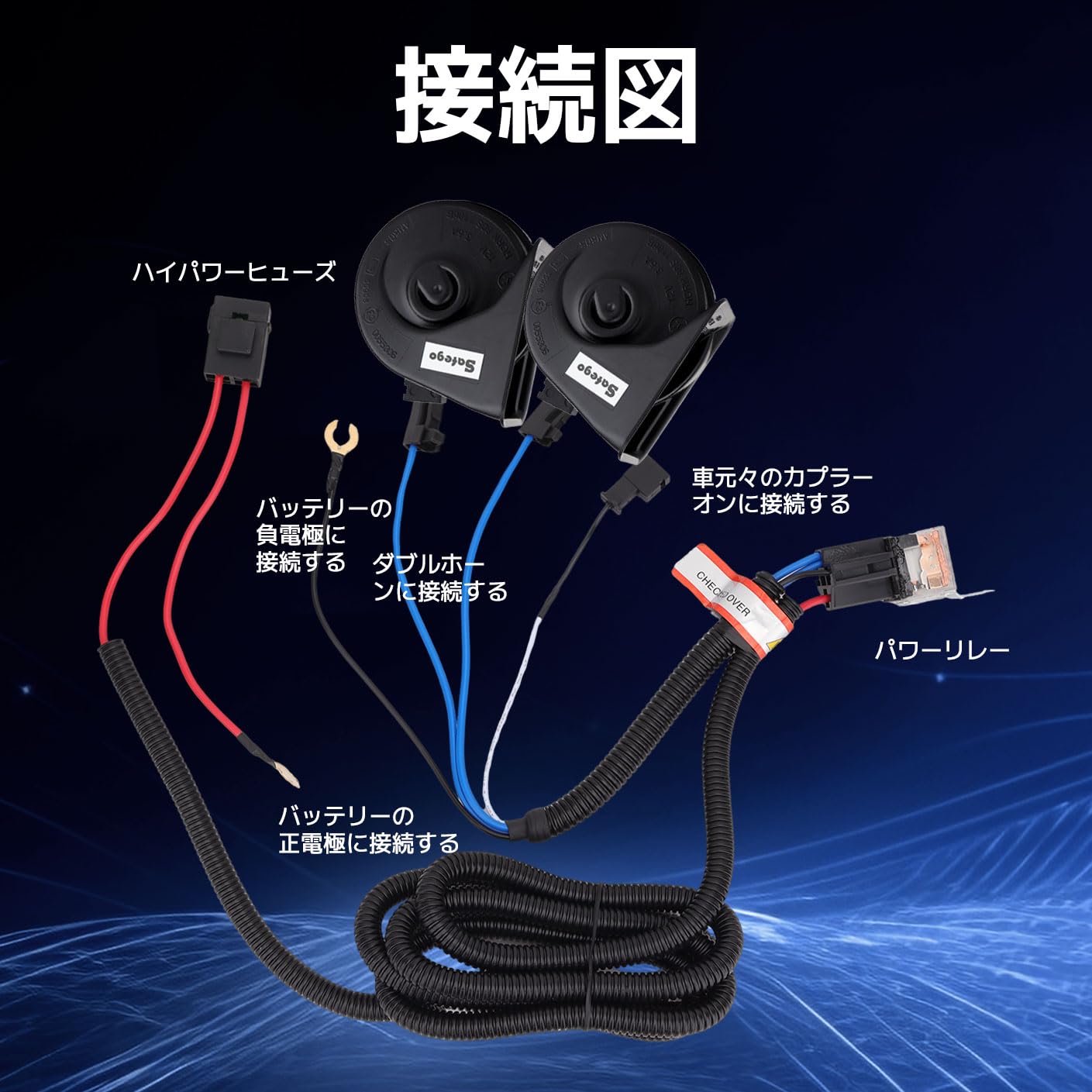 Safego 乗用車 ホーン アクリロニトリルブタジエンスチレン製 トヨタ車汎用 レクサス風 LEXUS 純正サウンドホーン 防水 120db 高音/低音2個セット 二股分岐ハーネス付き 取付簡単