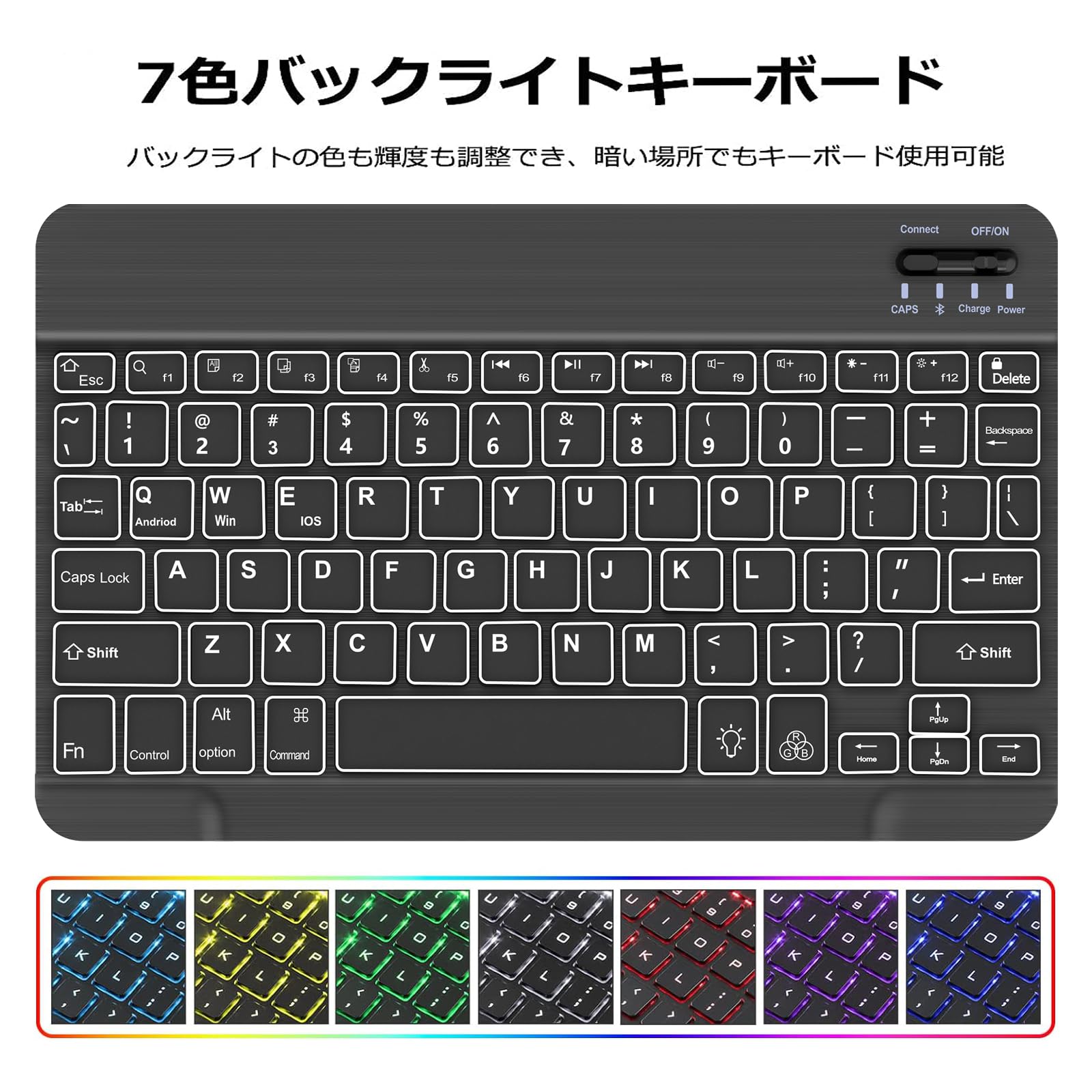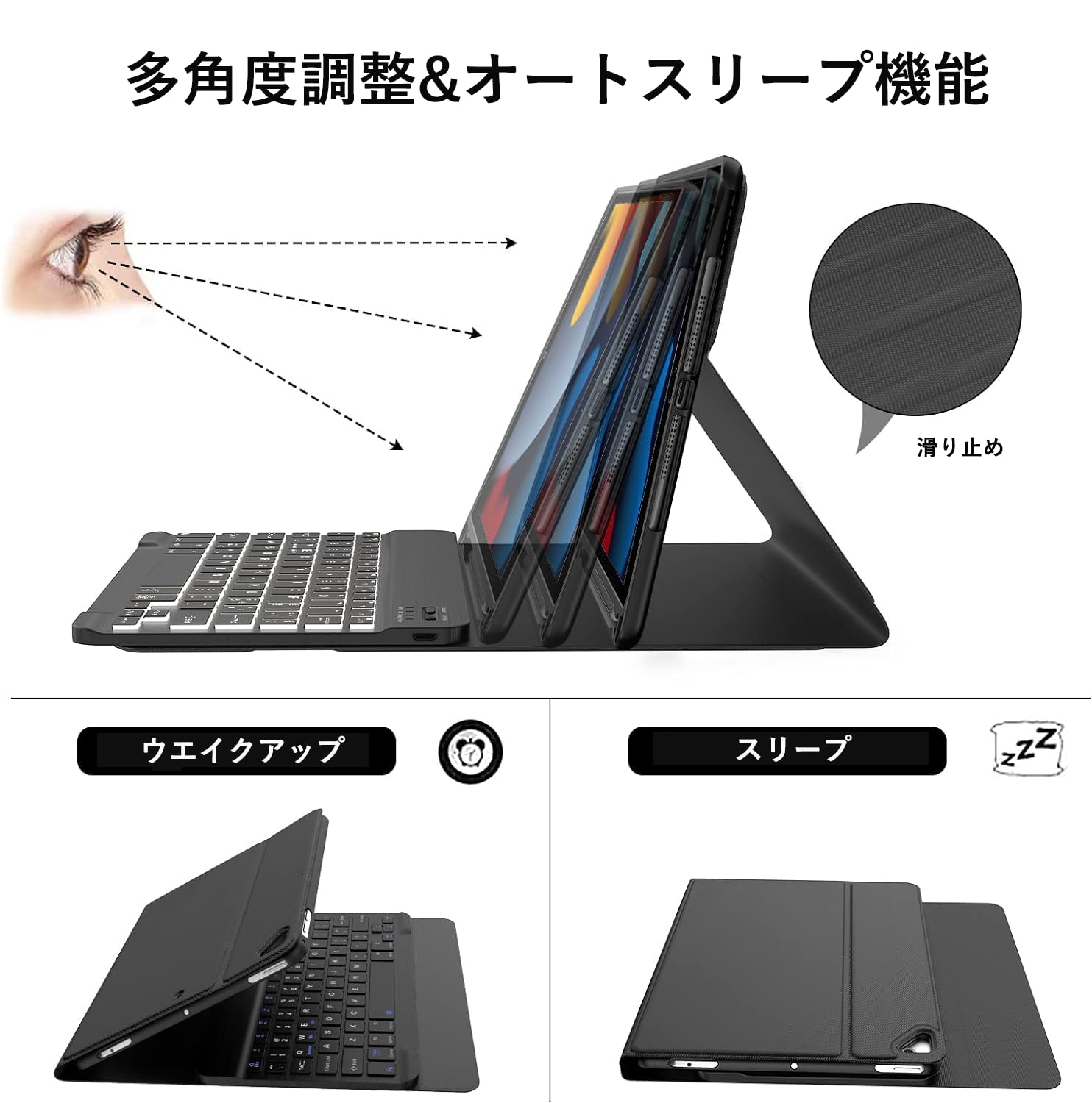 IVEOPPE iPad 第9世代 キーボード付きケース 第8世代 第7世代 10.2インチ 軽量 薄型 iPad Air3 ケースiPad Pro 10.5インチ キーボード バックライト付き 着脱式 マルチペアリング ペンホルダー付き 多角度調整 スタンド 磁気吸着 オートスリープ機能 ペン収納 耐衝撃 傷つけ防止 全面保護 Type-C充電式 日本語説明書 (ブラック-バックライト)