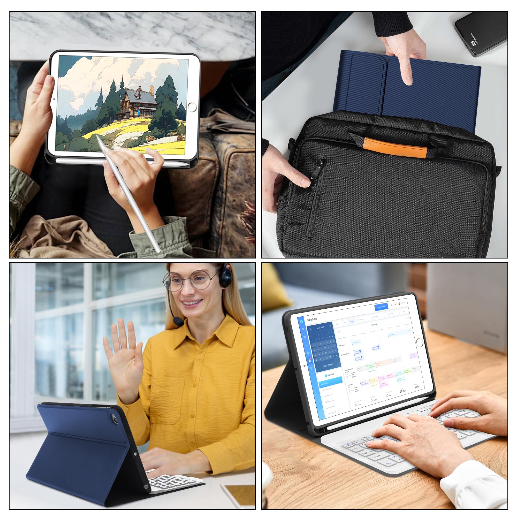 【2024年昇級版】 iPad 9.7キーボード ケース iPad 第5世代 第6世代 キーボードケース対応 iPad pro 9.7/iPad air/air2用 キーボードケース pencil収納 脱着式 Bluetoothキーボード 手帳型 オートスリープ機能付き PUレザー 手帳型 9.7インチ対応 日本語説明書付き(ネイビーブルー)